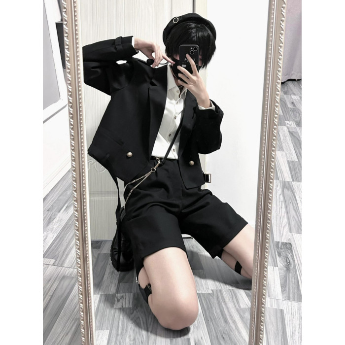 dk製服男夏季短西褲薄款五分褲子男生透氣百搭休閒黑色學生校服褲