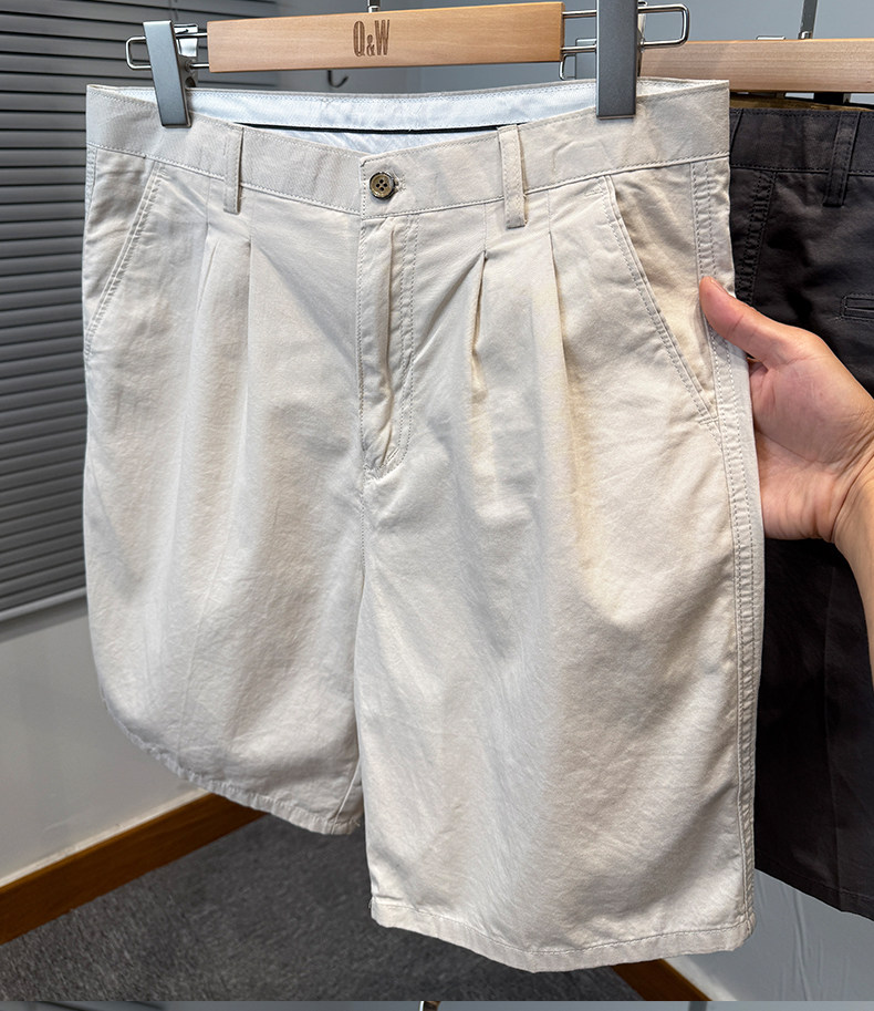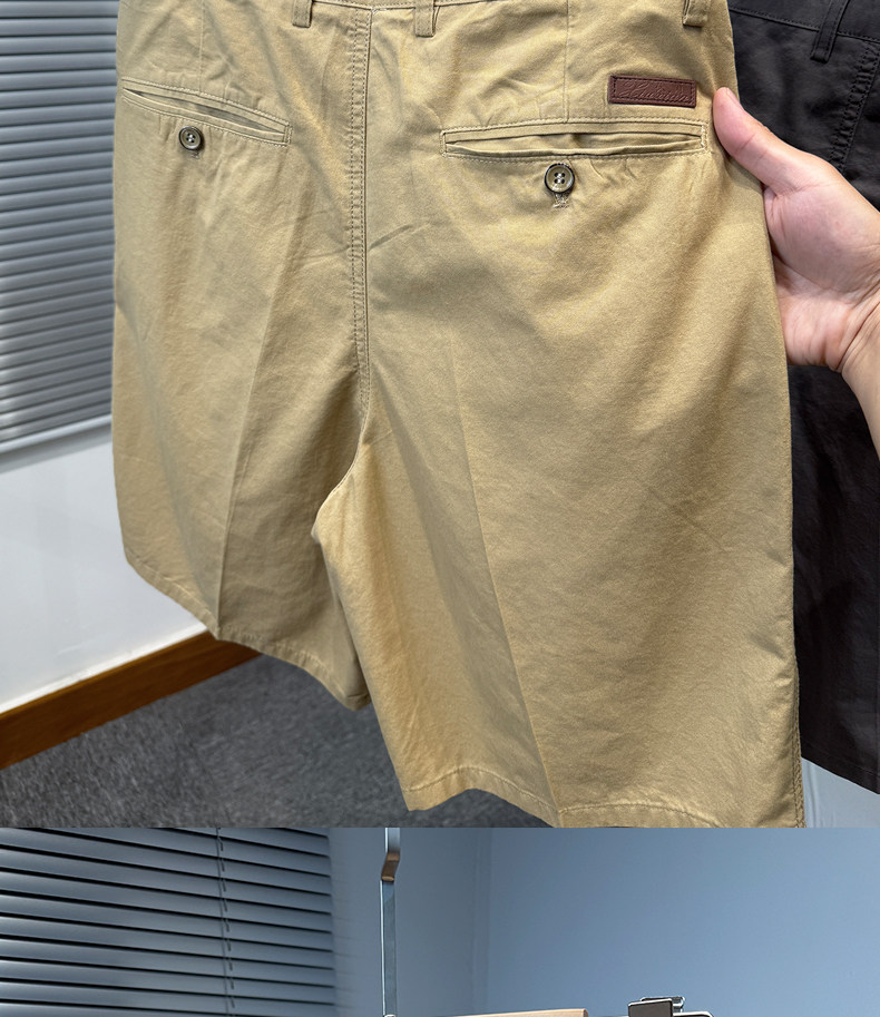 雙褶純棉西裝短褲男2025新款中年爸爸裝夏季外穿五分褲男休閒直筒