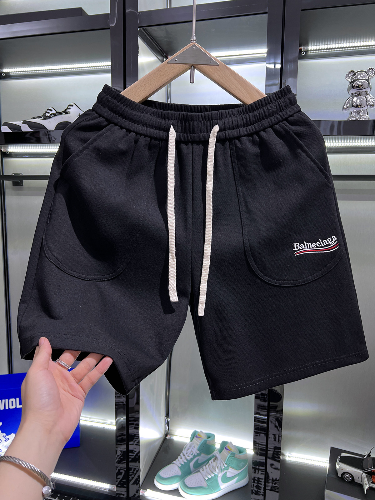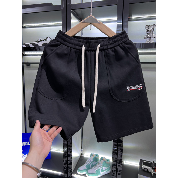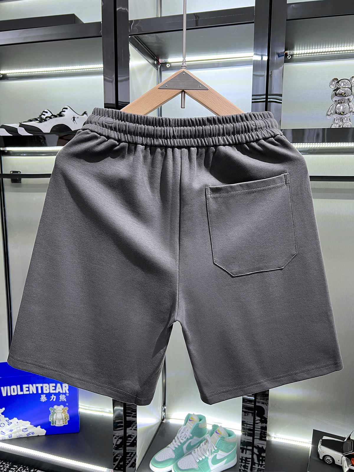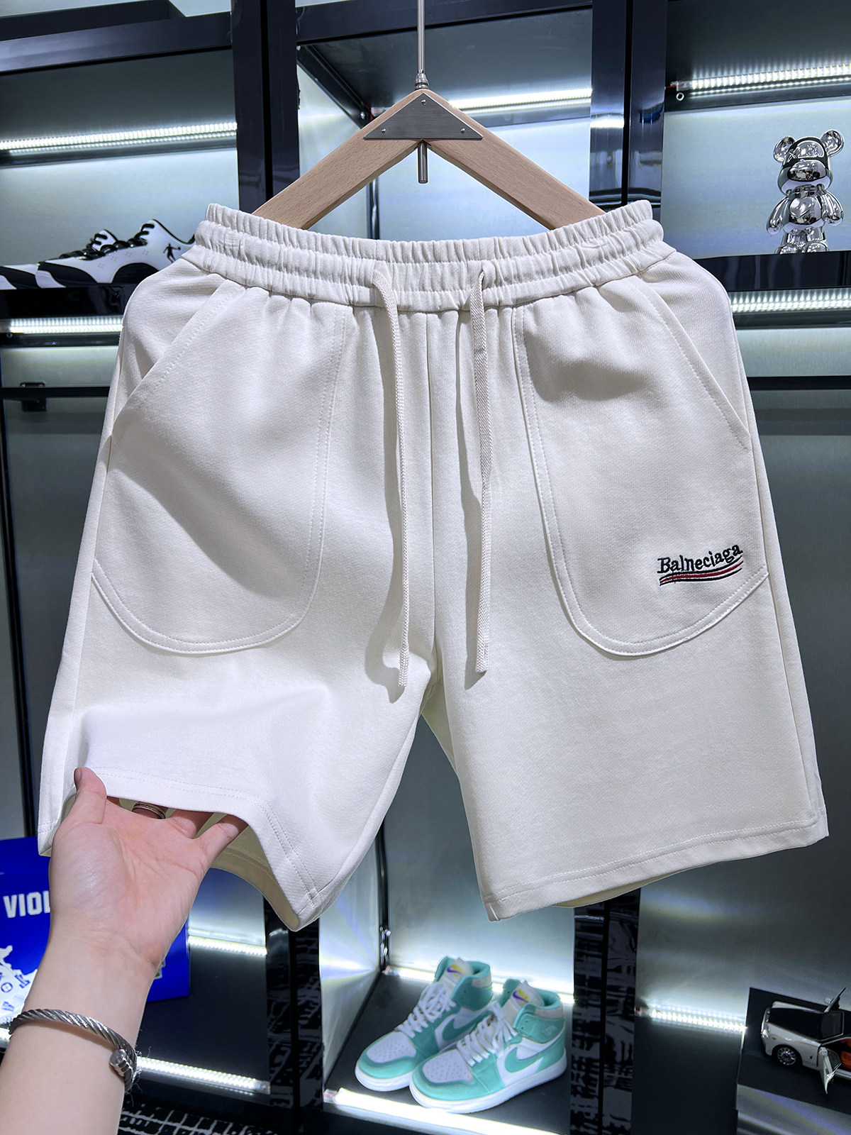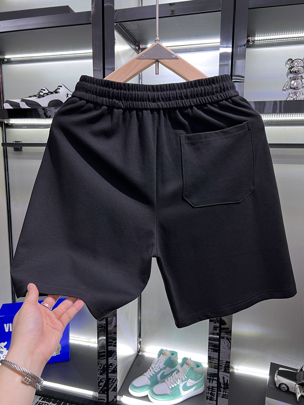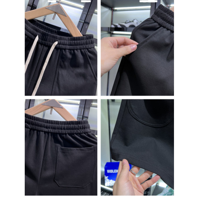 潮牌歐貨男士夏裝四分中褲松緊休閒純色五分短褲運動衛褲潮流刺綉