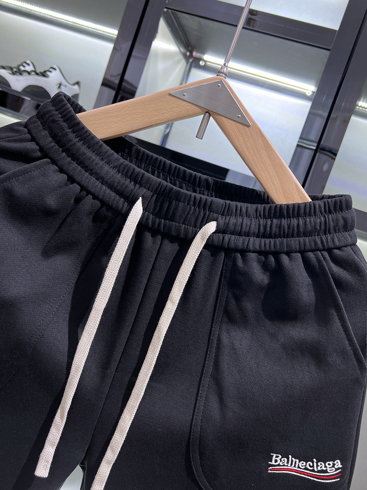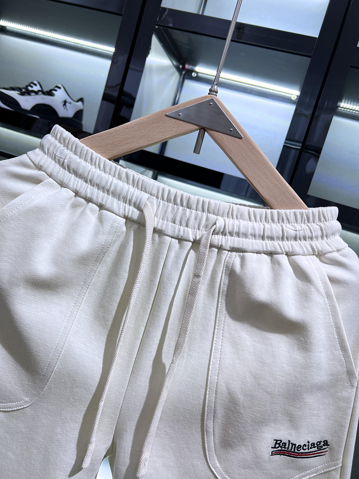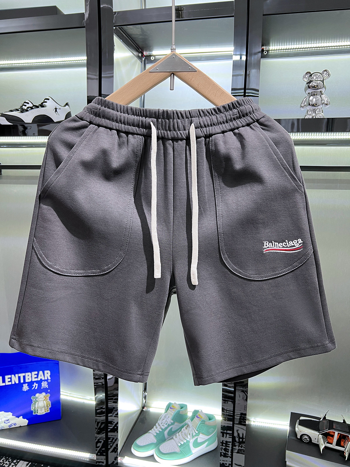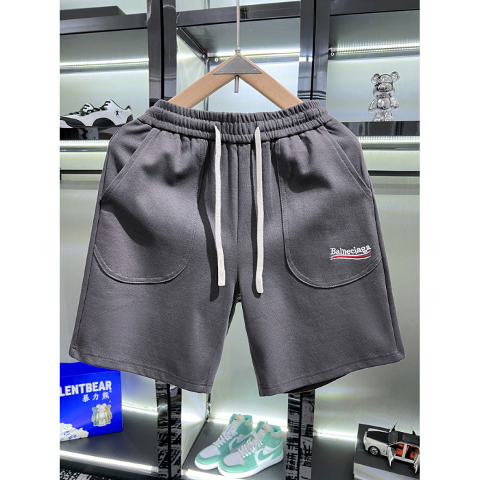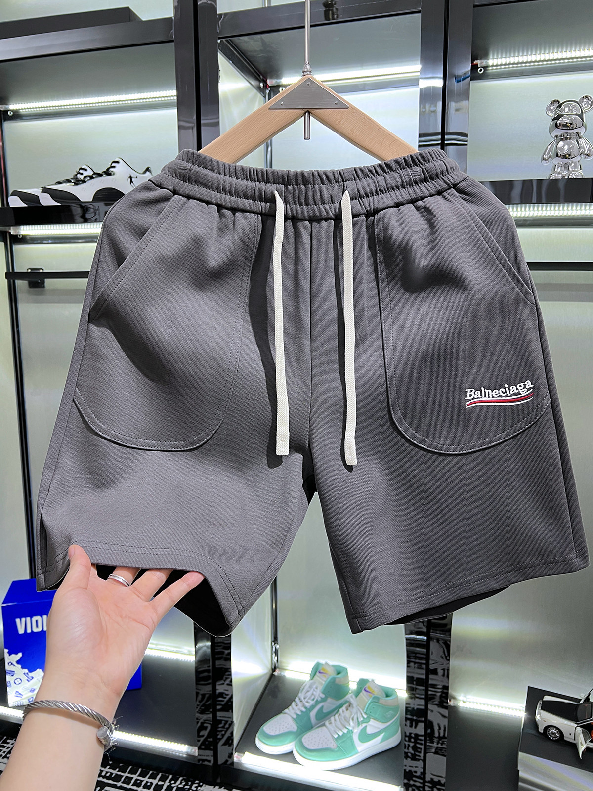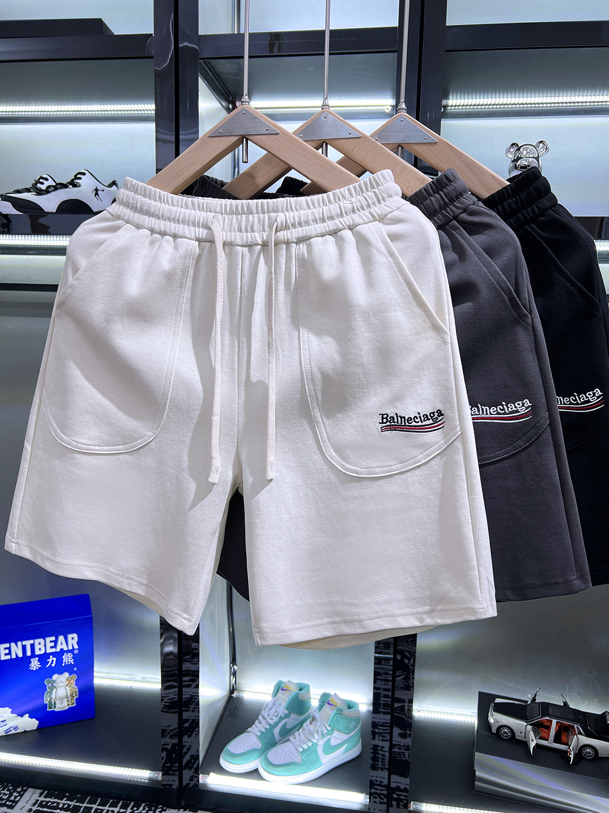 潮牌歐貨男士夏裝四分中褲松緊休閒純色五分短褲運動衛褲潮流刺綉