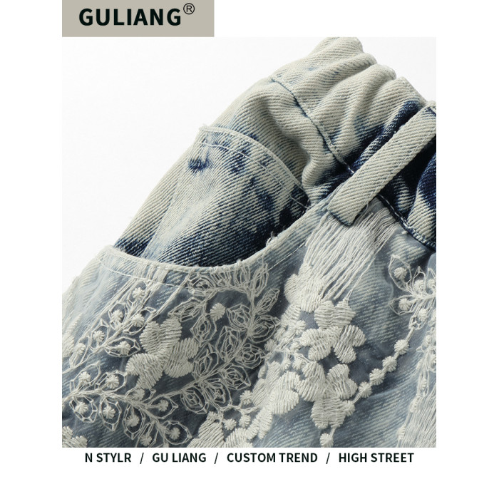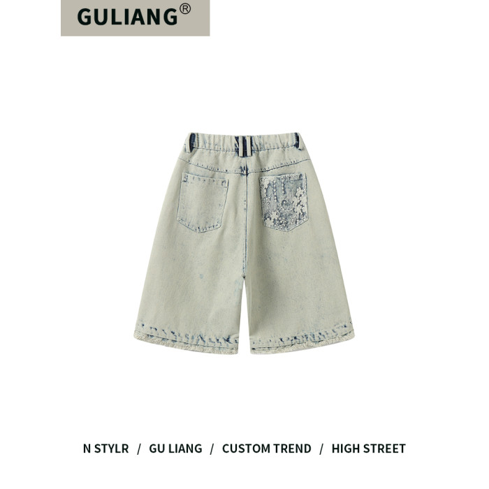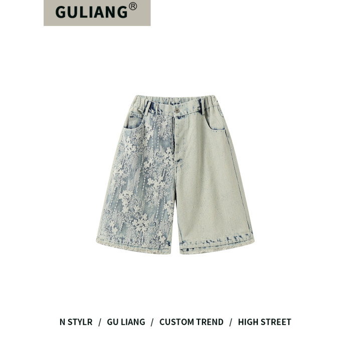 GU LIANG「潮流自定義」好物精選丨美式街頭水洗蕾絲拼接五分褲潮