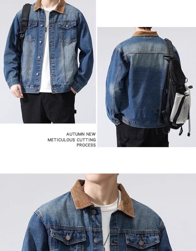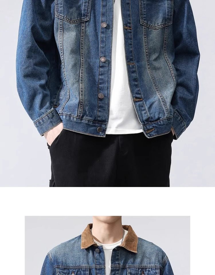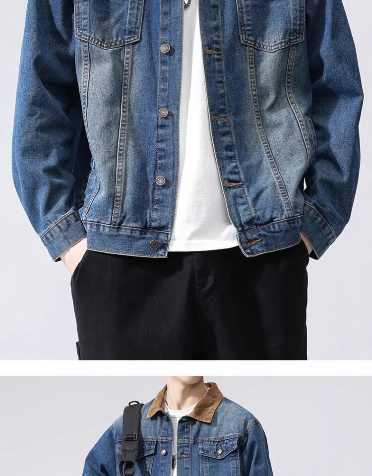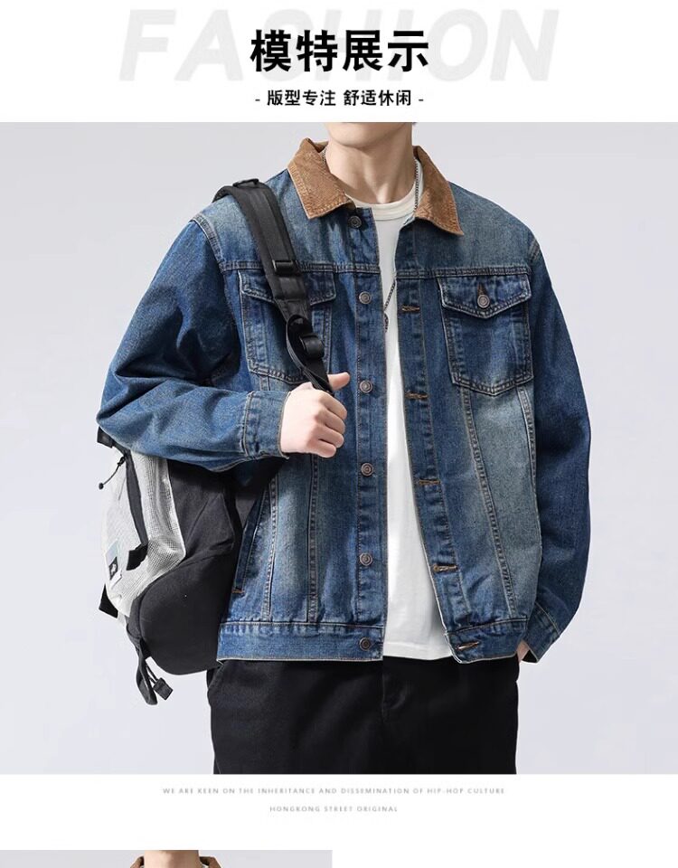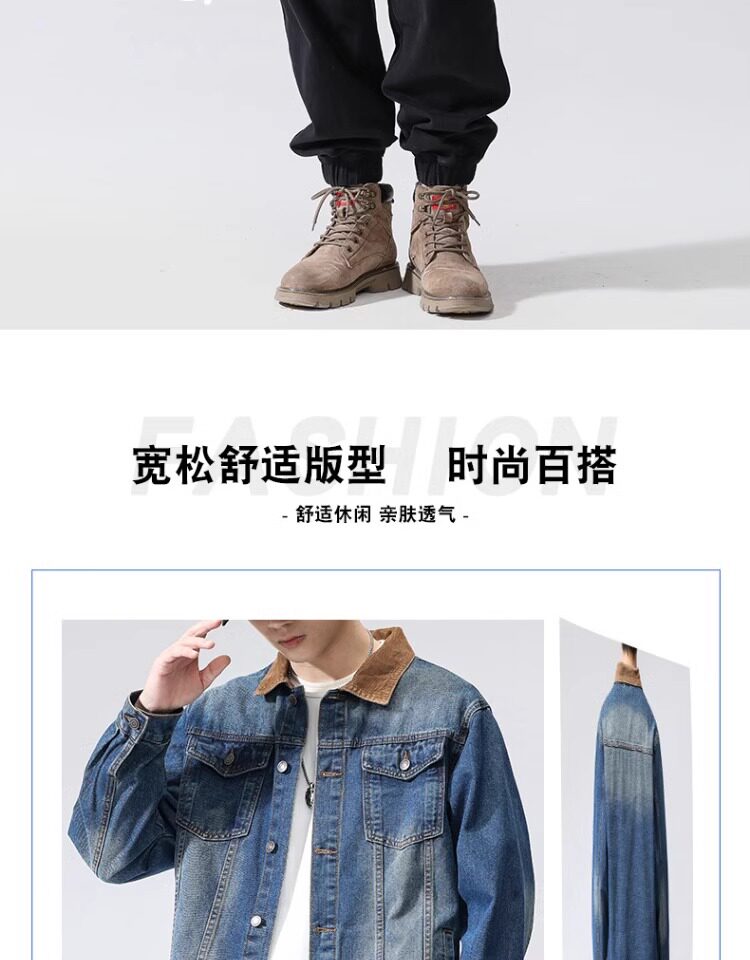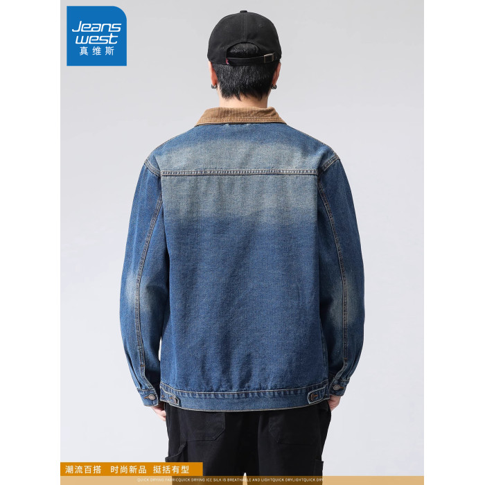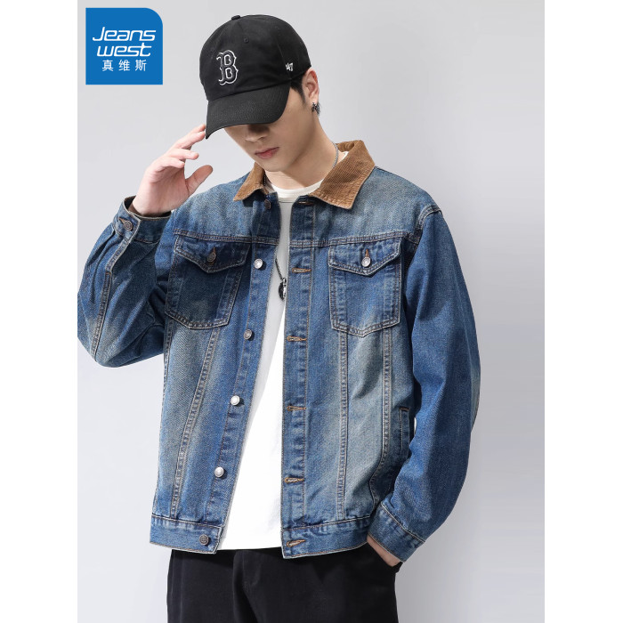 真維斯藍色襯衫式牛仔外套男款2025新款水洗做舊寬鬆潮牌工裝夾克