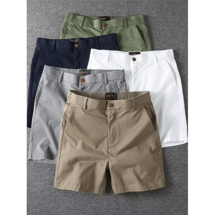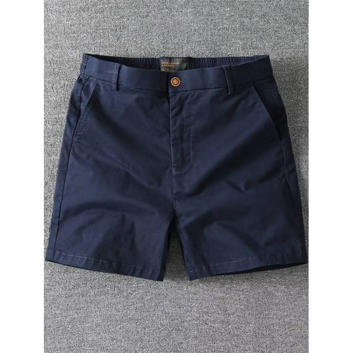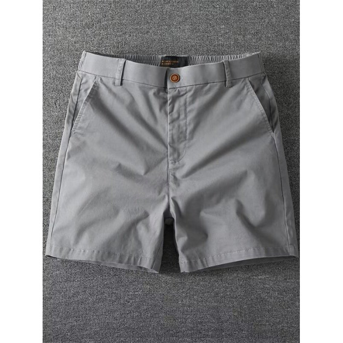 夏季純棉休閒輕薄短褲男式歐美直筒修身四五分褲大碼純色百搭褲子