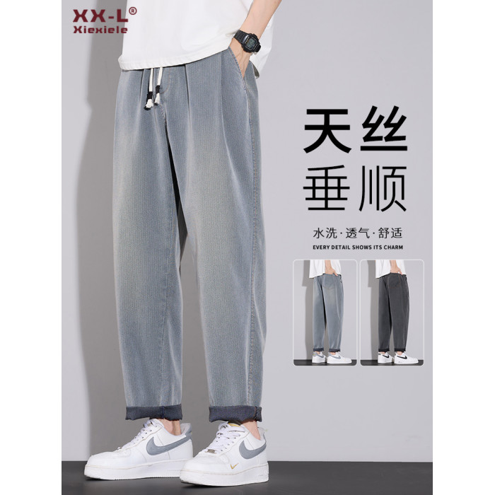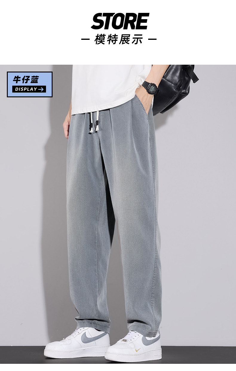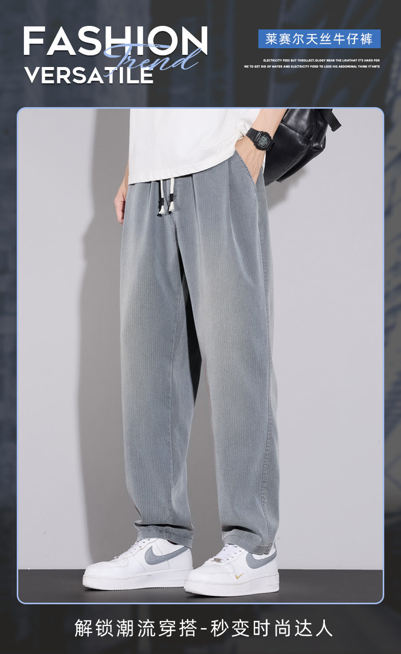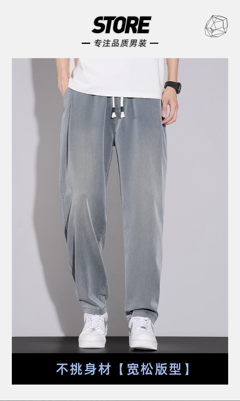 天絲牛仔褲男士夏季2026秋季新款寬鬆直筒美式潮牌錐形休閒九分褲