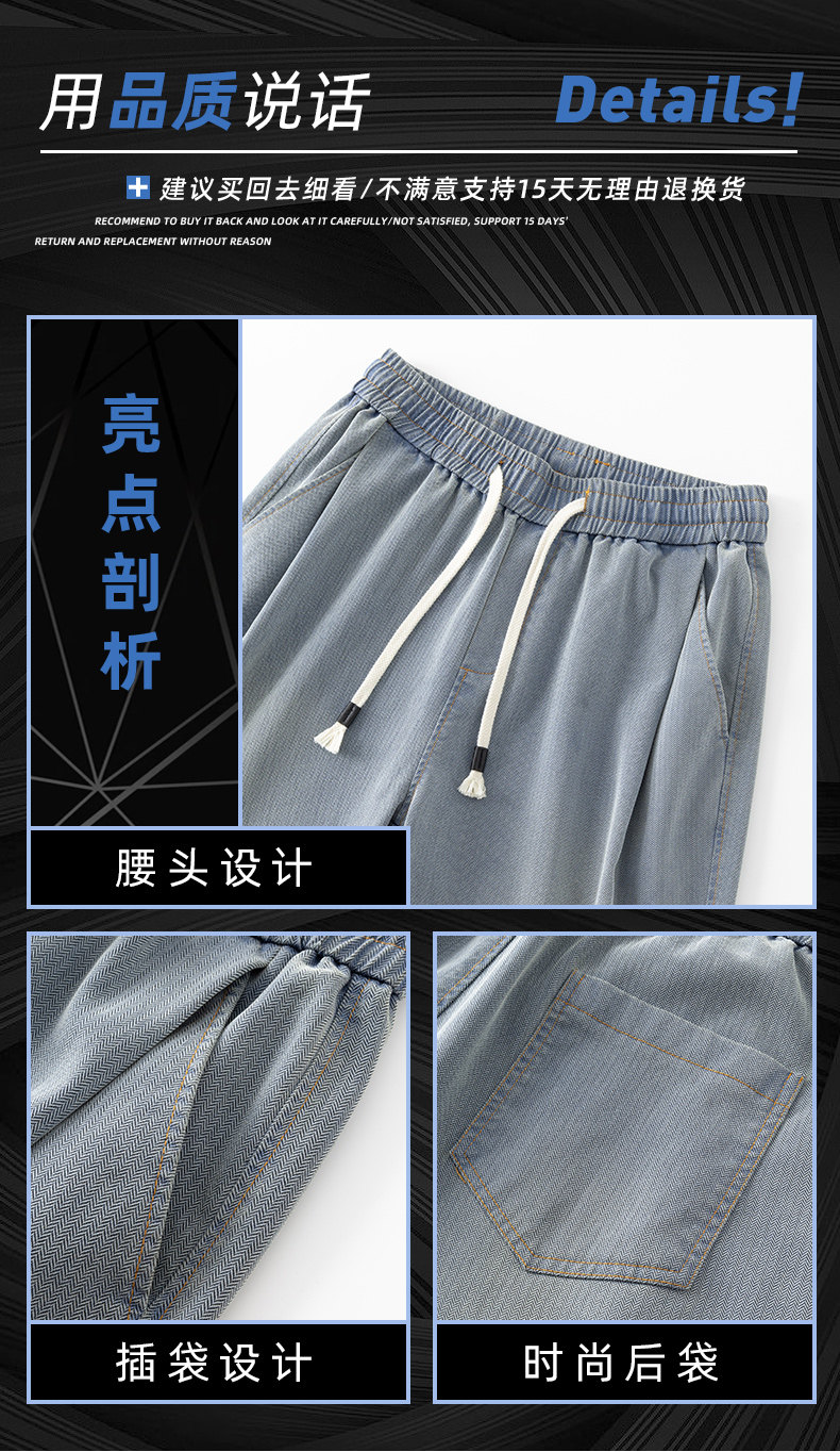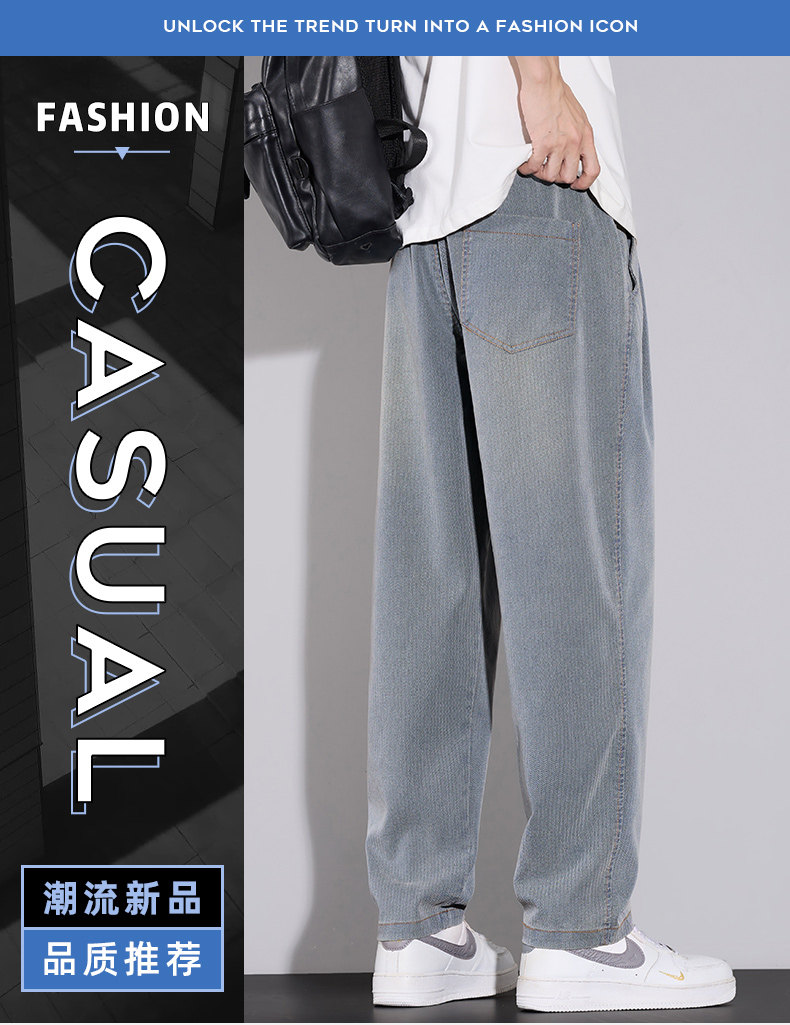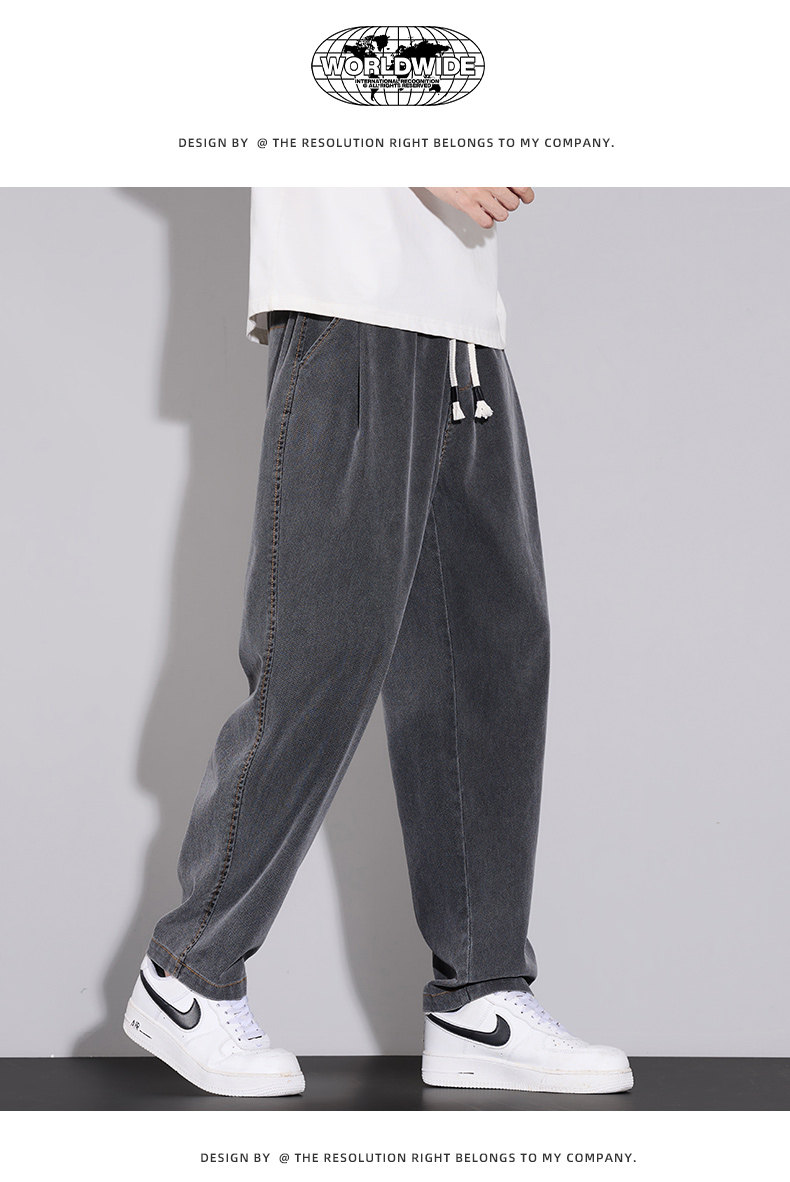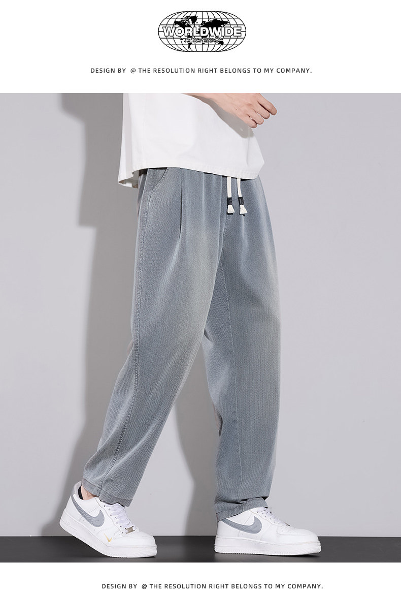 天絲牛仔褲男士夏季2026秋季新款寬鬆直筒美式潮牌錐形休閒九分褲