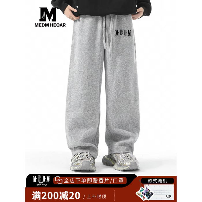 MEDM HEOAR衛褲男直筒寬鬆春秋冬季重磅加絨百搭美式休閒運動長褲