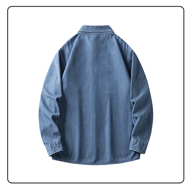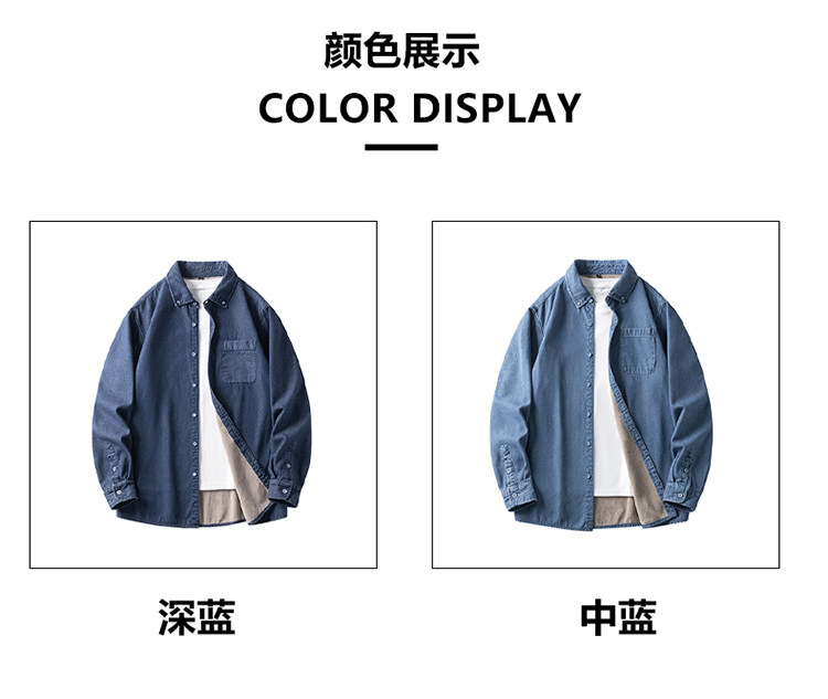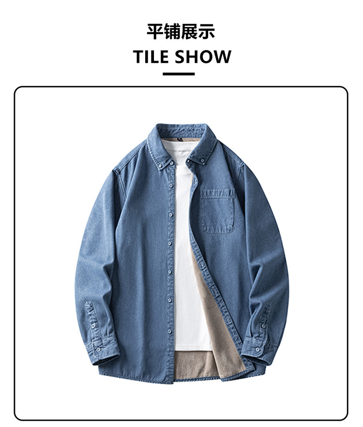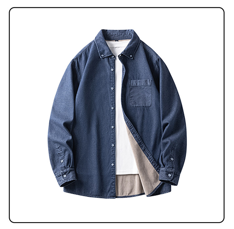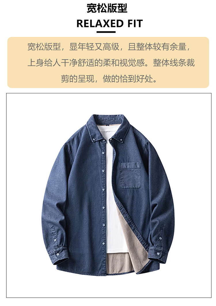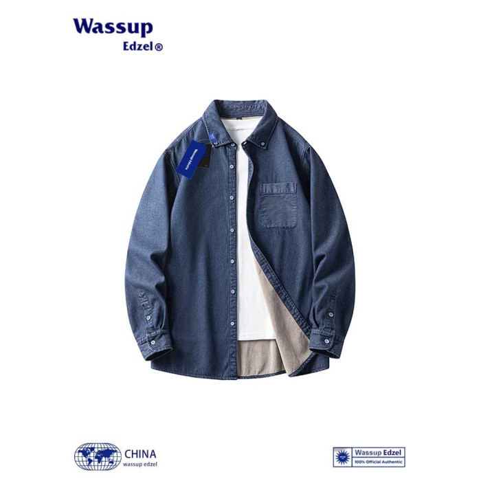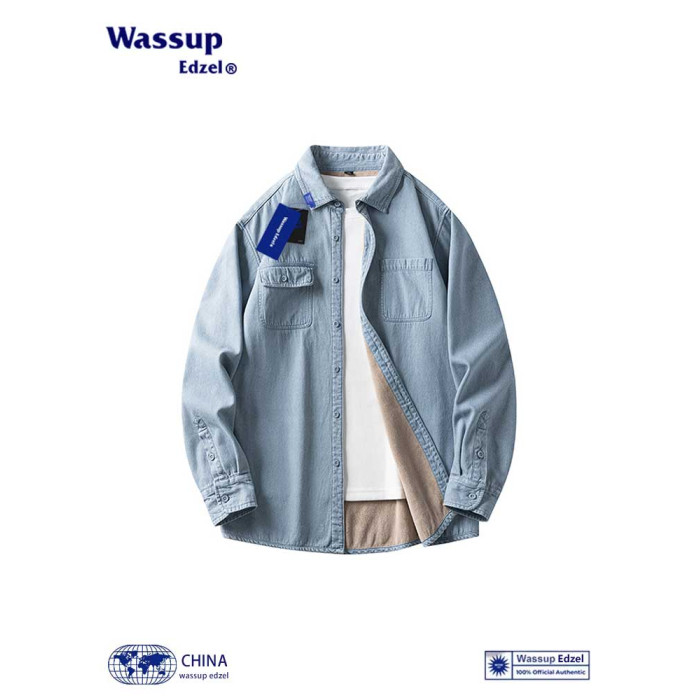Wassup Edzel復古加絨長袖牛仔襯衫男春秋季潮牌寬鬆繙領襯衣外套