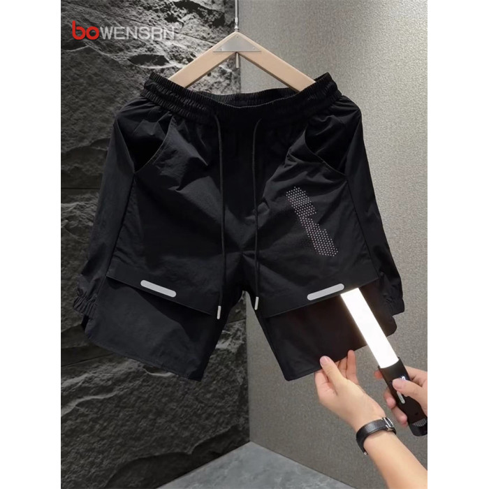 潮牌白色打孔運動短褲男士2026新款夏季外穿速乾工裝五分褲子男款