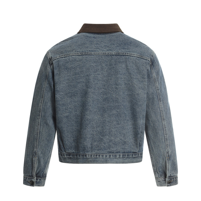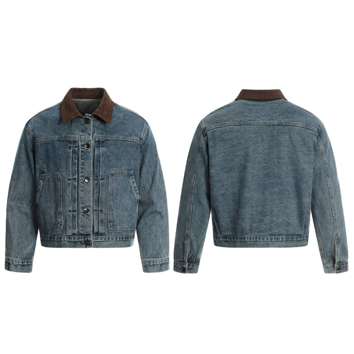 GXFortune 秋季美式復古短款牛仔外套男女潮牌痞帥高級感繙領夾克