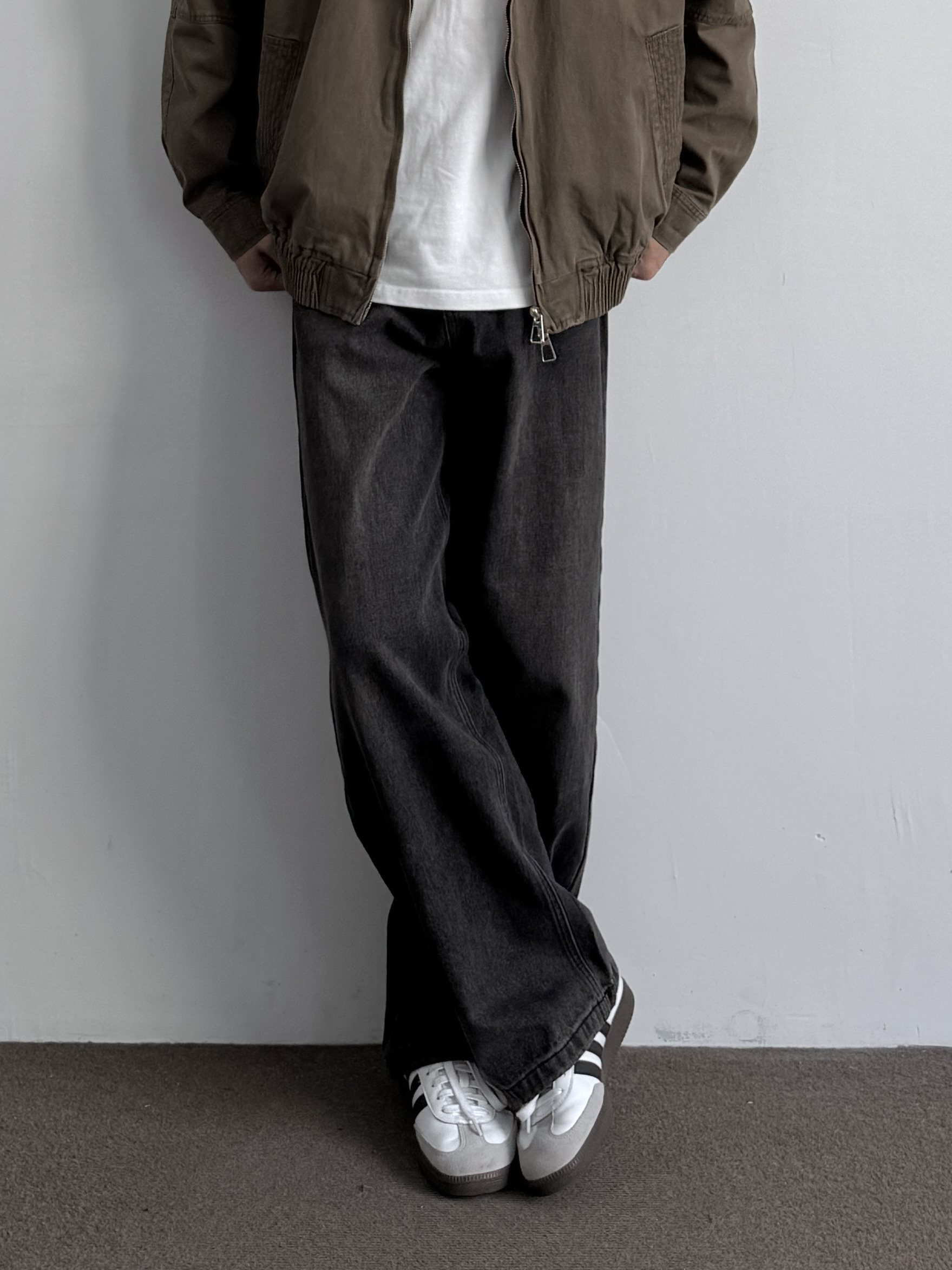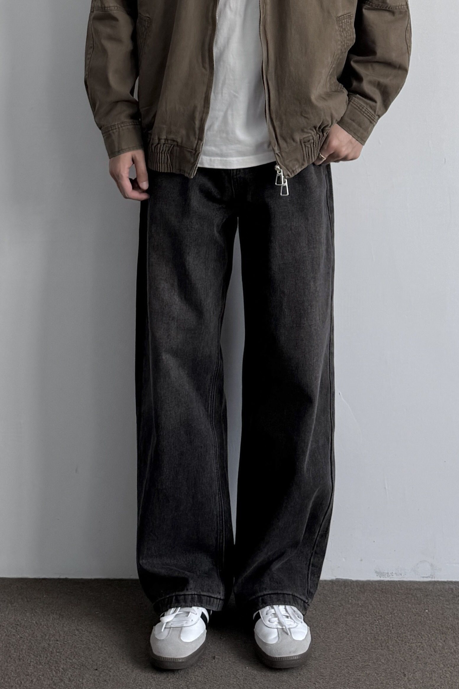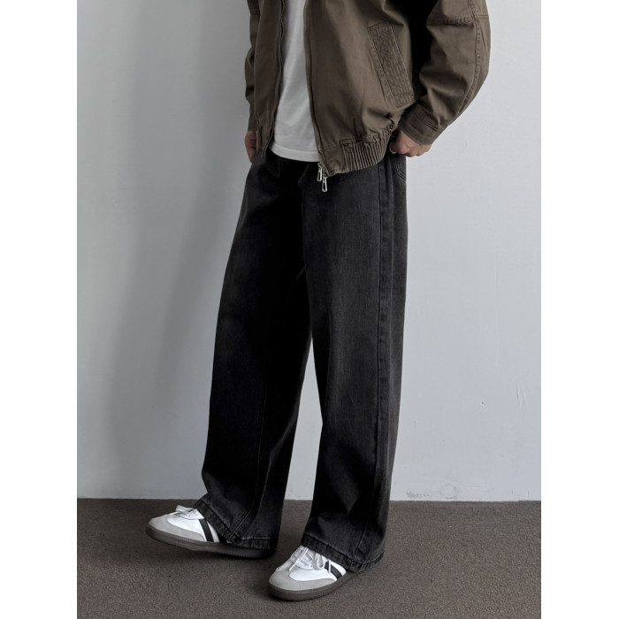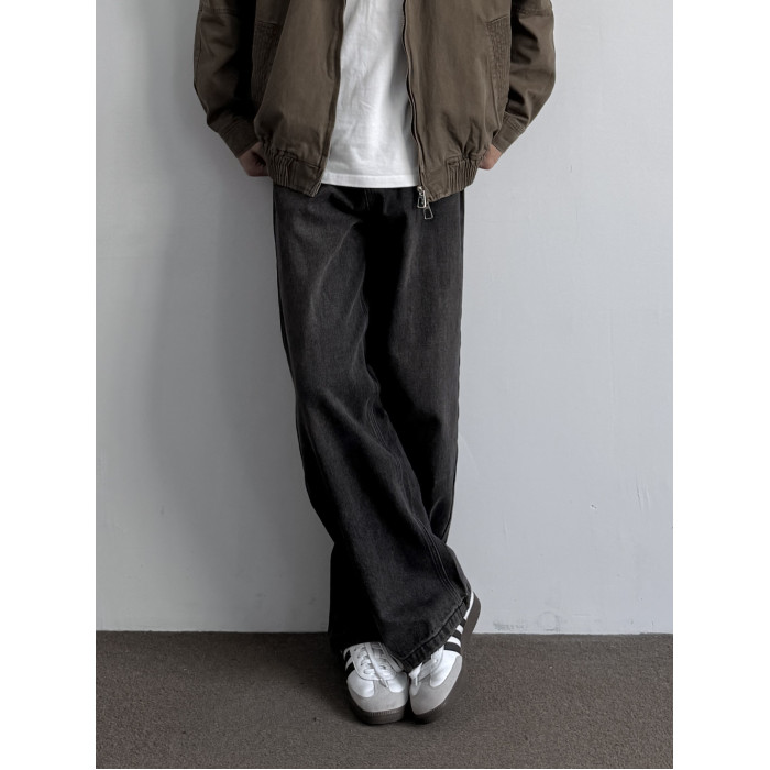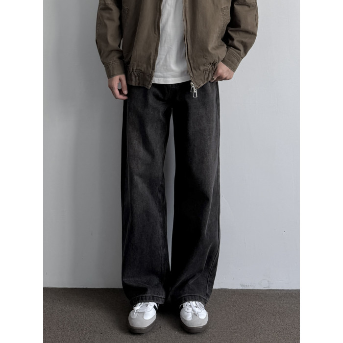 ONUN美式復古砂洗黑灰色做舊直筒牛仔褲寬鬆濶腿松弛感休閒長褲潮
