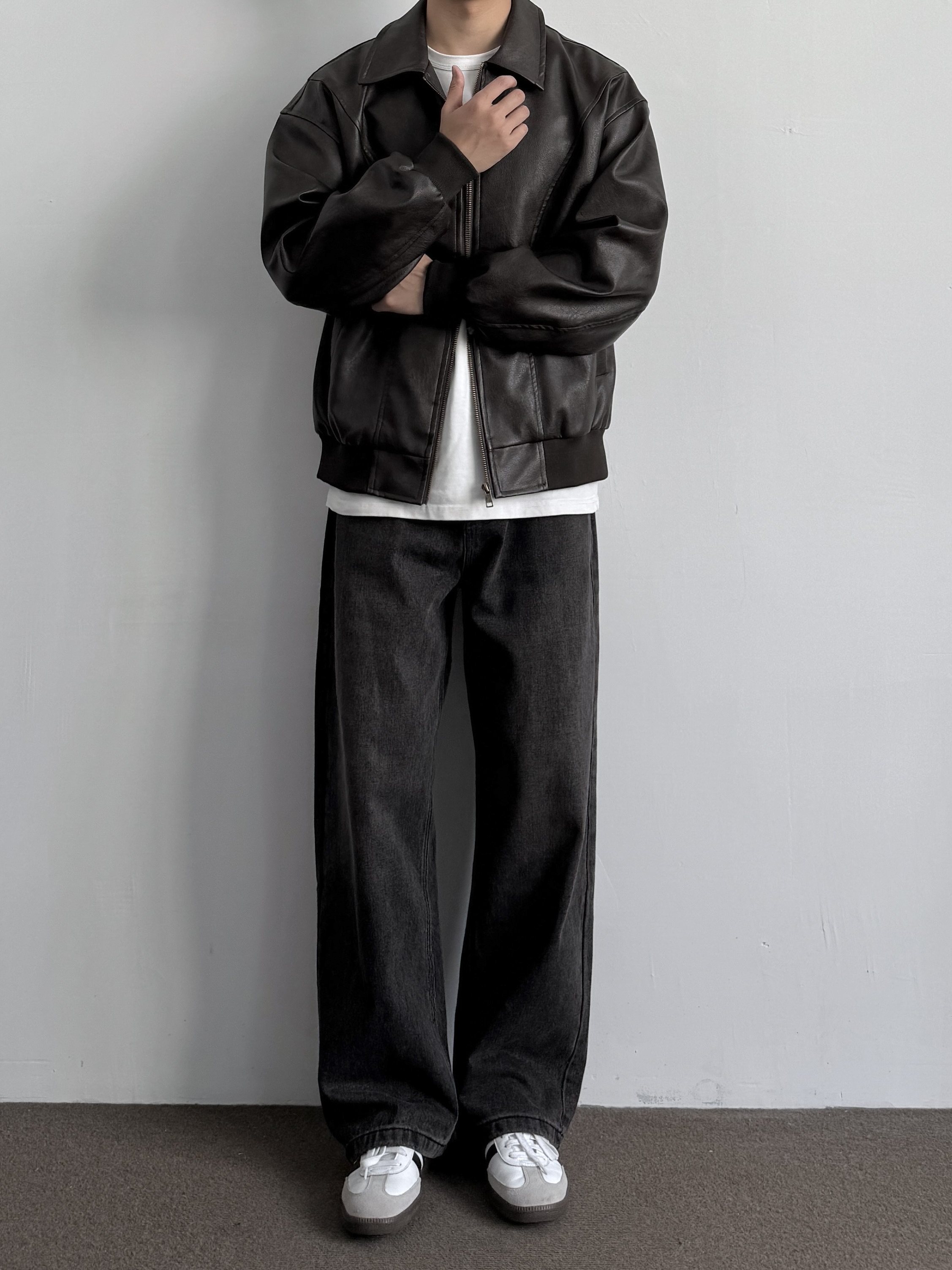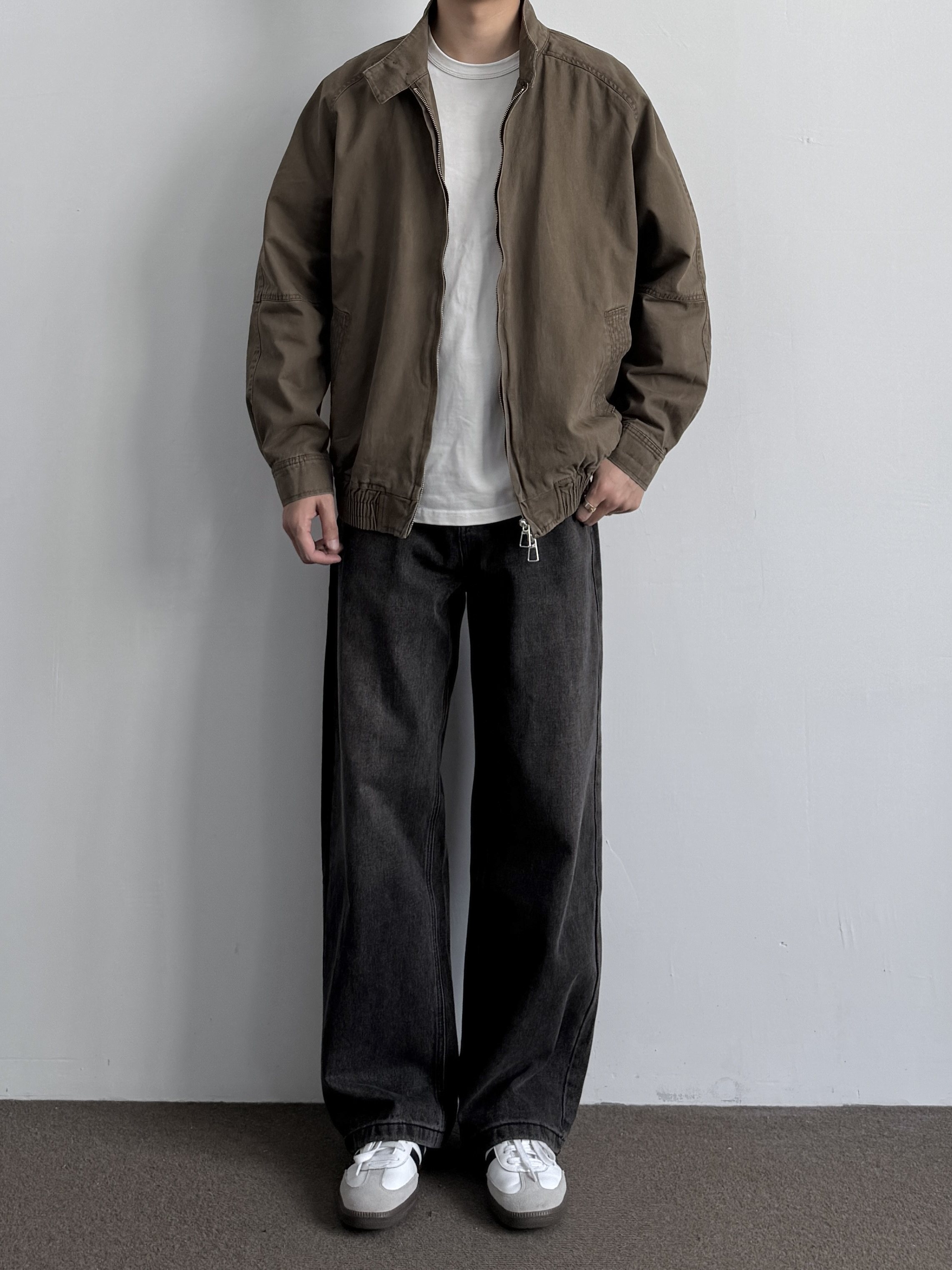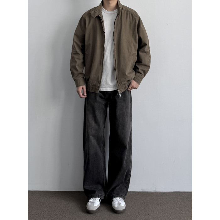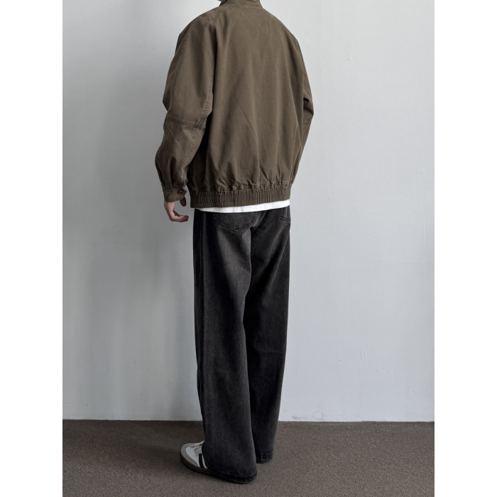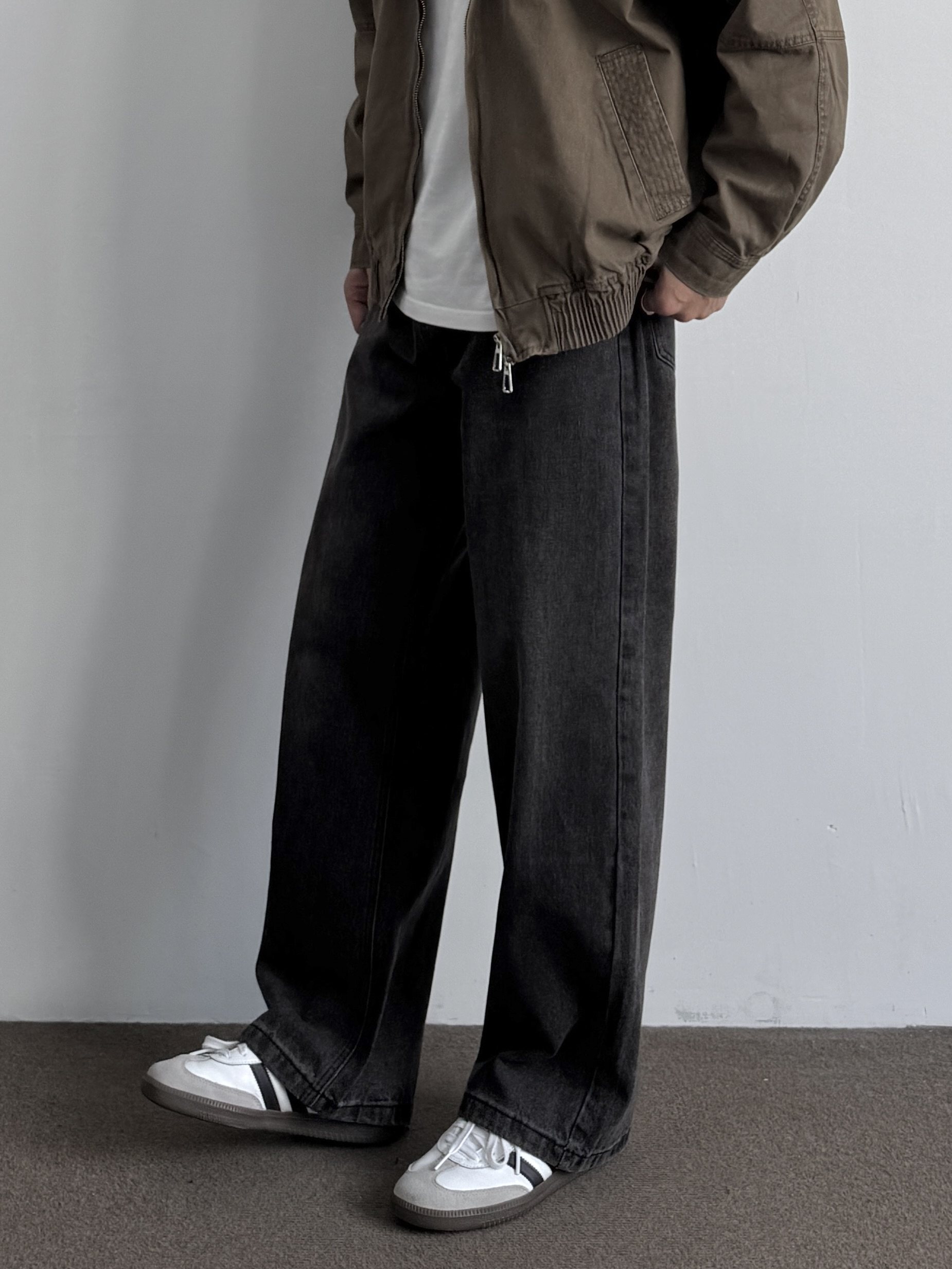 ONUN美式復古砂洗黑灰色做舊直筒牛仔褲寬鬆濶腿松弛感休閒長褲潮