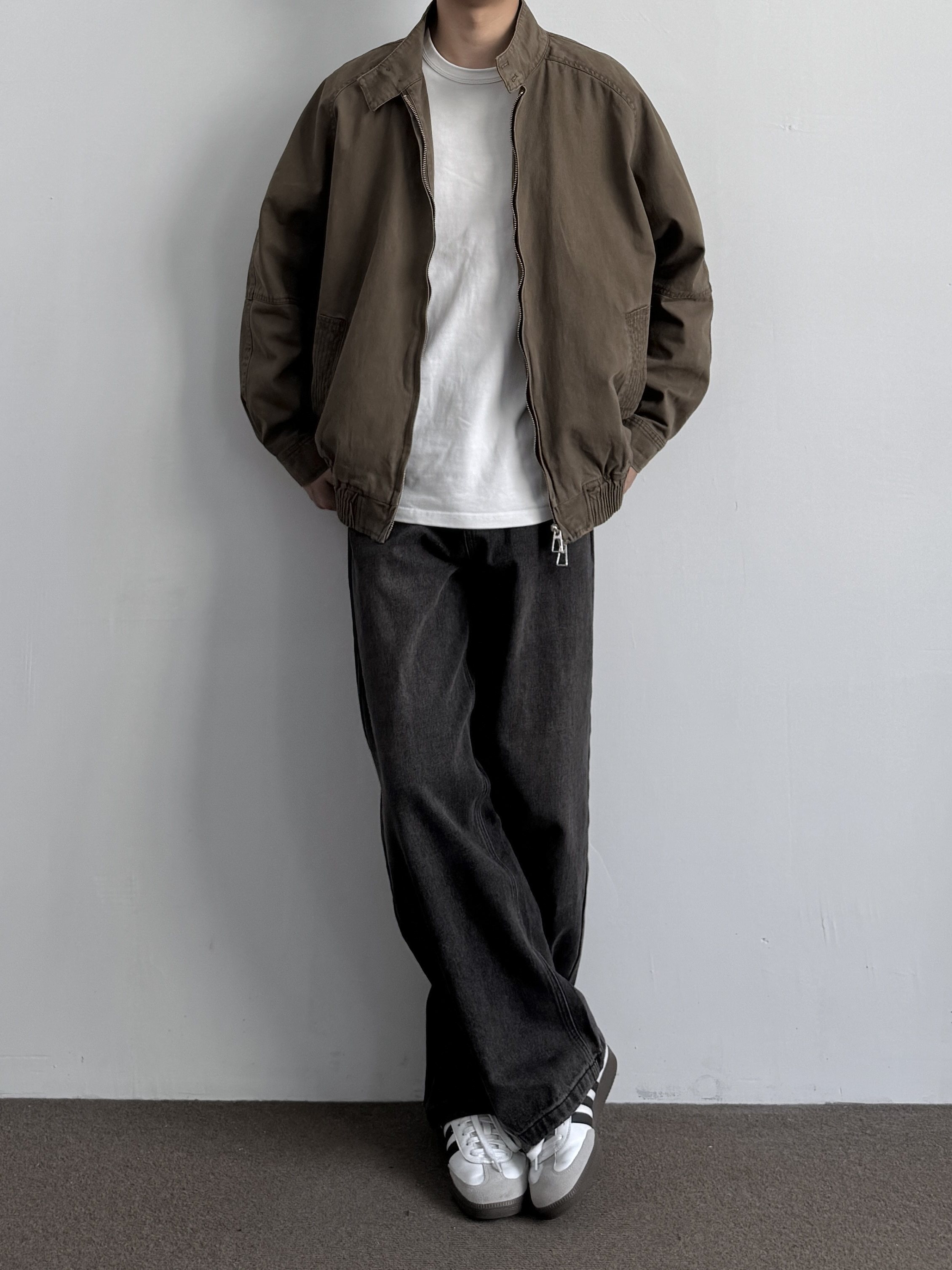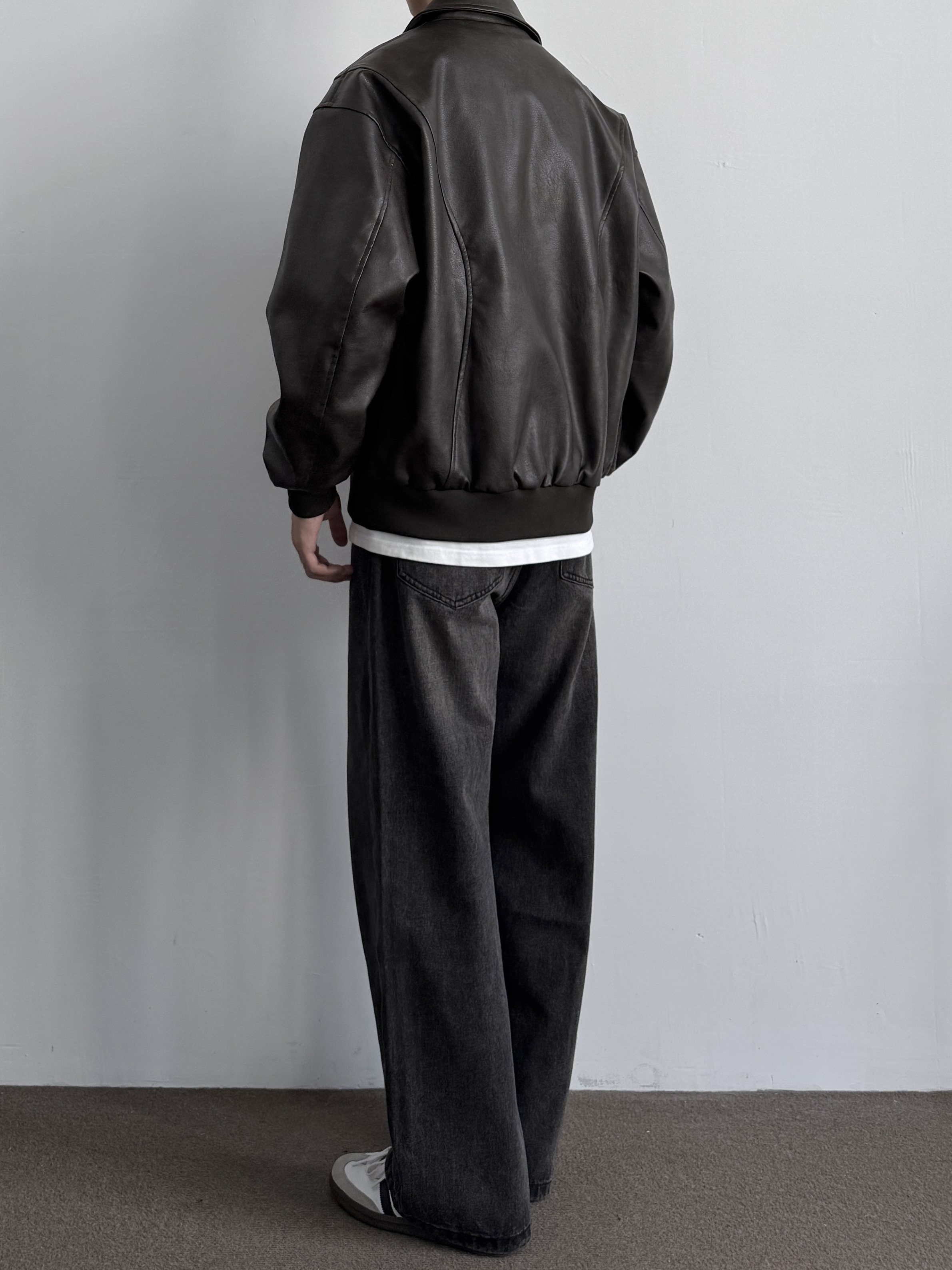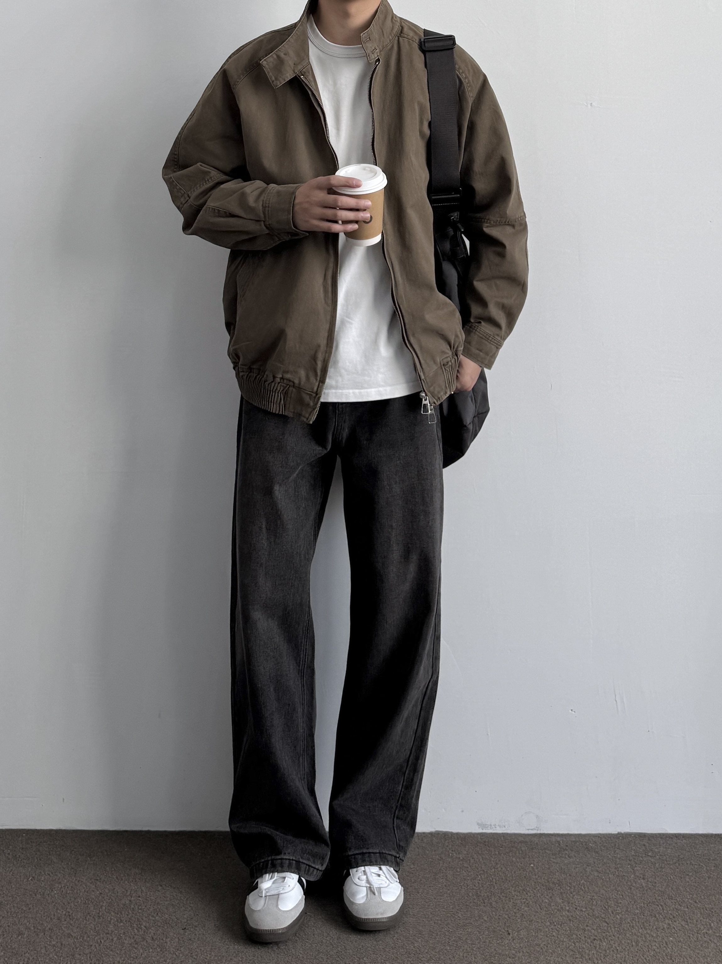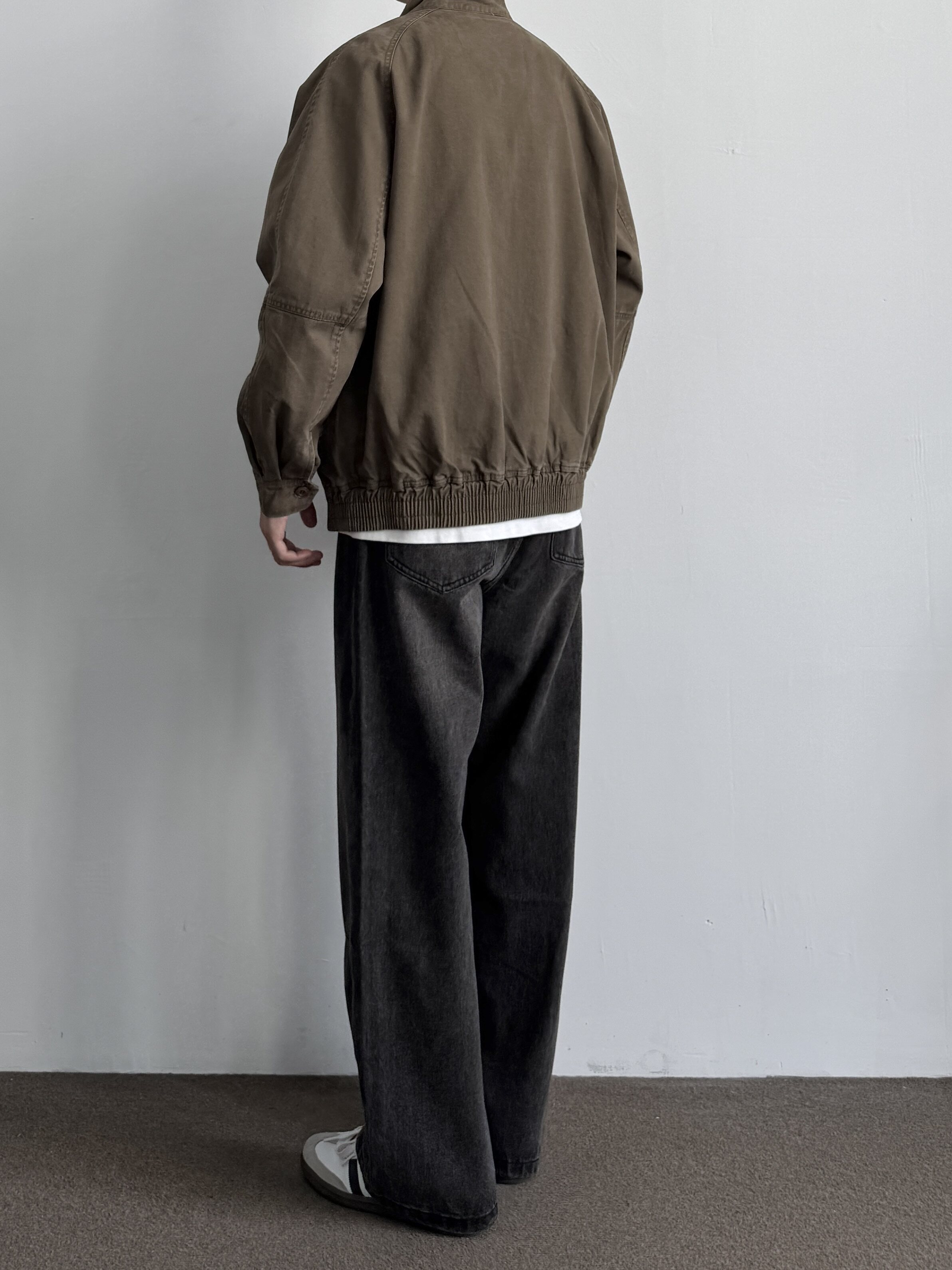 ONUN美式復古砂洗黑灰色做舊直筒牛仔褲寬鬆濶腿松弛感休閒長褲潮