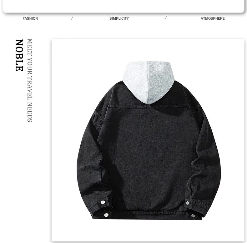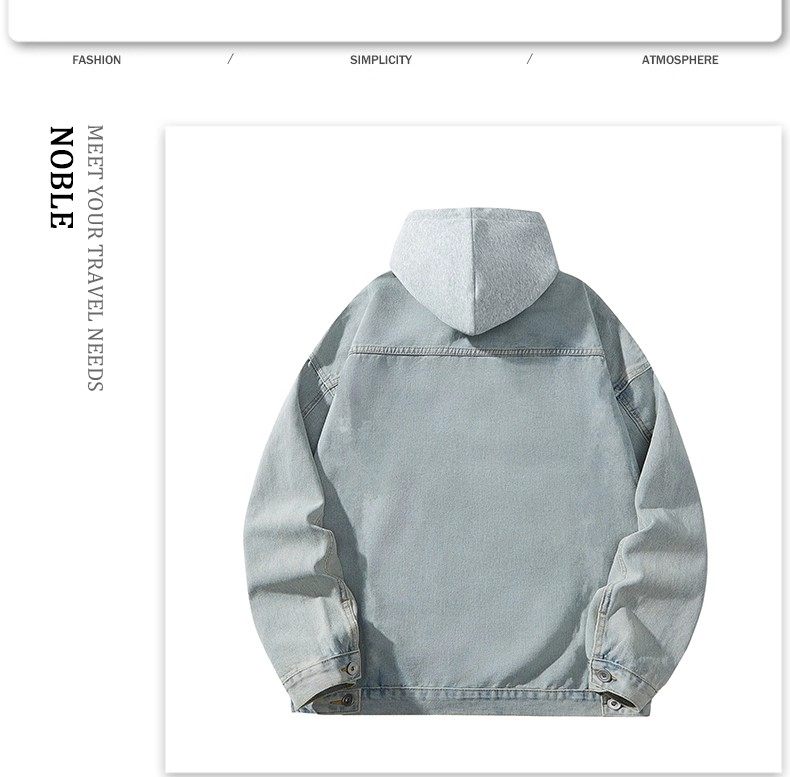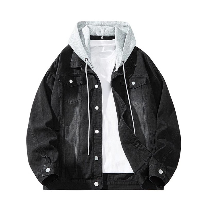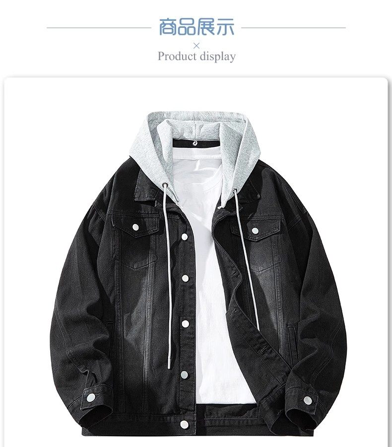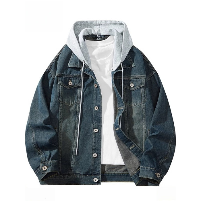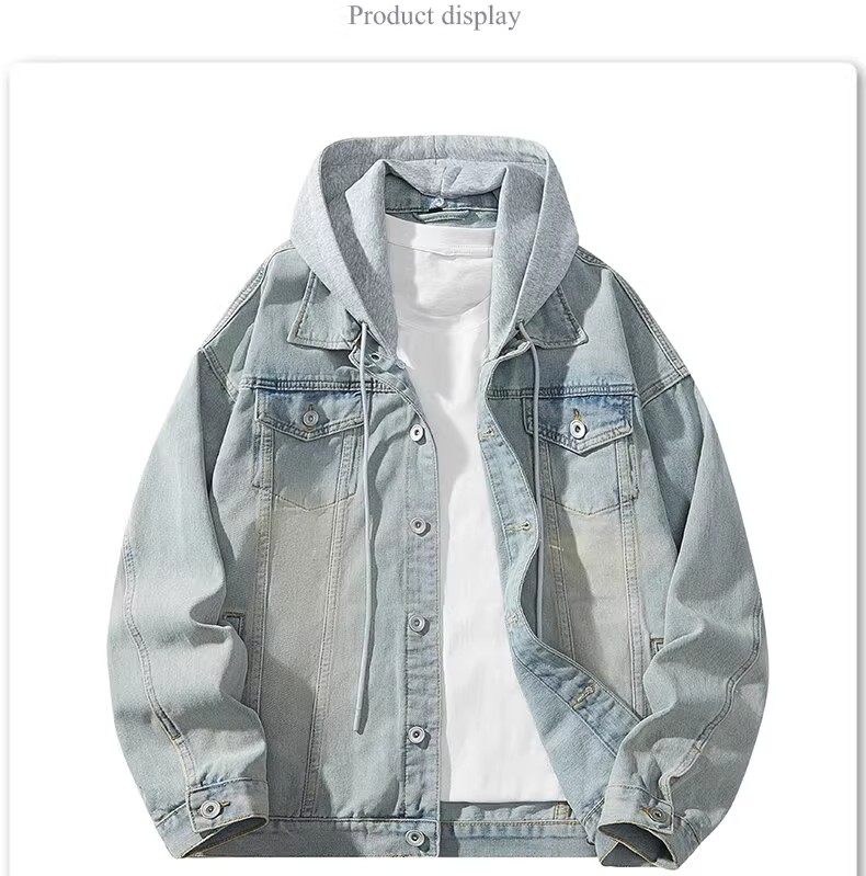 胖子特大碼美式連帽牛仔外套男春秋季復古工裝夾克百搭繙領上衣潮
