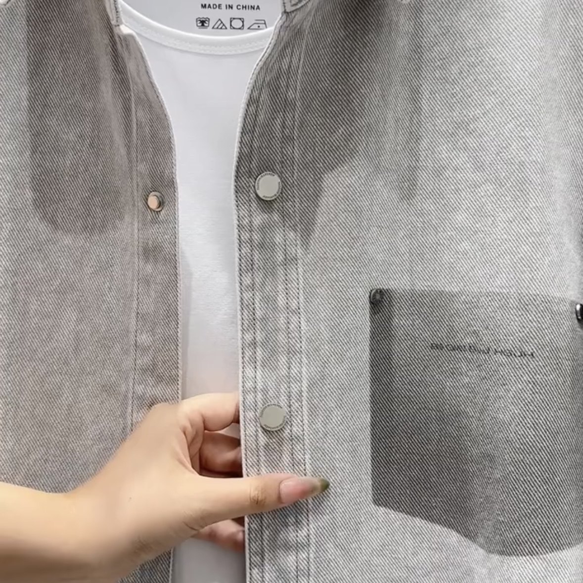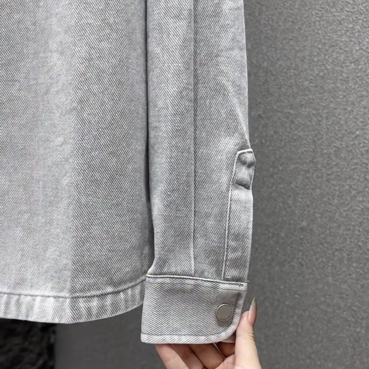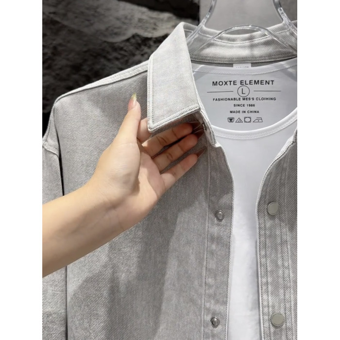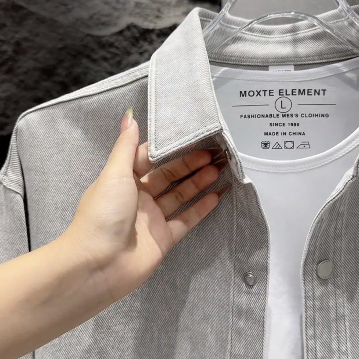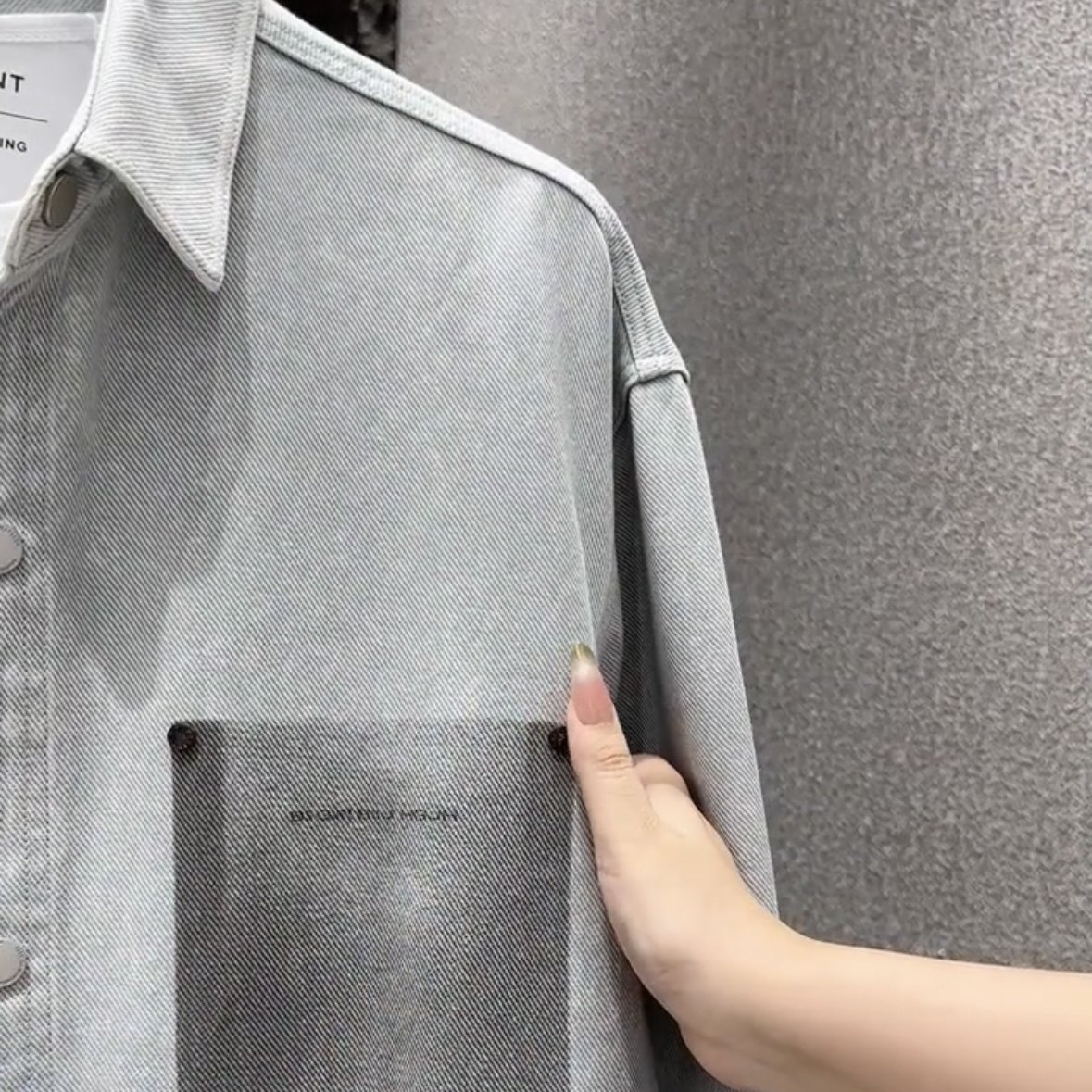 春秋新款做舊水洗繙領牛仔襯衫男士寬鬆高級潮牌痞帥夾克百搭外套