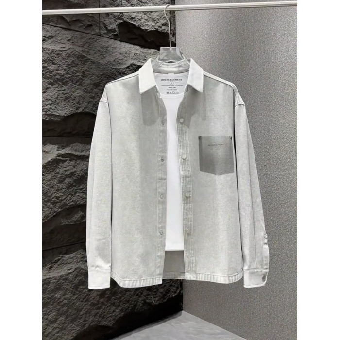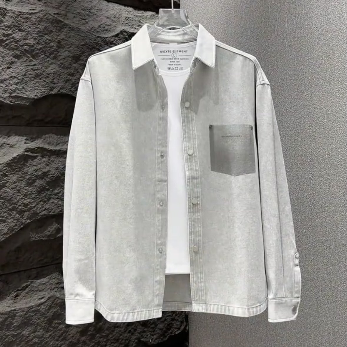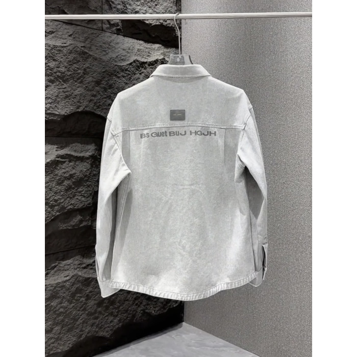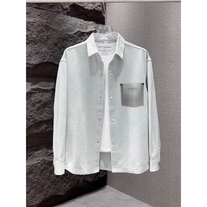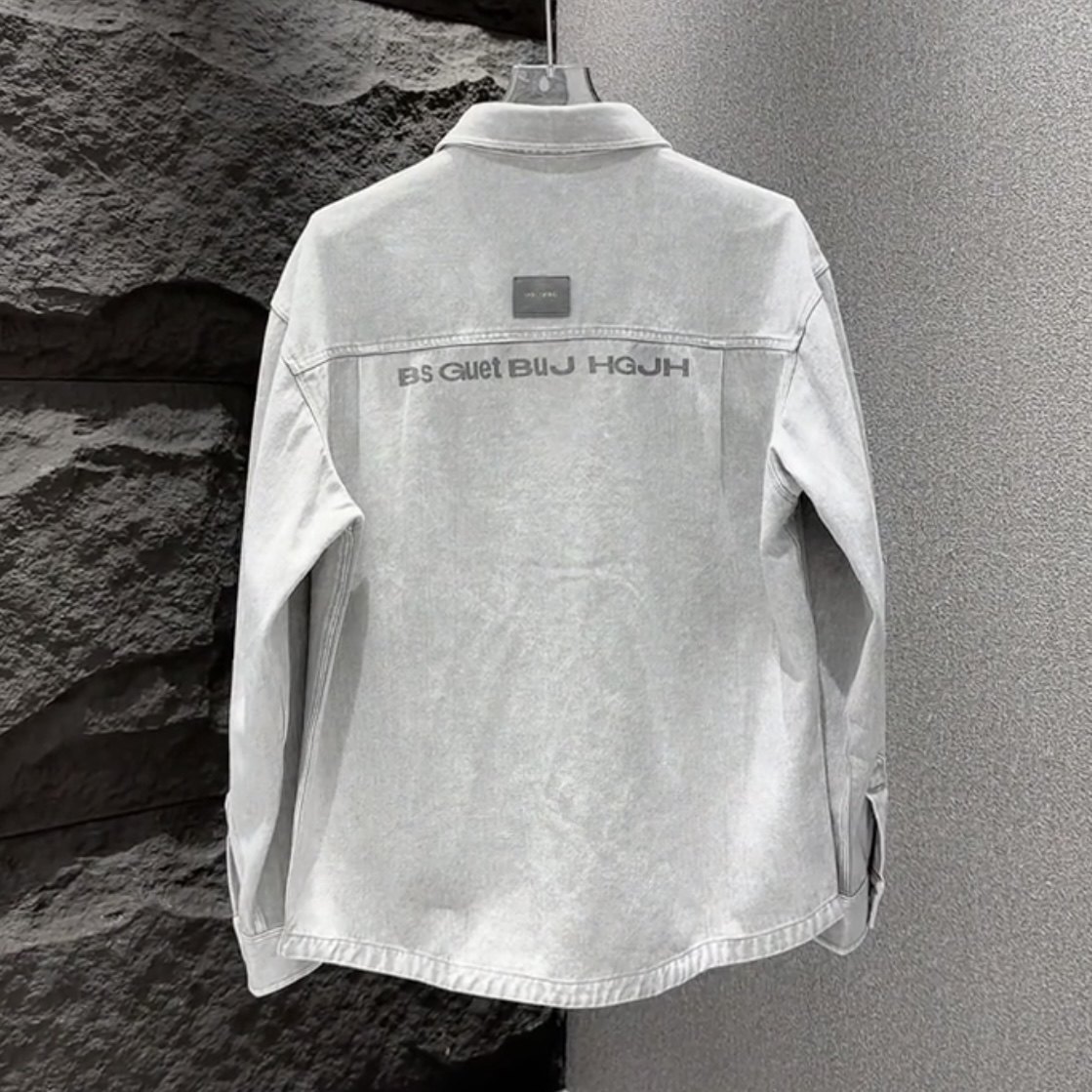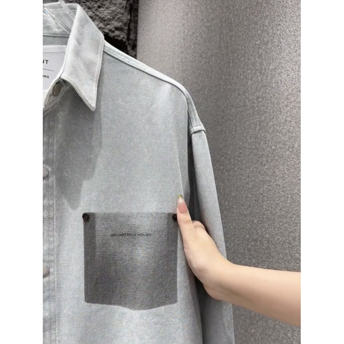 春秋新款做舊水洗繙領牛仔襯衫男士寬鬆高級潮牌痞帥夾克百搭外套