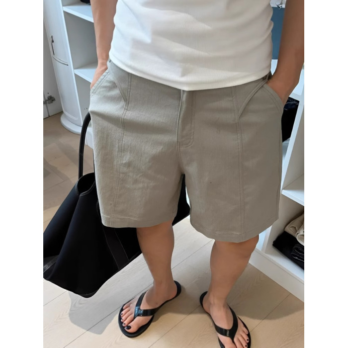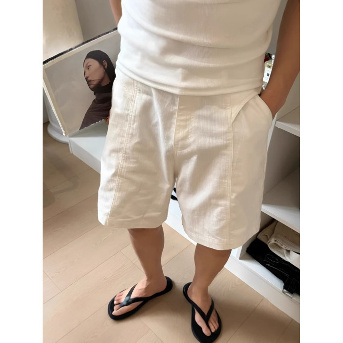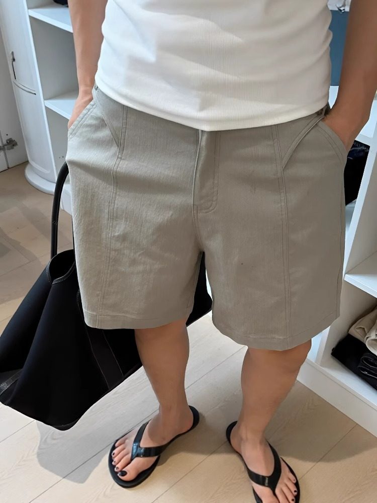 夏季新款男士亞麻清爽透氣短褲中腰微寬鬆老錢顯貴百搭直筒休閒褲