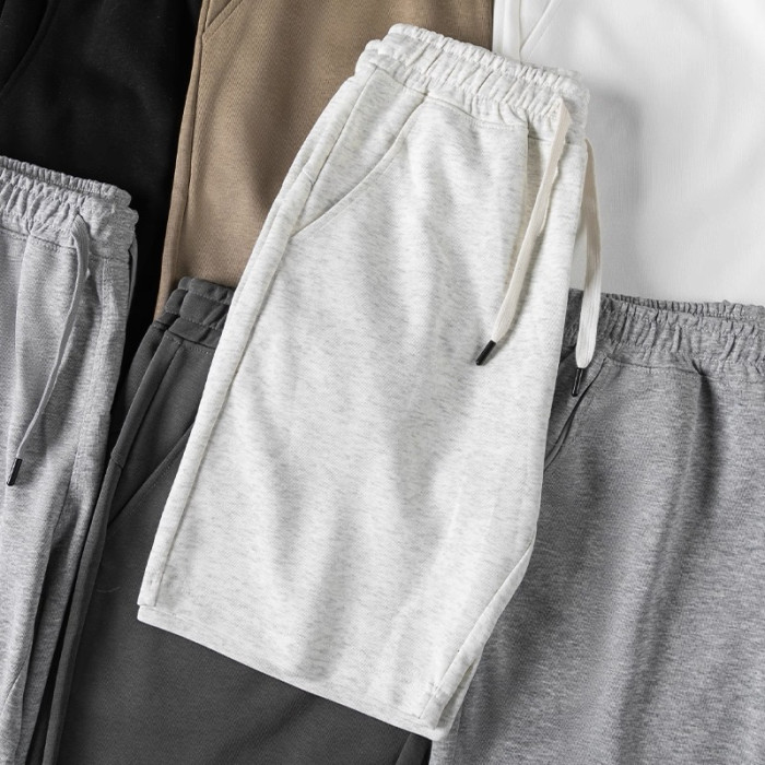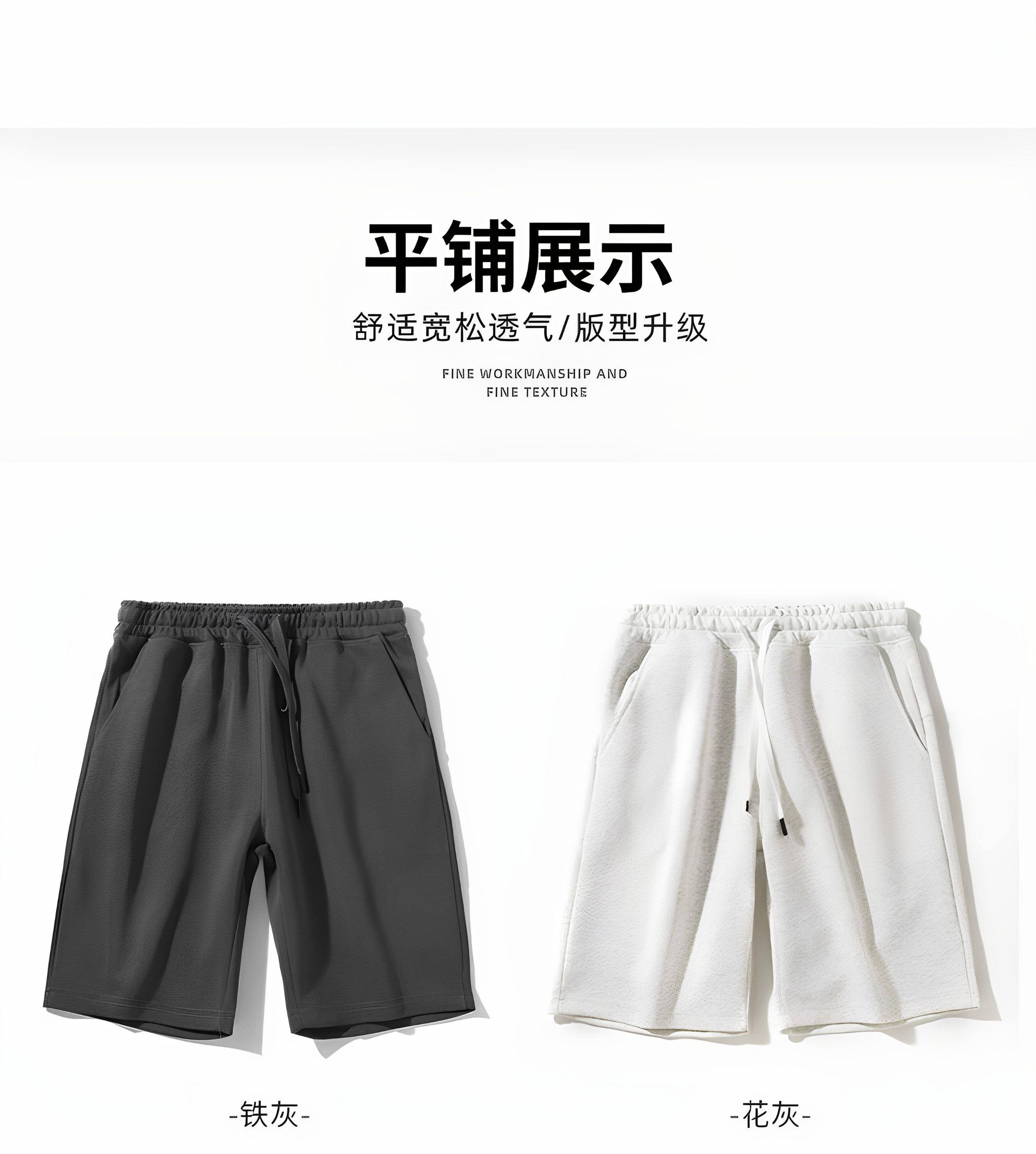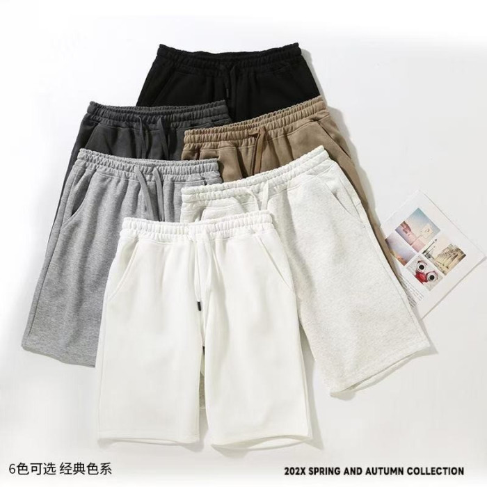 320g重磅短褲男款夏季美式寬鬆大碼休閒運動抽繩透氣純色運動褲潮
