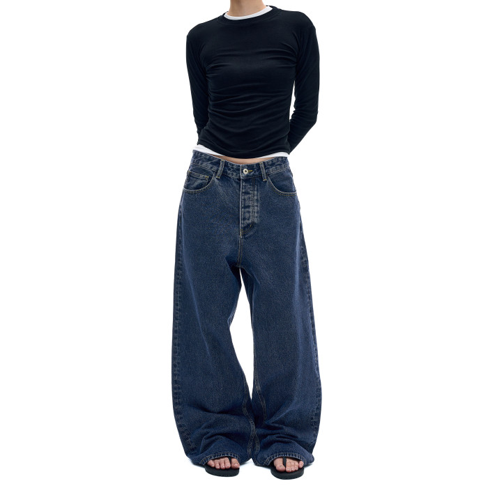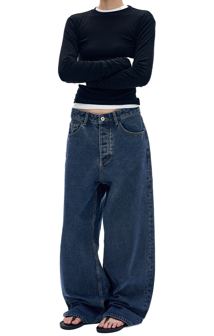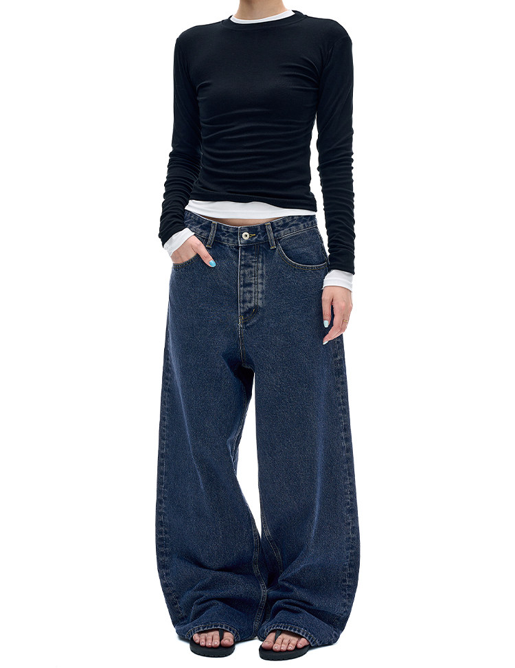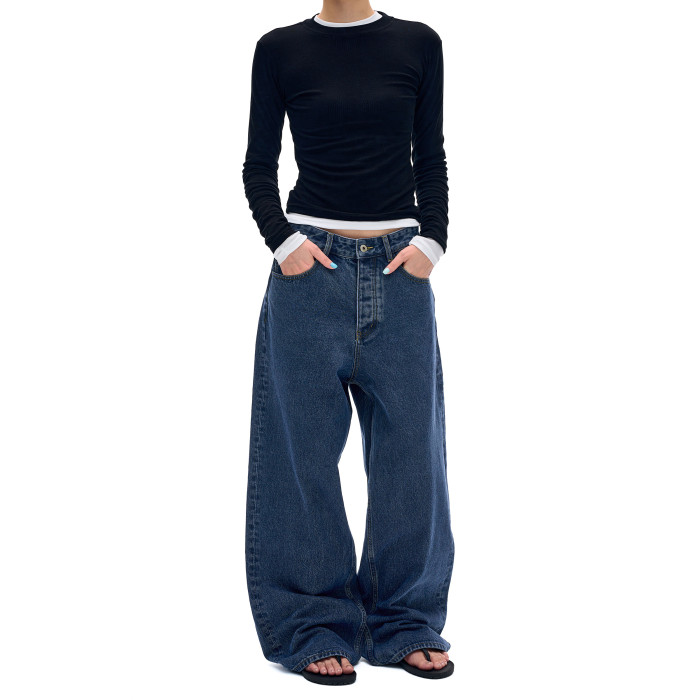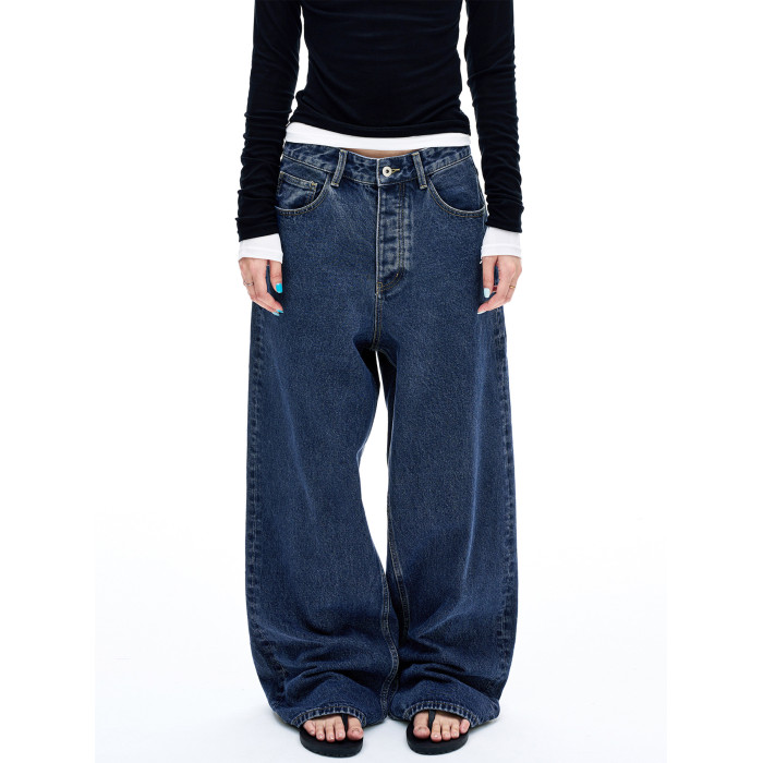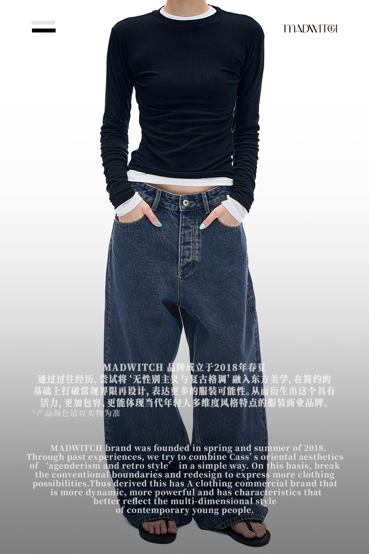 MADWITCH復古簡約水洗做舊牛仔褲男女美式休閒高級感寬鬆直筒褲子
