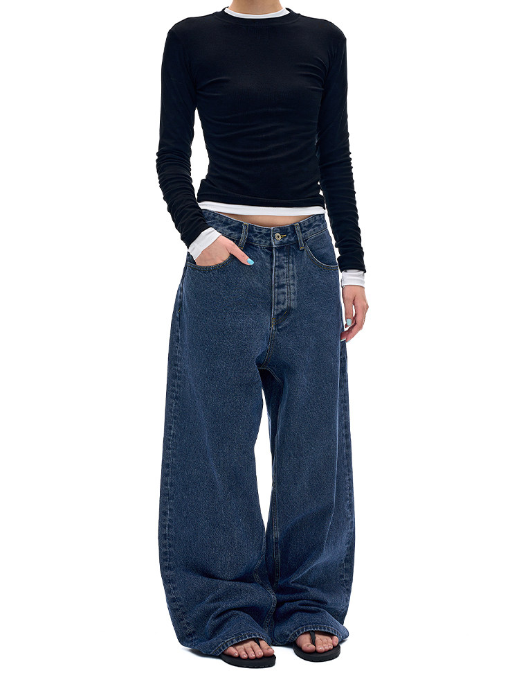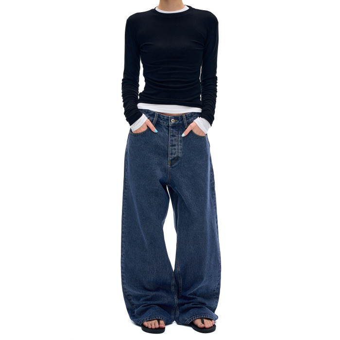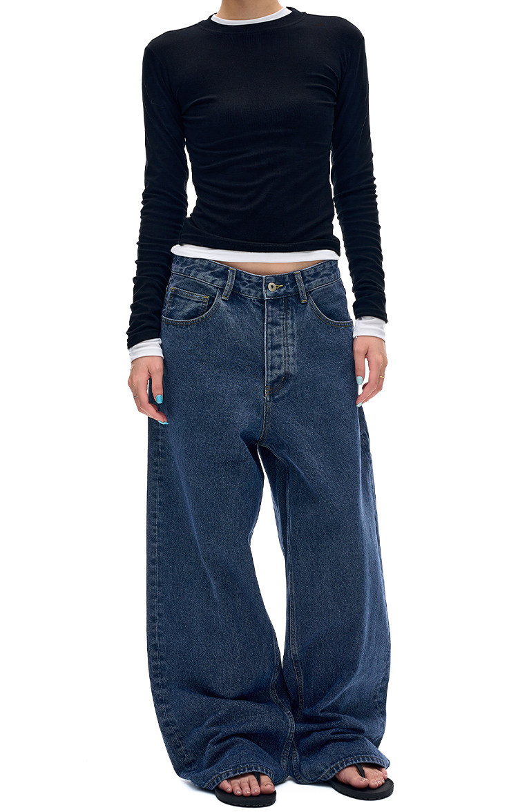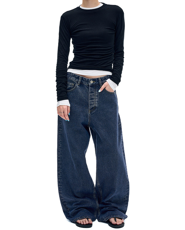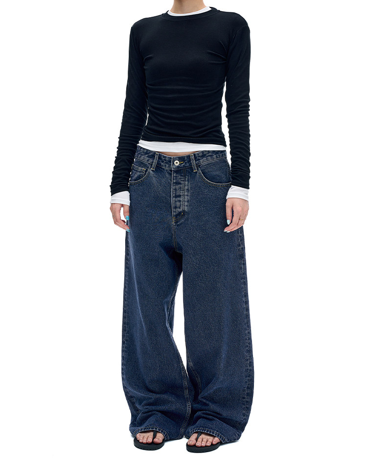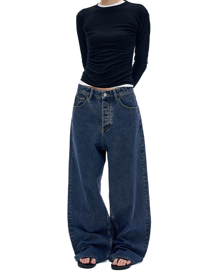 MADWITCH復古簡約水洗做舊牛仔褲男女美式休閒高級感寬鬆直筒褲子