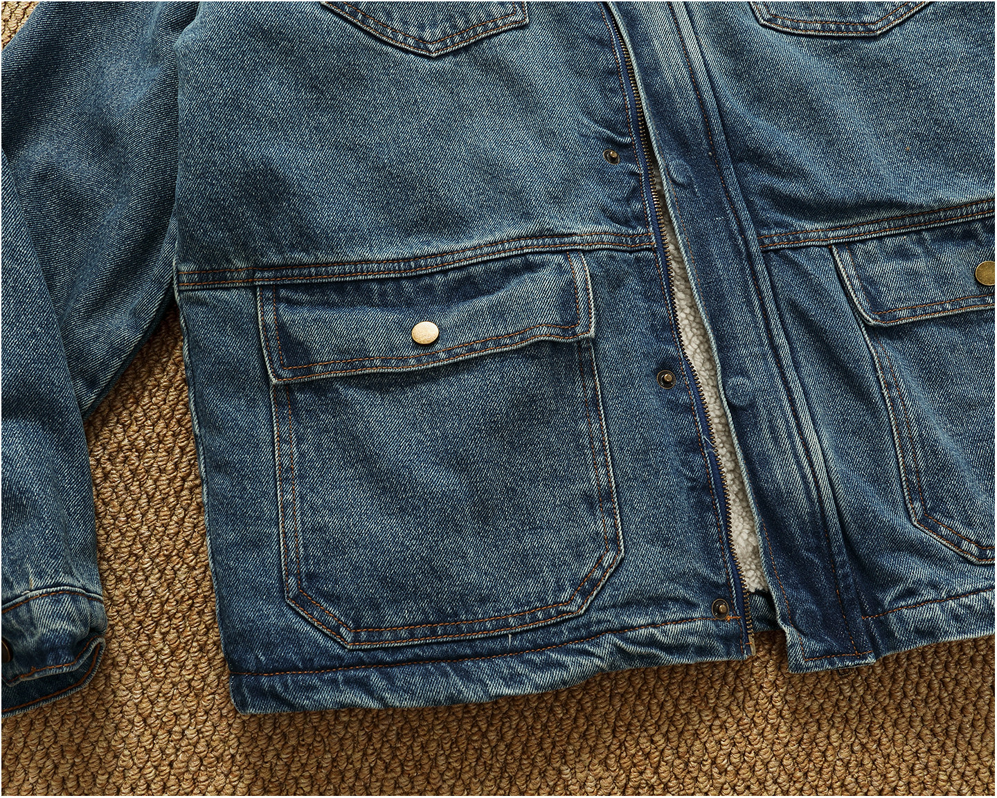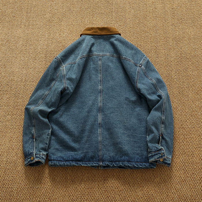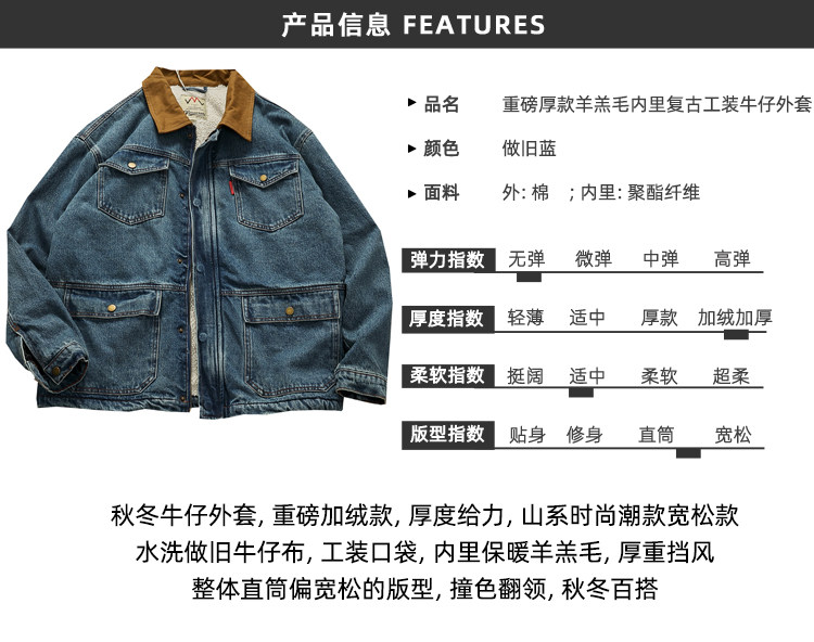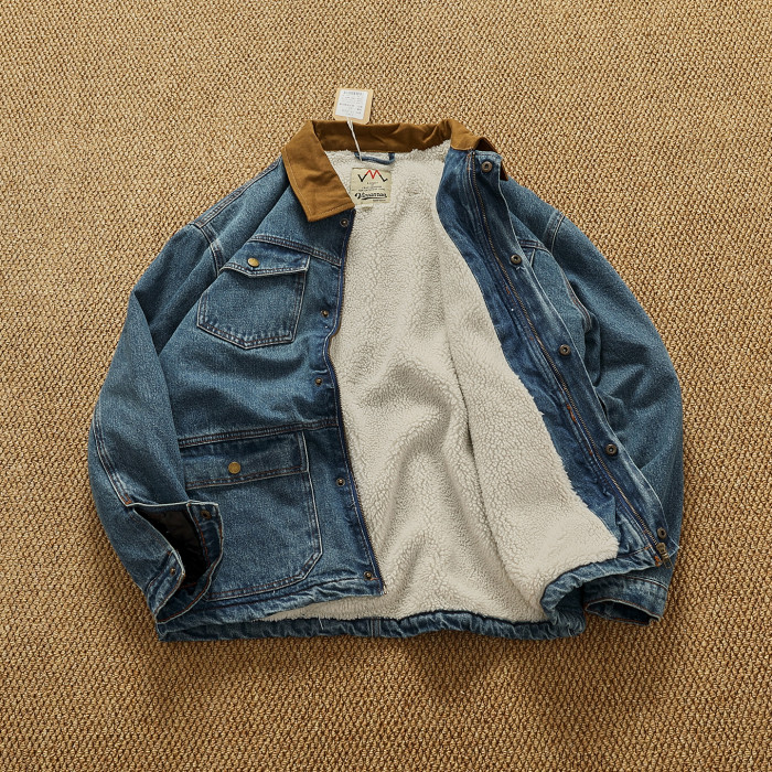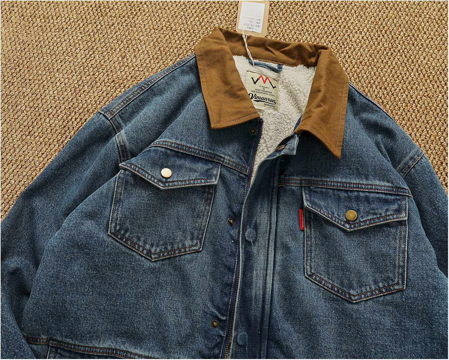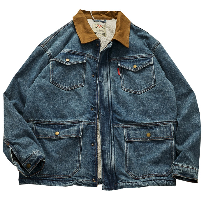 高街美式重磅內裡羊羔絨加厚牛仔棉服外套男冬季保暖工裝棉襖上衣