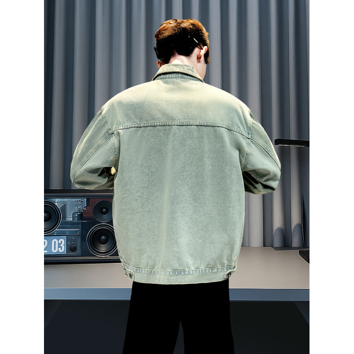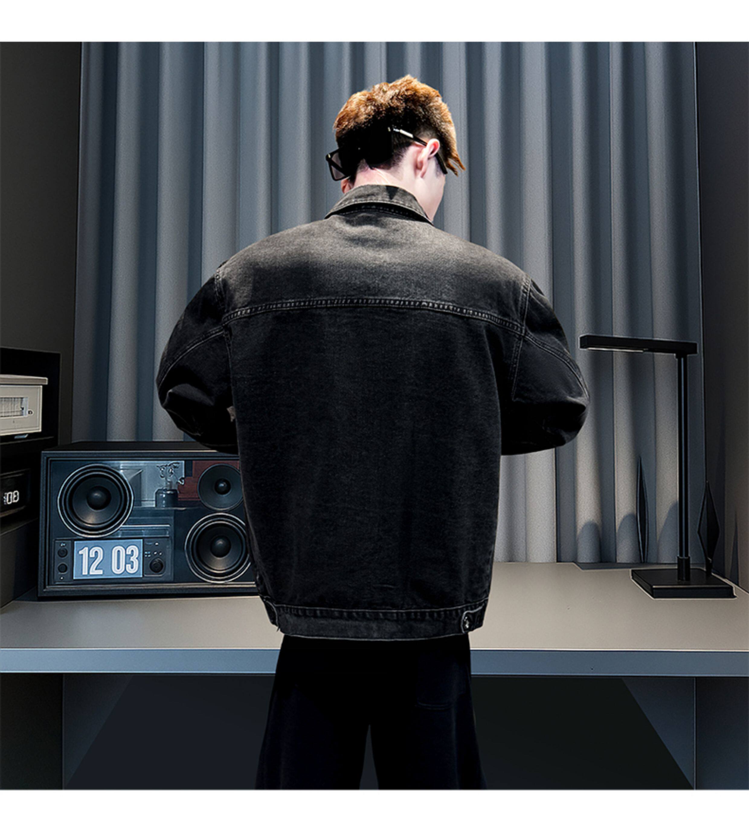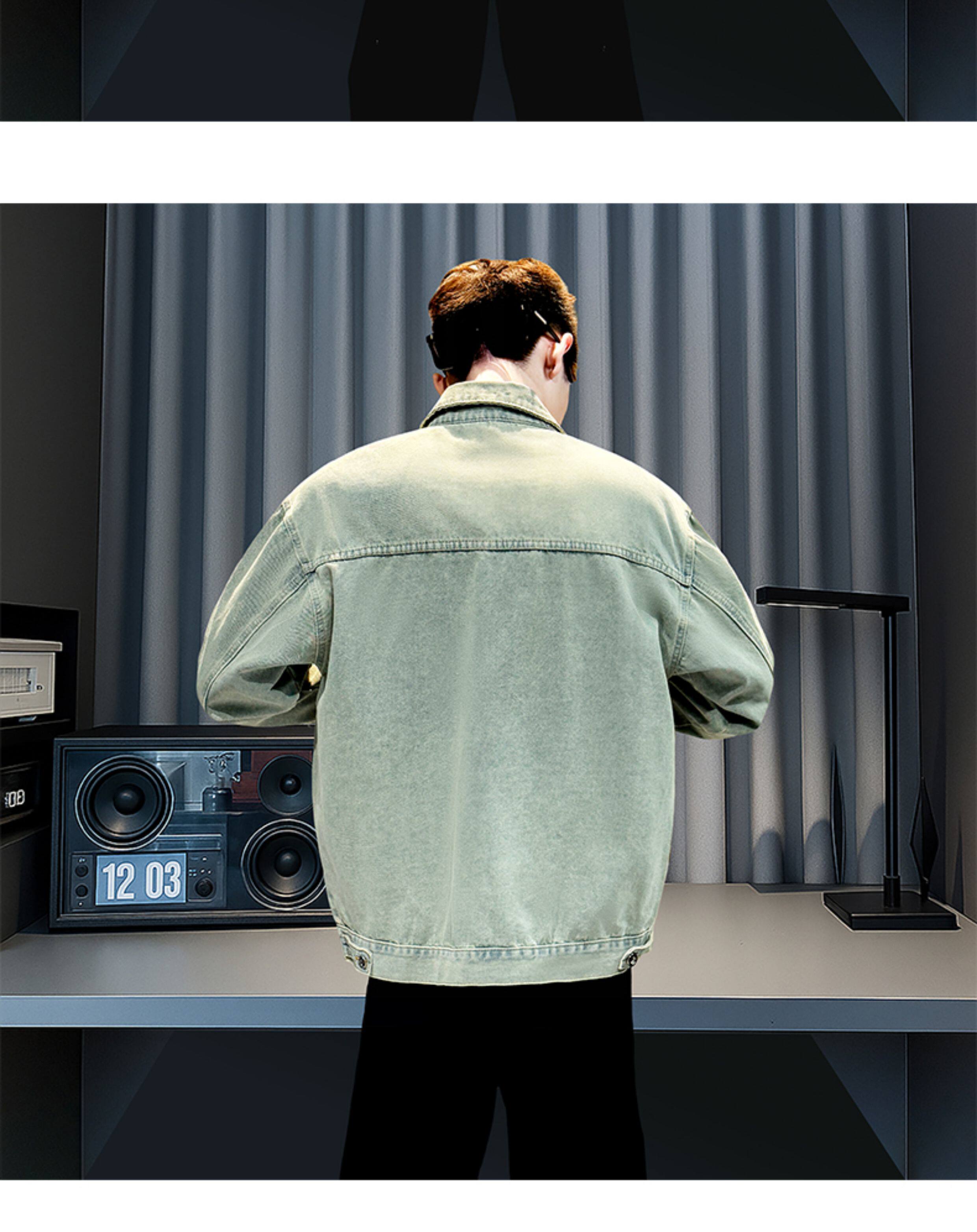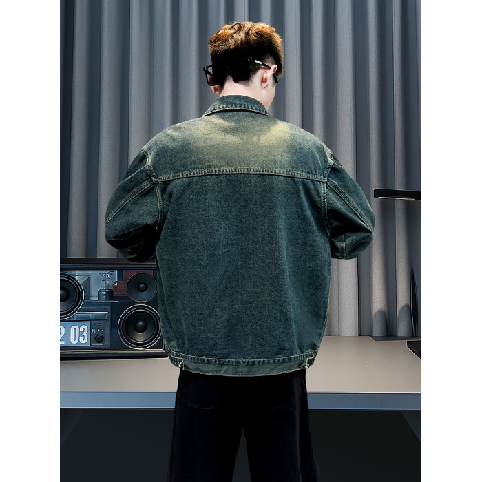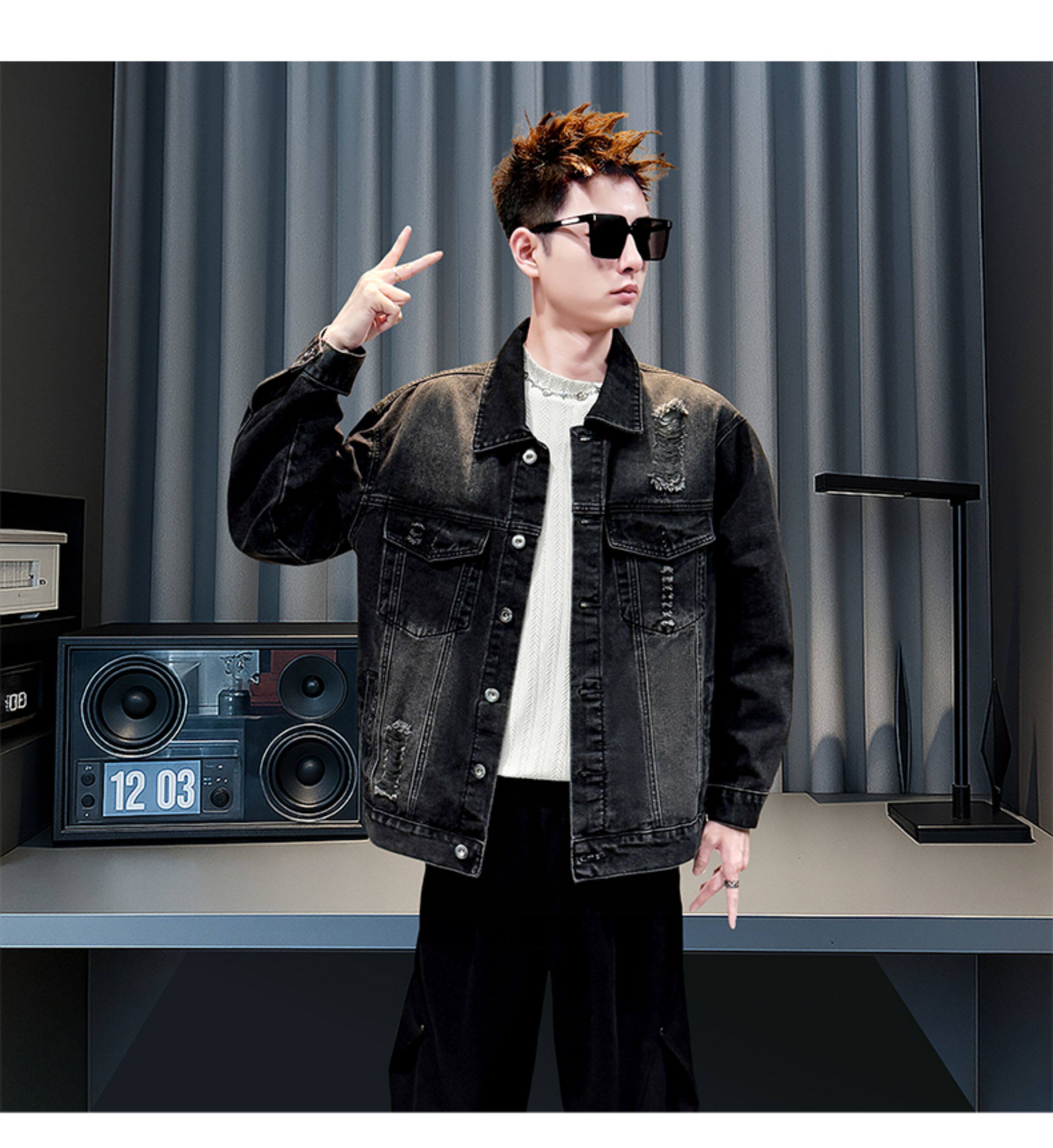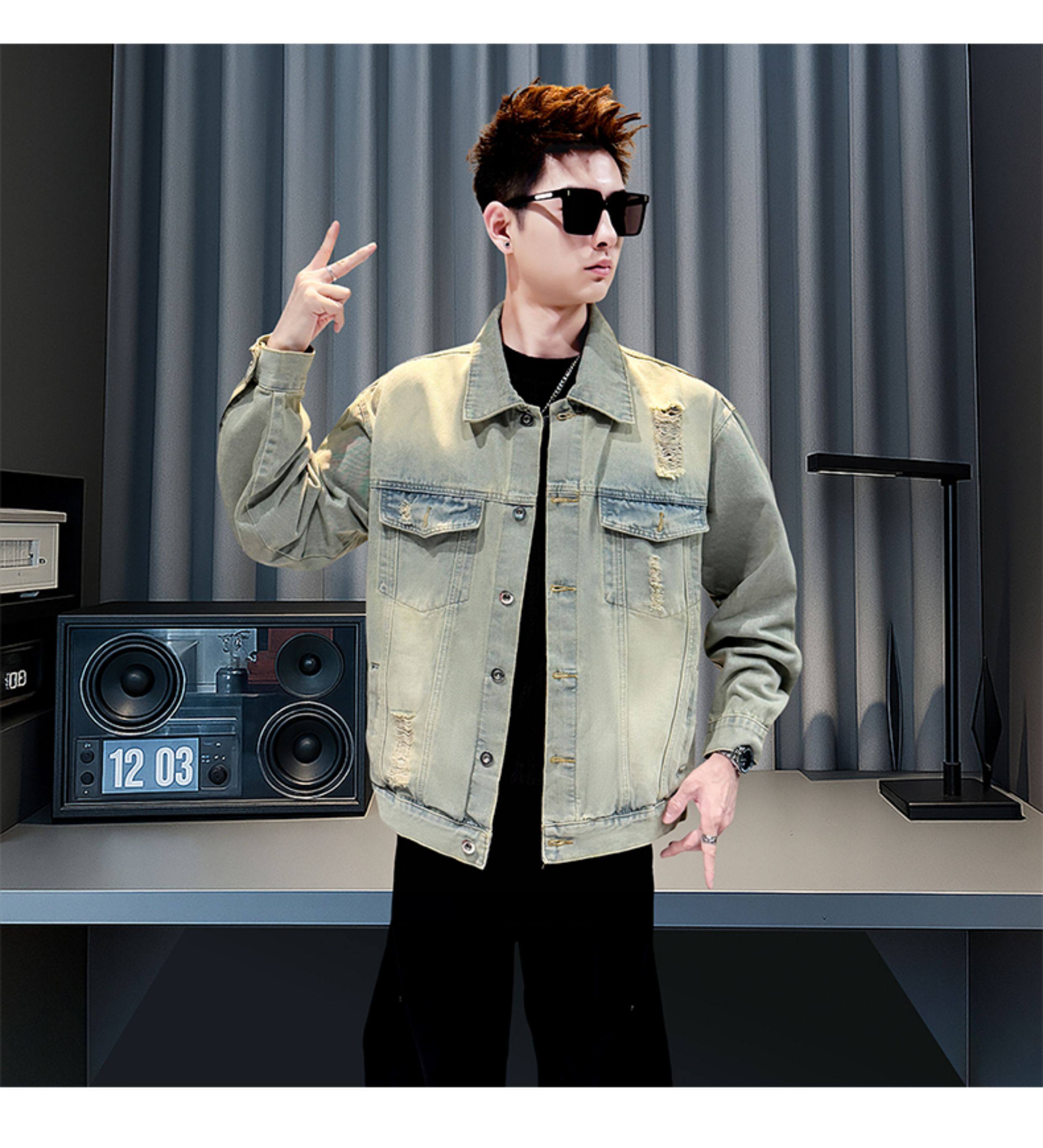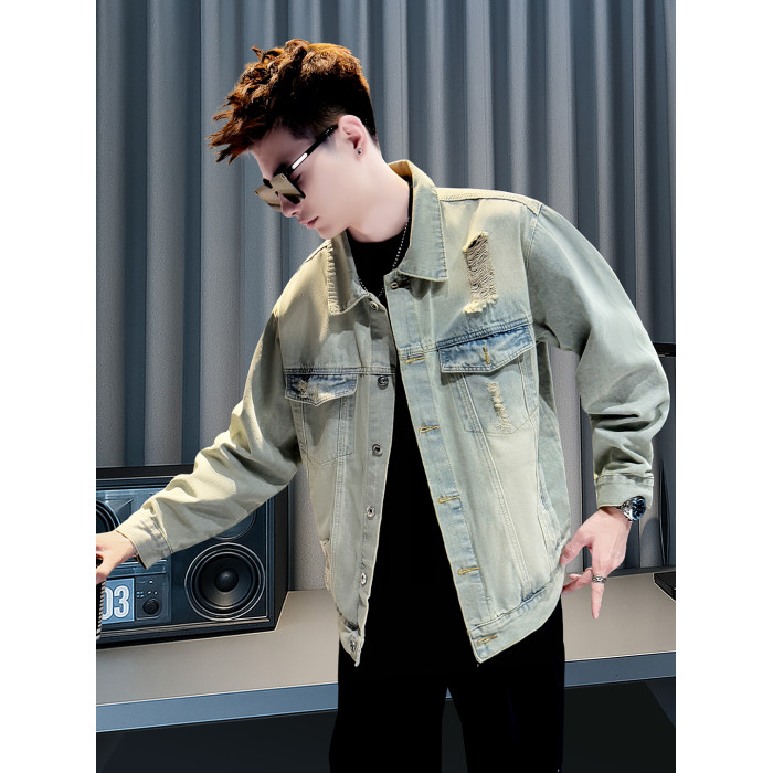 美式復古牛仔外套男士高級感潮牌破洞褂子春秋季新款潮流休閒夾克