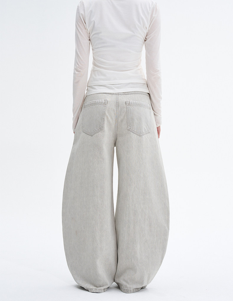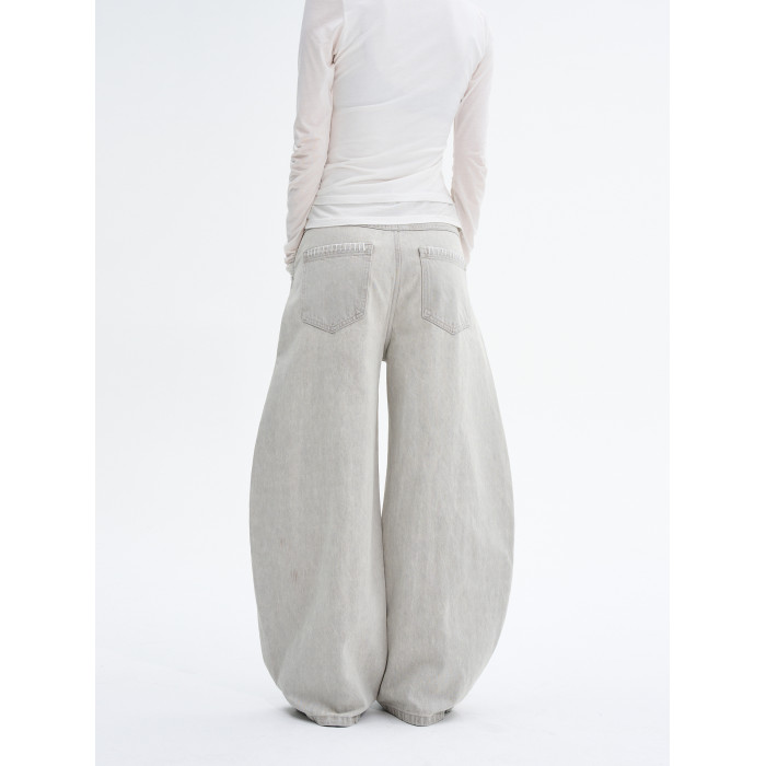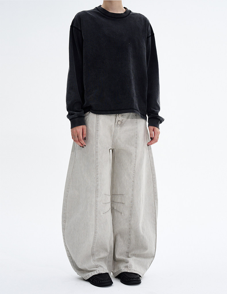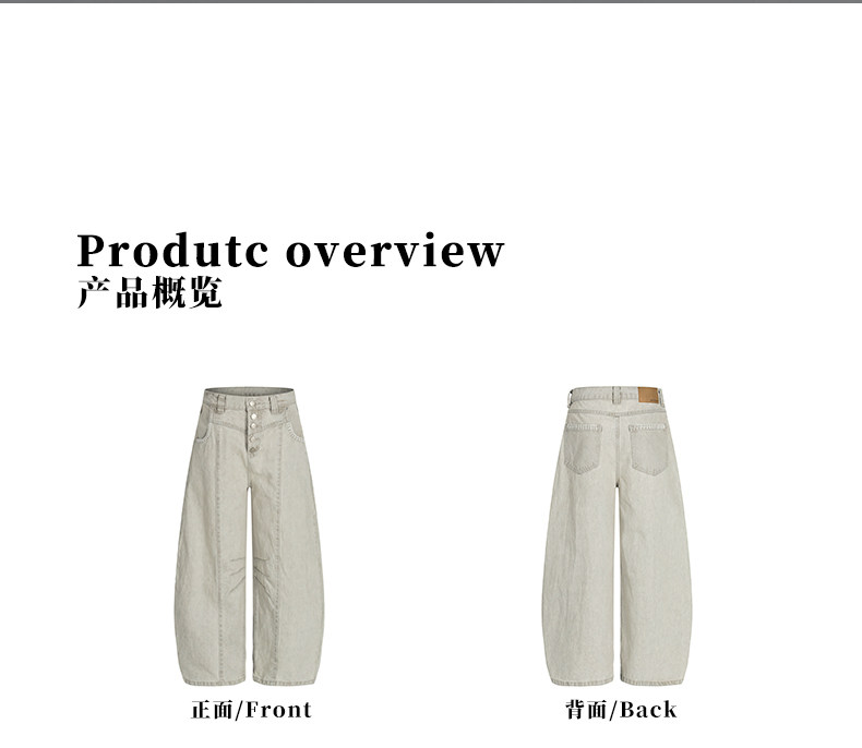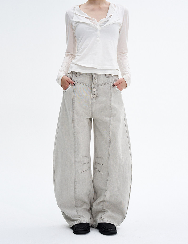 MADWITCH美式水洗磨白排釦工裝褲男女寬鬆濶腿解搆設計感彎刀褲子