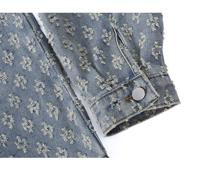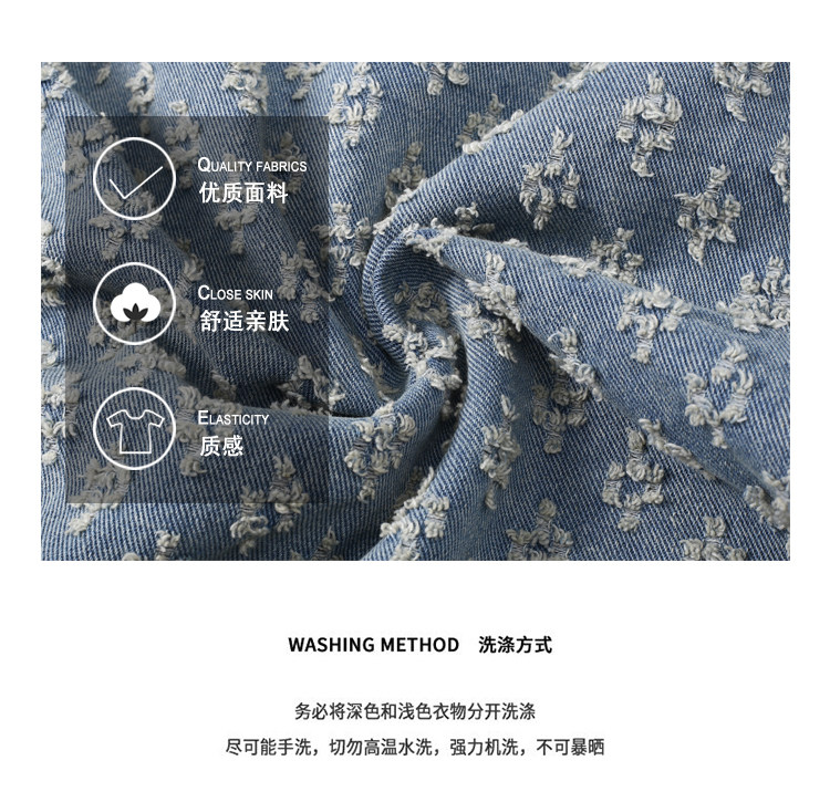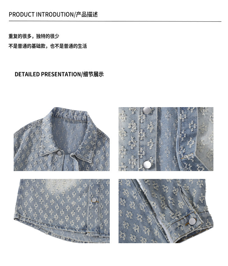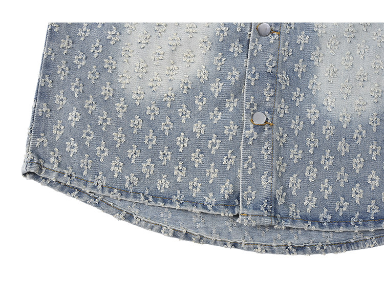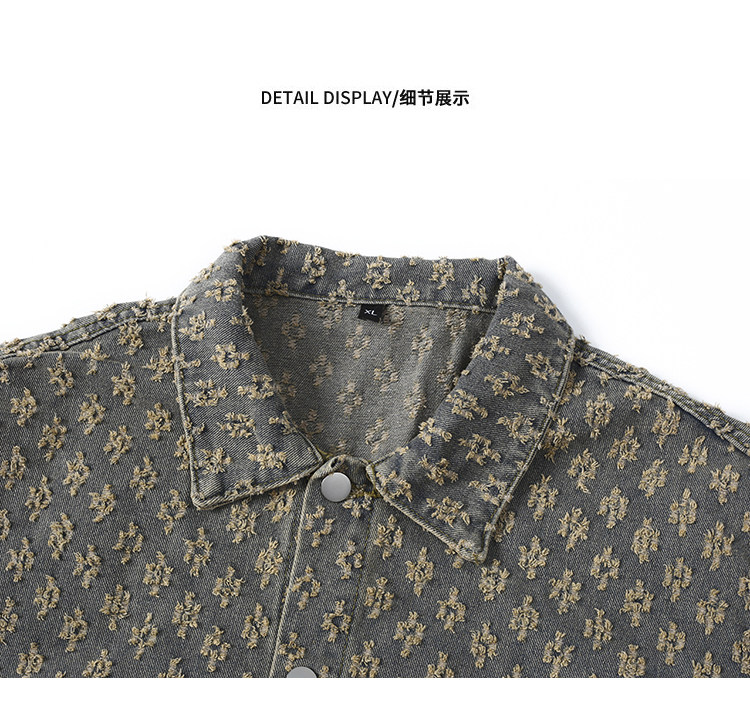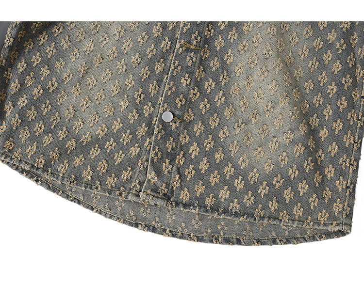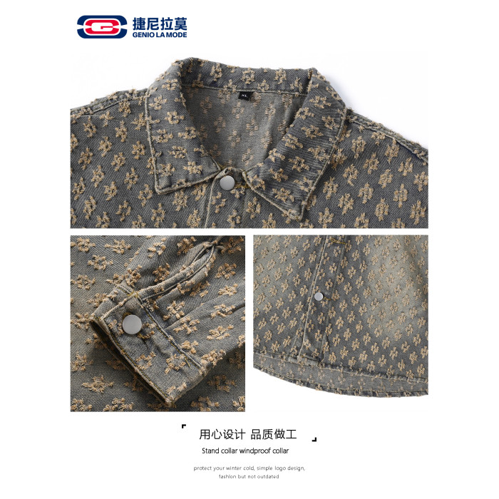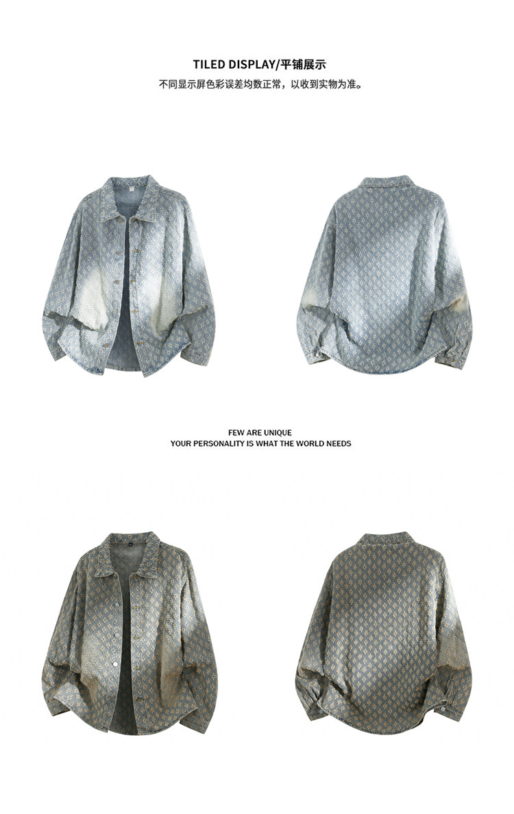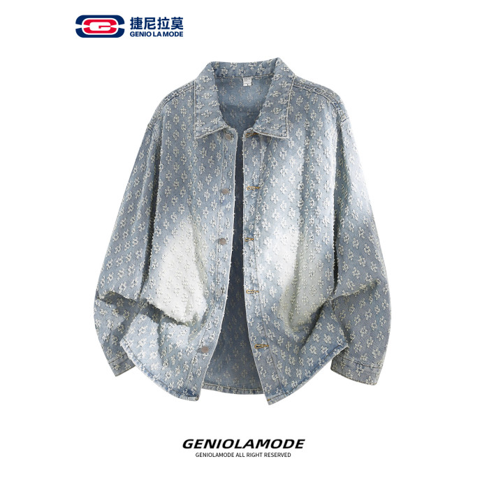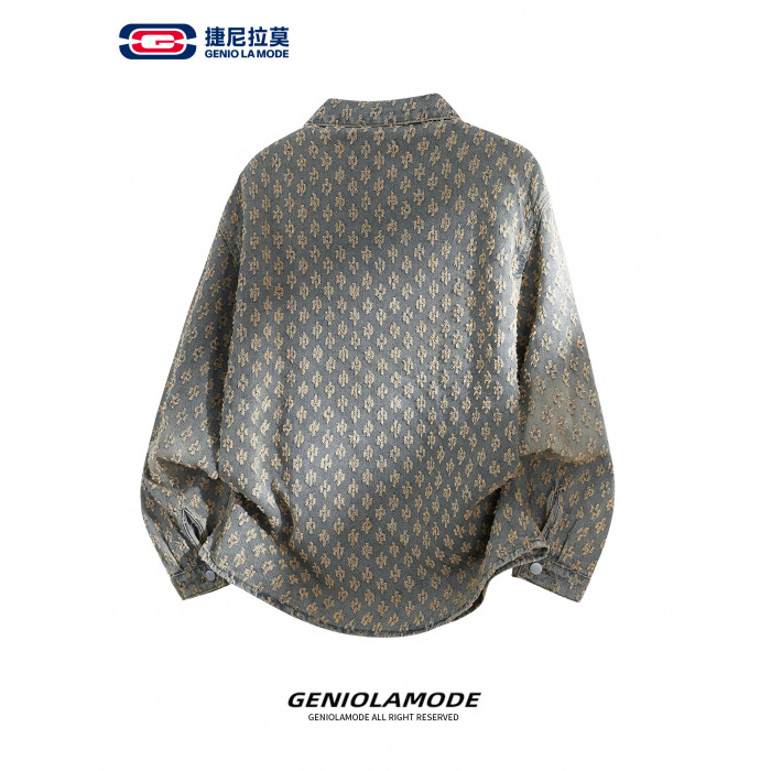 GENIOLAMODE美式提花牛仔襯衫男士秋季休閒寬鬆百搭潮牌外套上衣