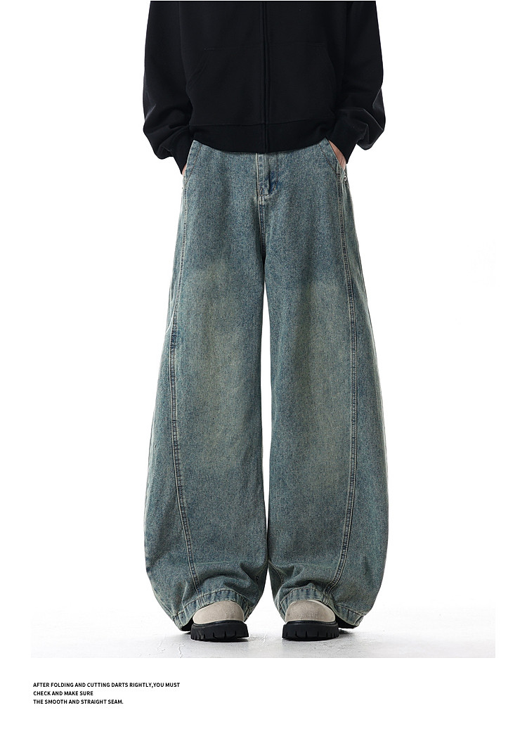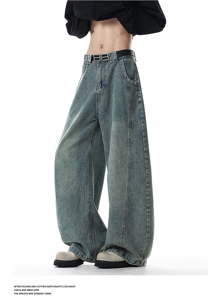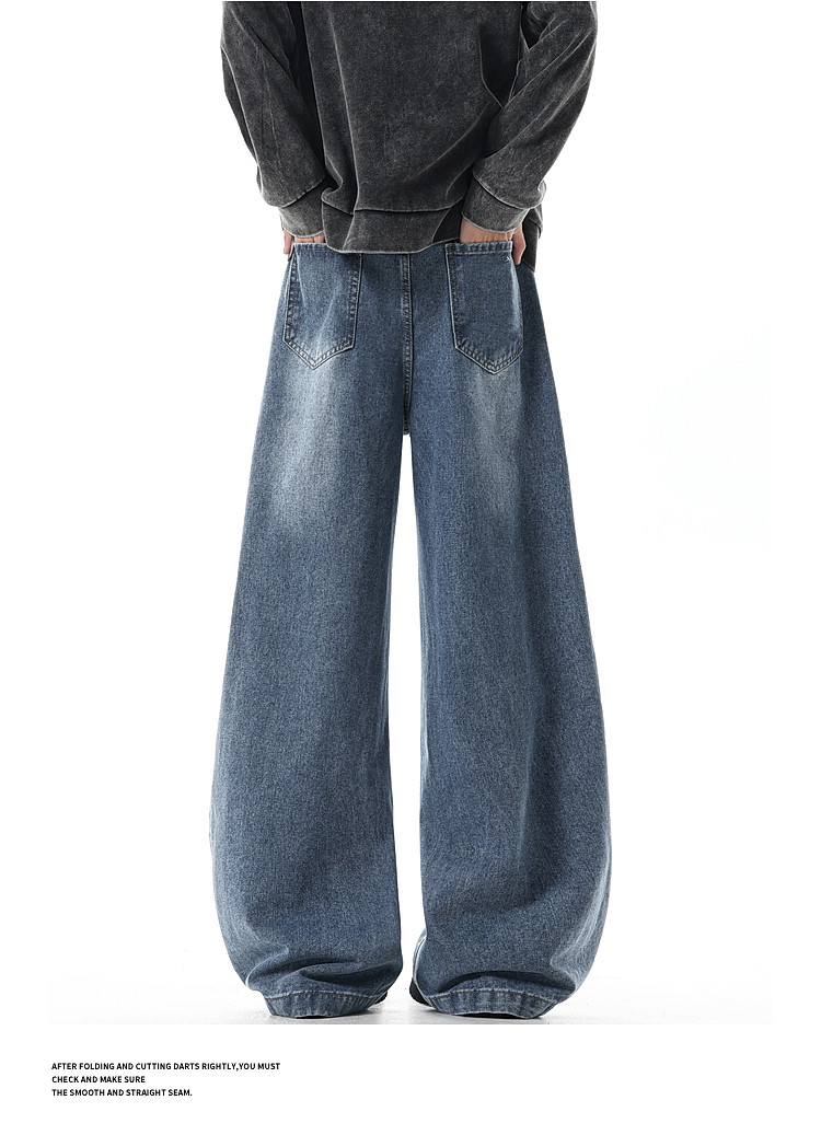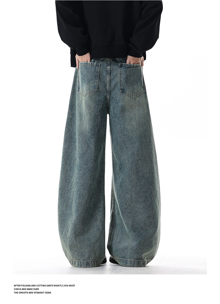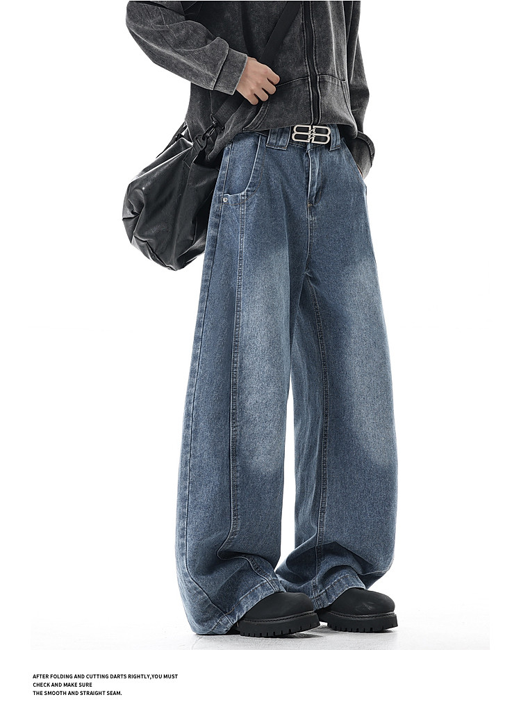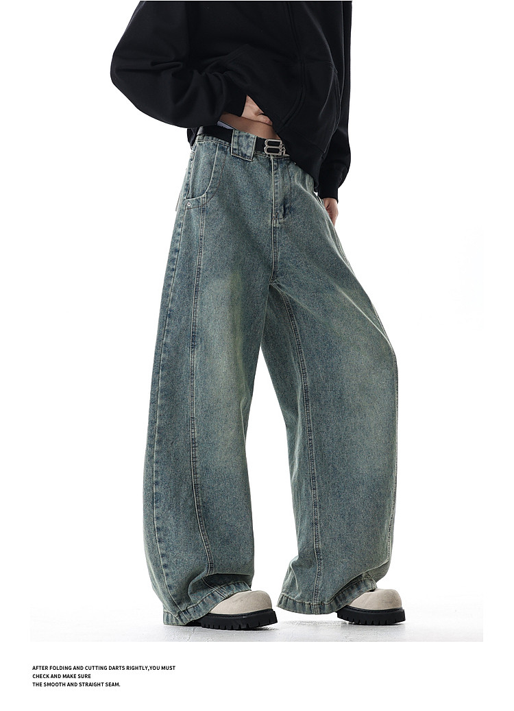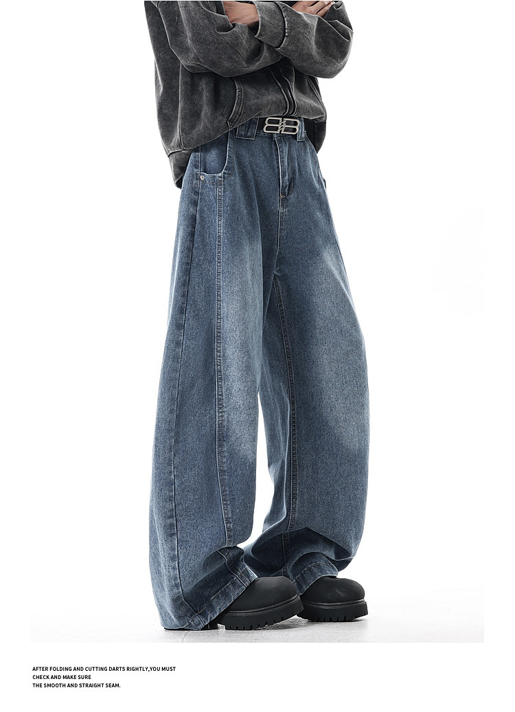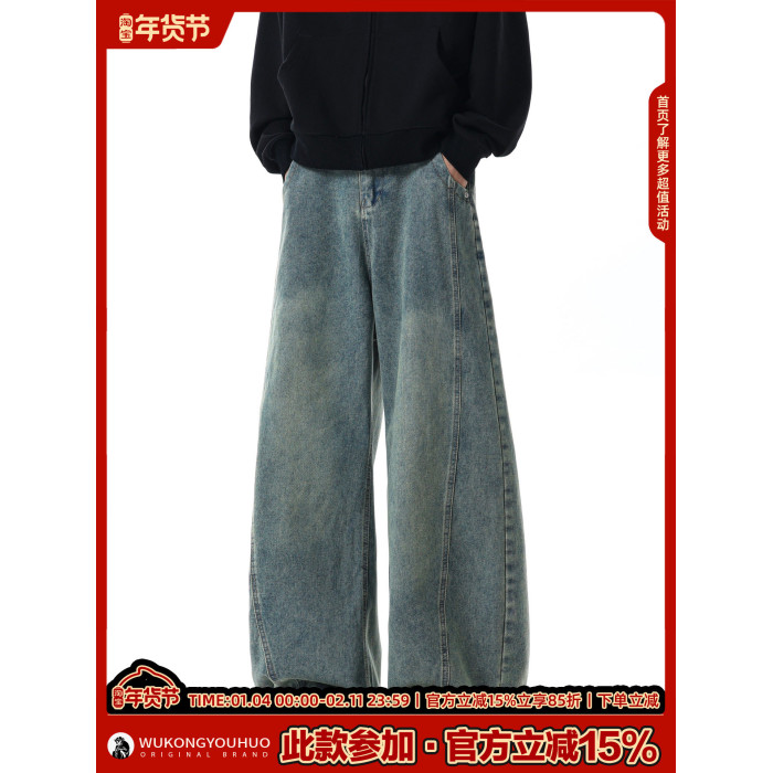 悟空有貨潮牌美式復古水洗做舊直筒牛仔褲男寬鬆潮流cleanfit長褲