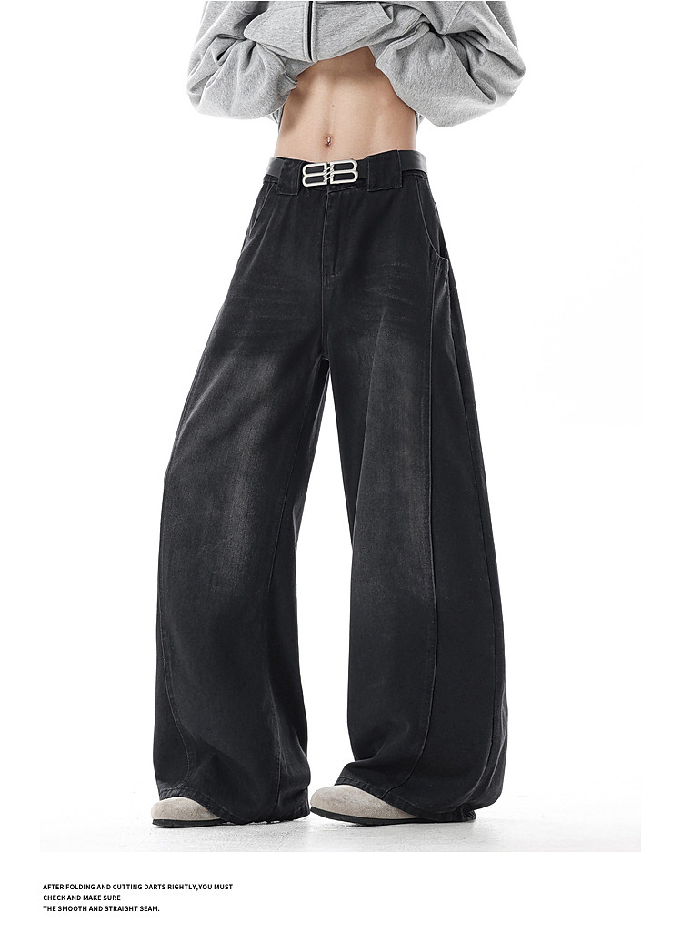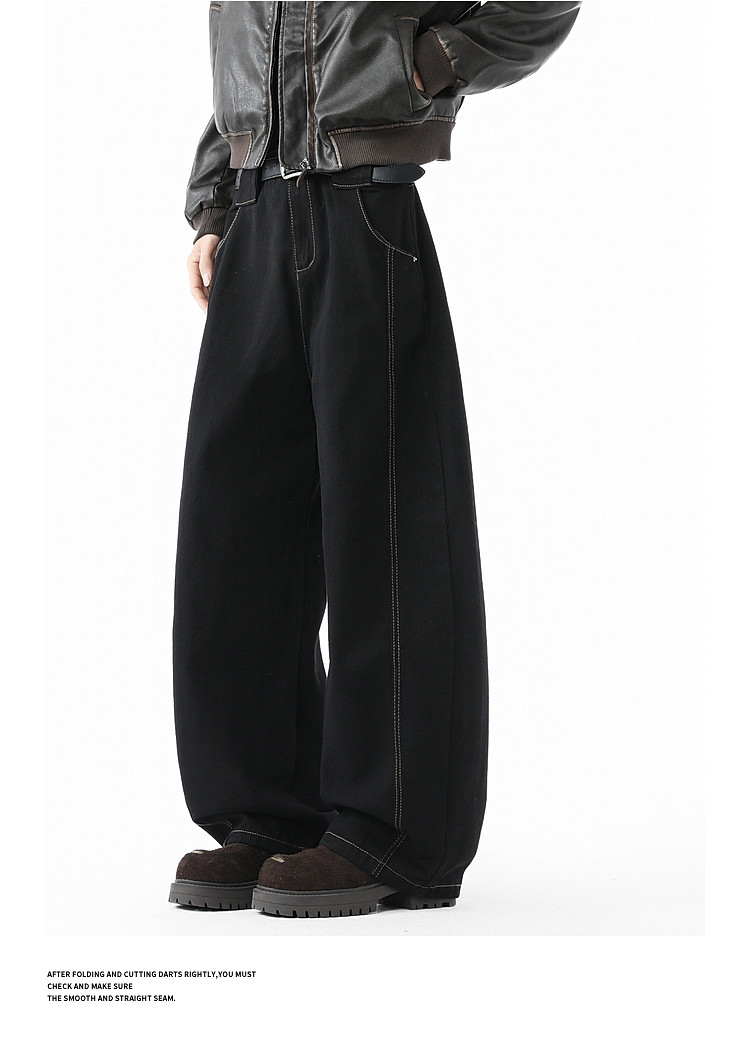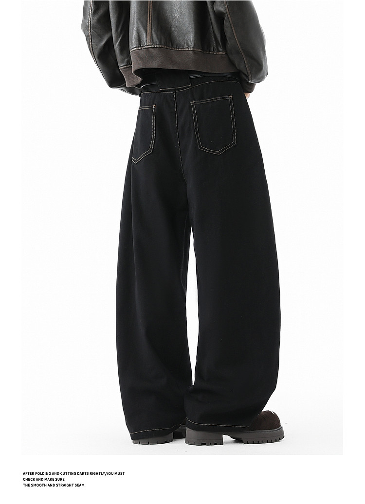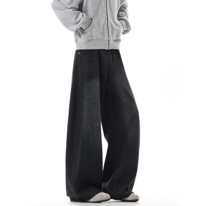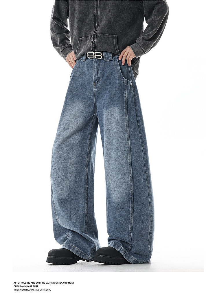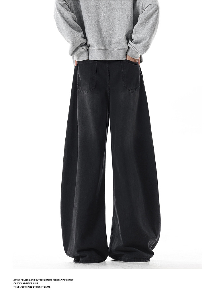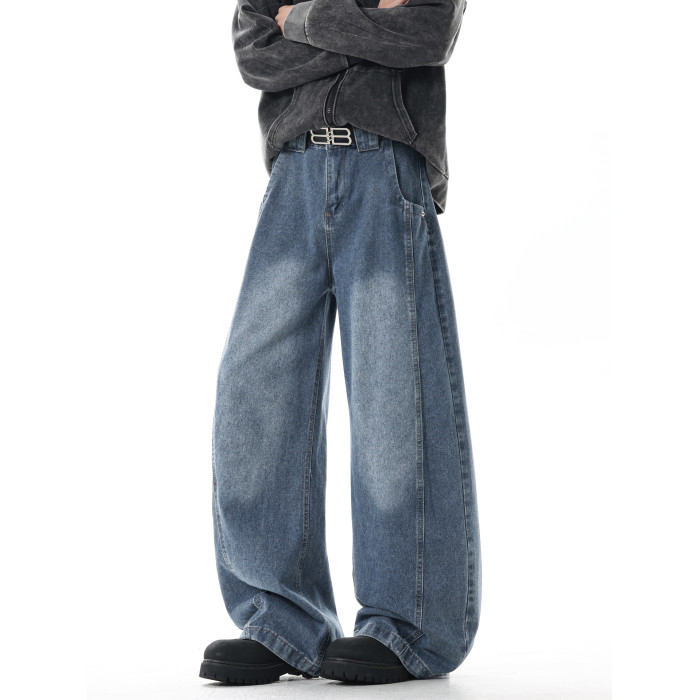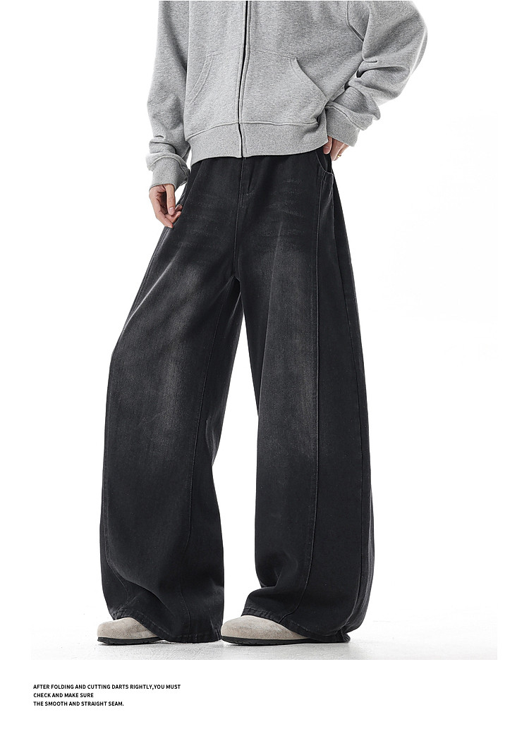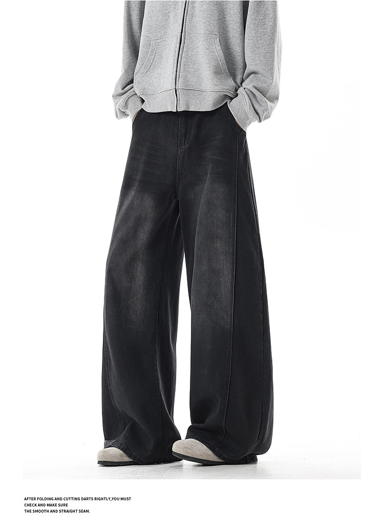 悟空有貨潮牌美式復古水洗做舊直筒牛仔褲男寬鬆潮流cleanfit長褲