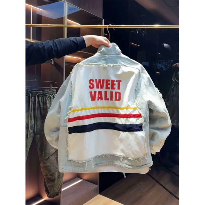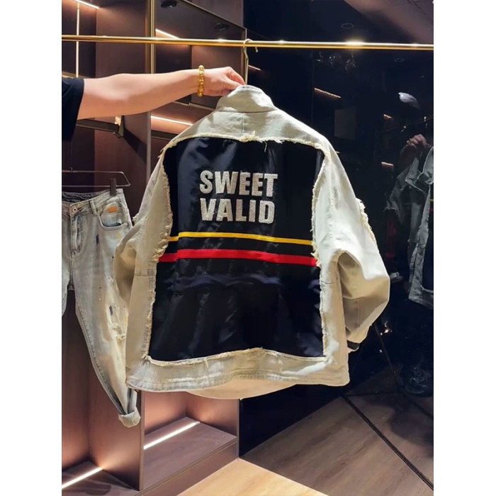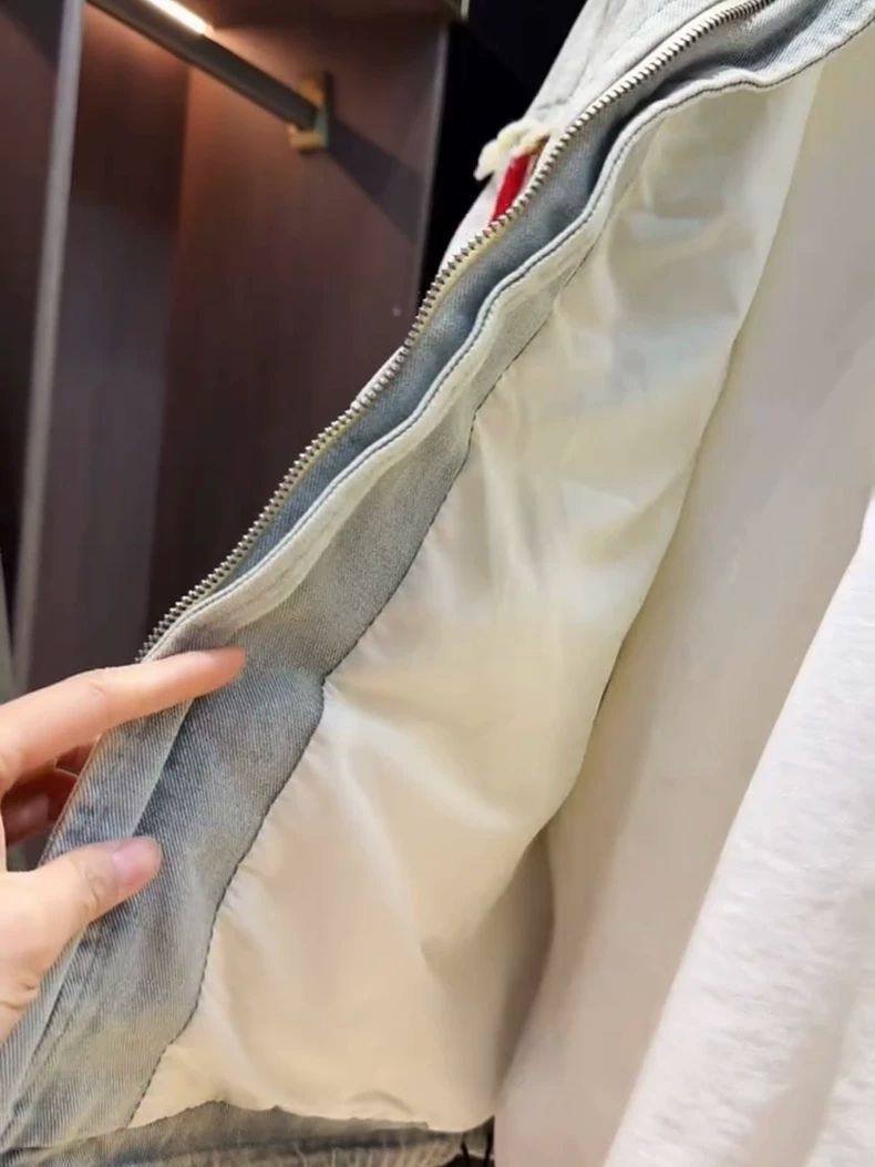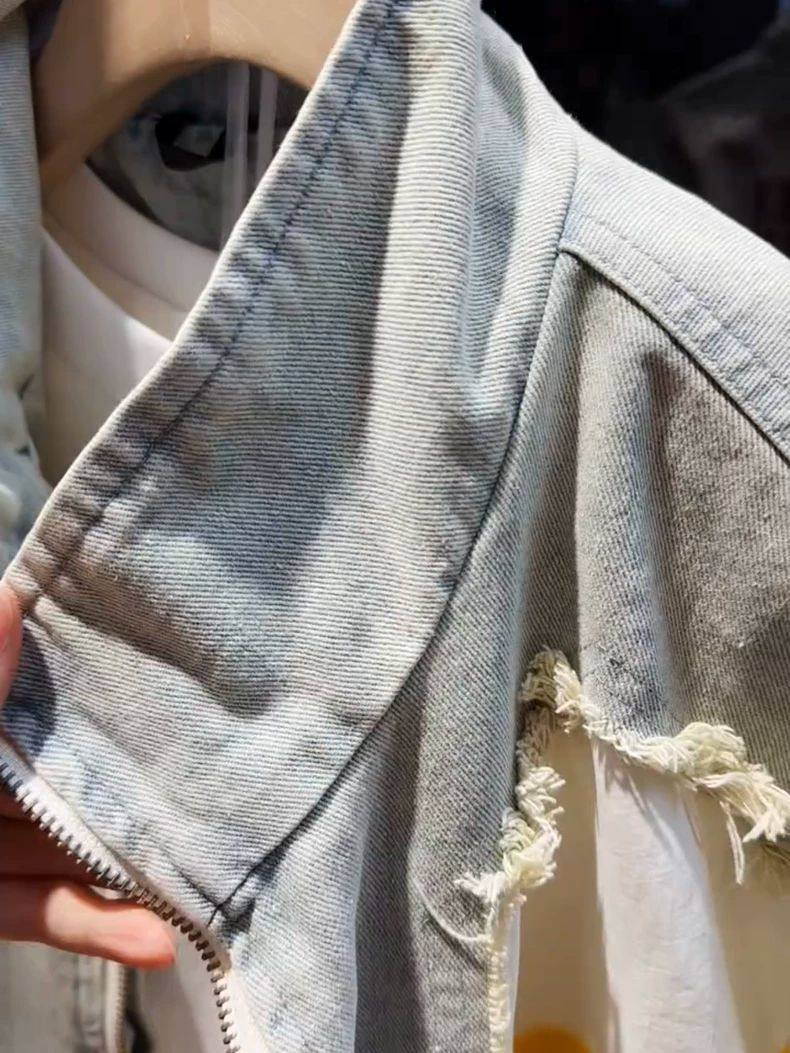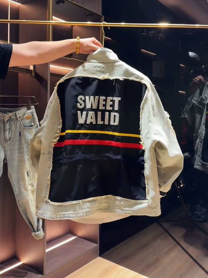 超大碼300斤美式潮牌時尚立領拼接牛仔外套男女早秋寬鬆休閒夾克2