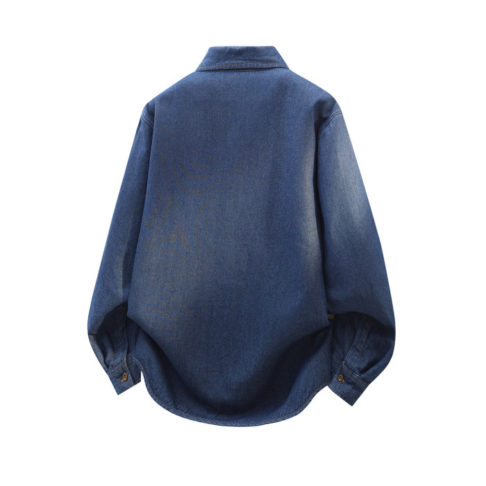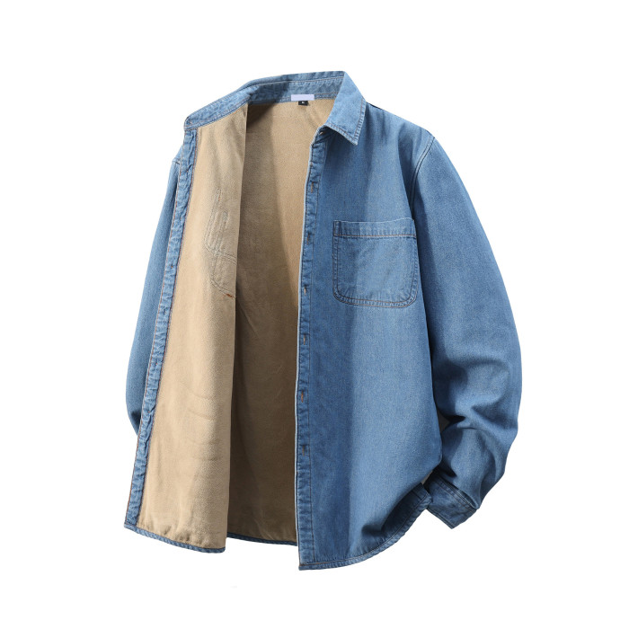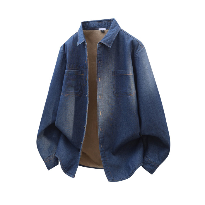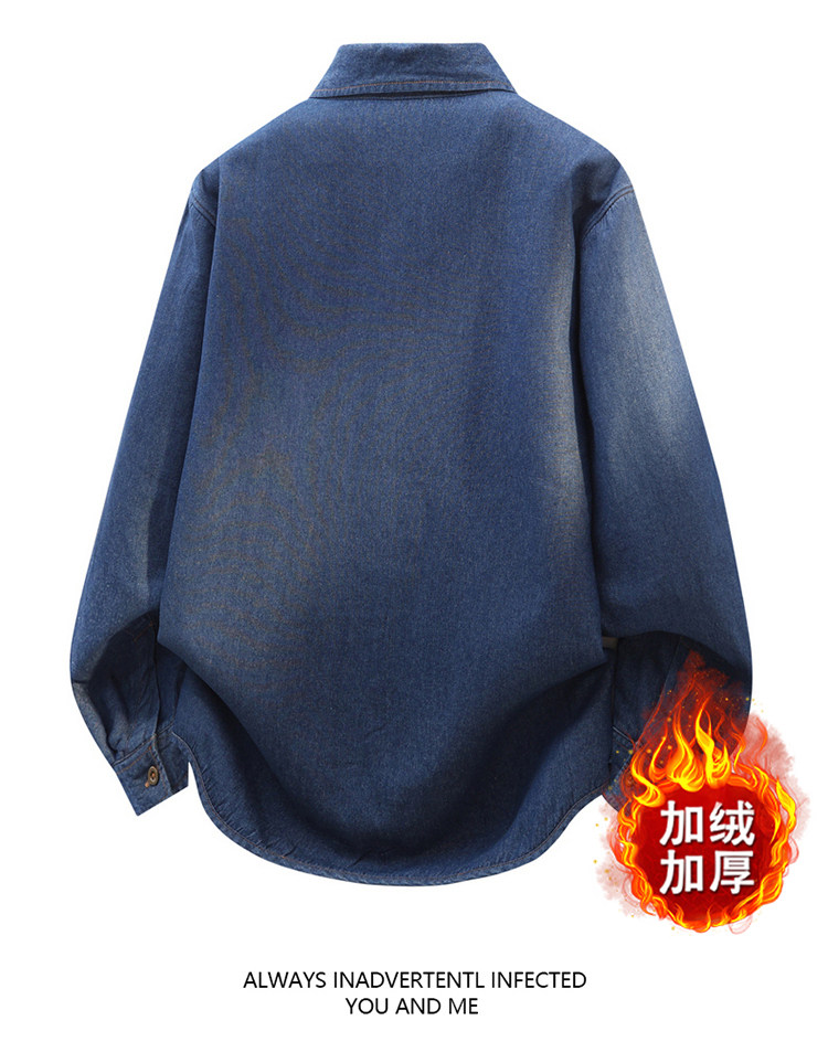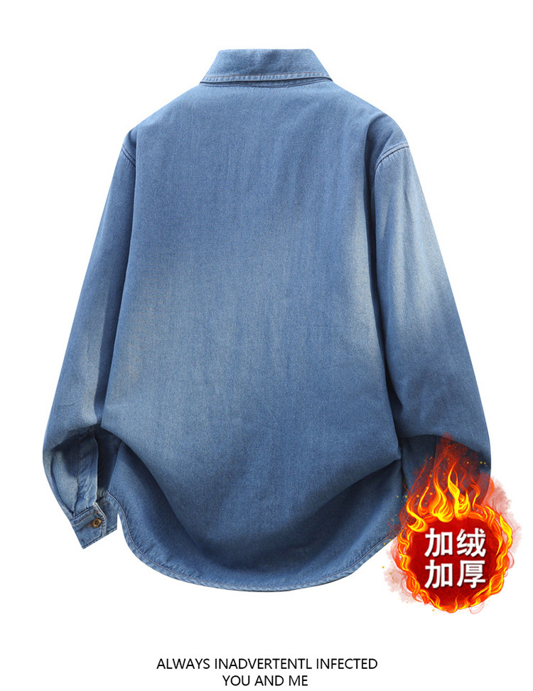 羅矇加厚保暖牛仔襯衫男式2025超火加絨襯衫美式復古寬鬆休閒寸衣