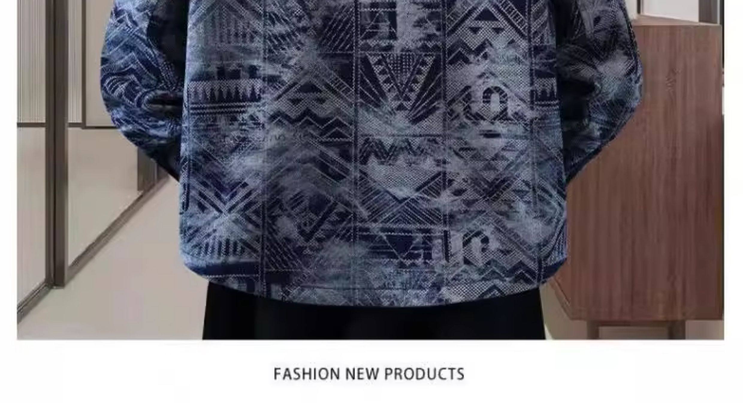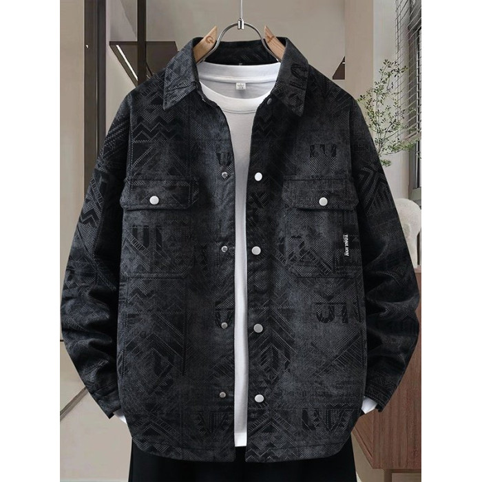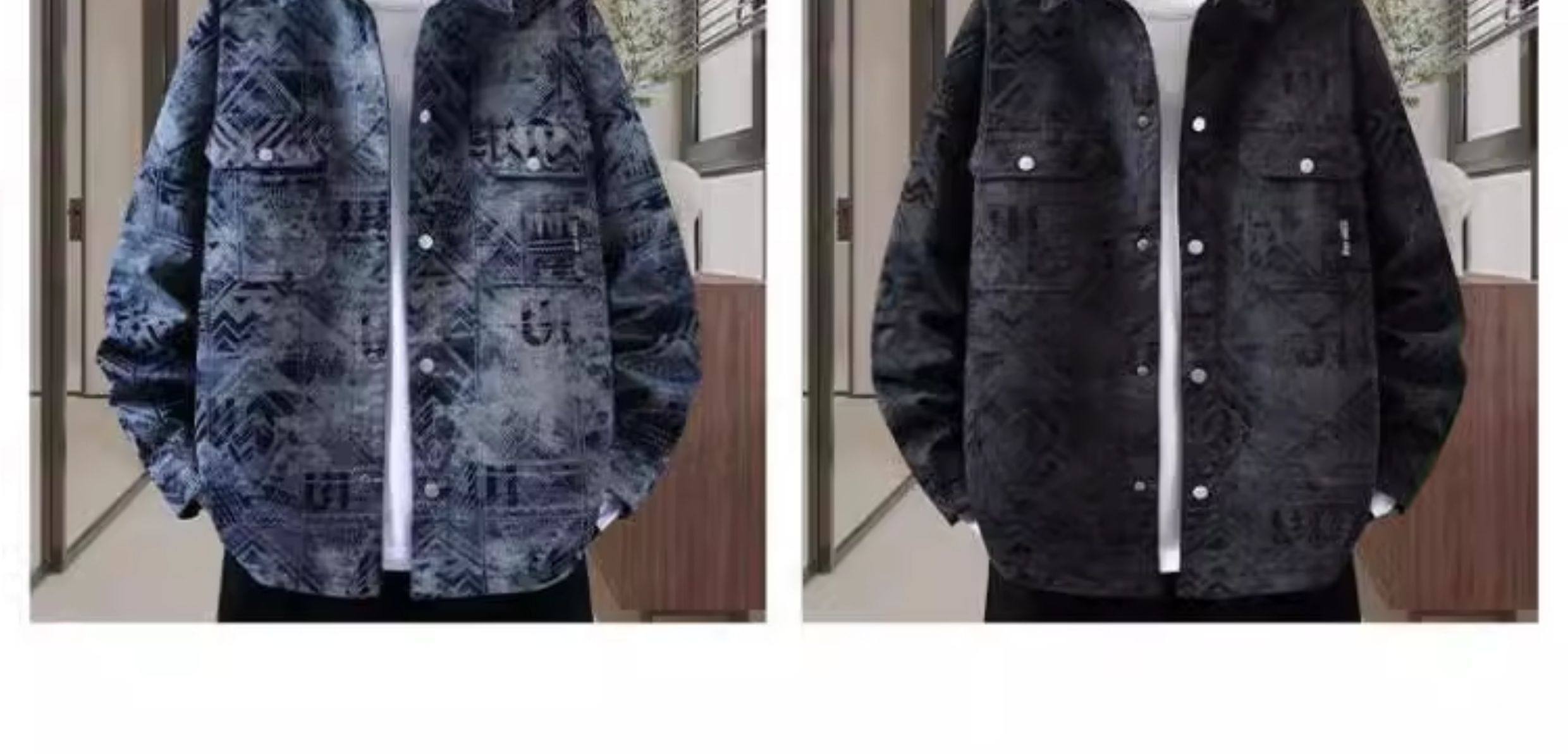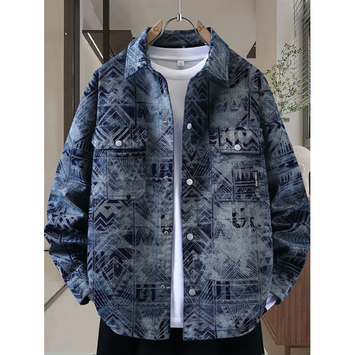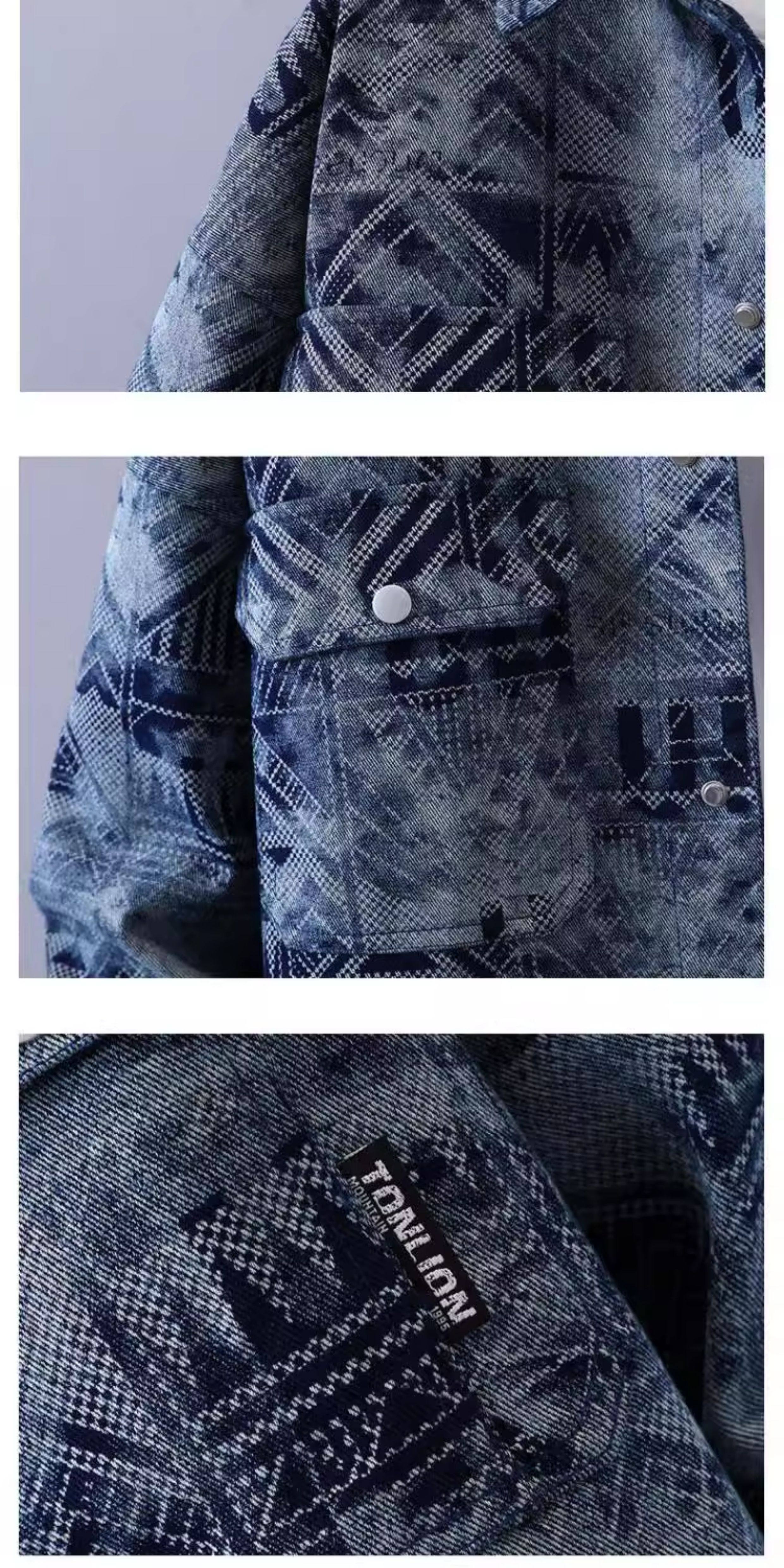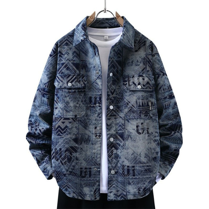牛仔外套男襯衫式印花設計感繙領夾克2025秋季新款美式復古上衣服