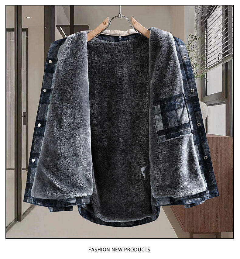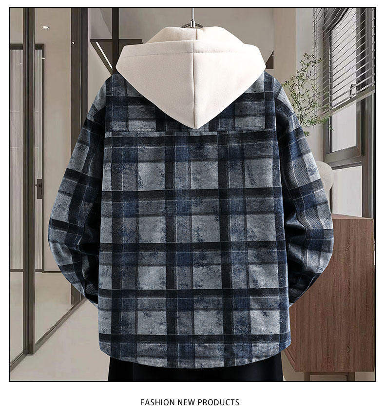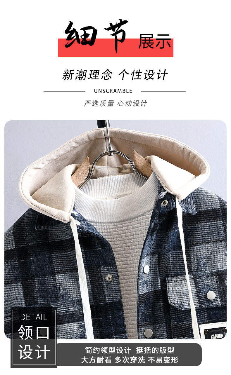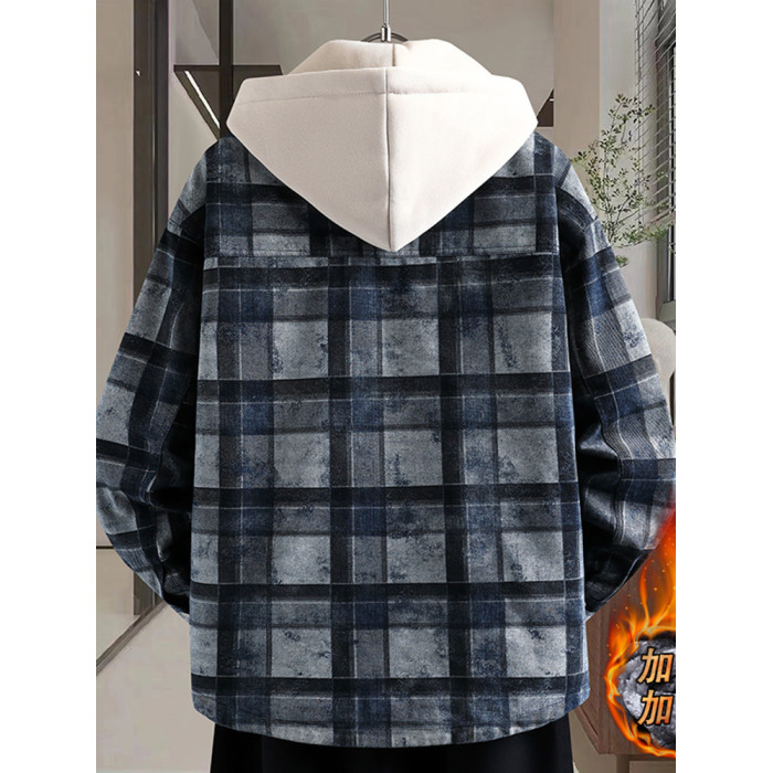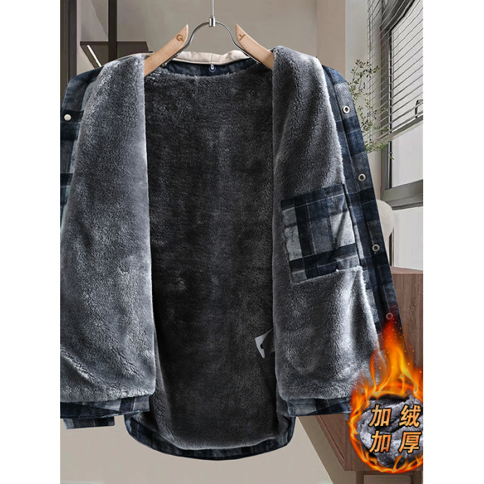 加絨加厚牛仔外套男可脫卸連帽保暖夾克2025冬季格子刺綉復古棉服