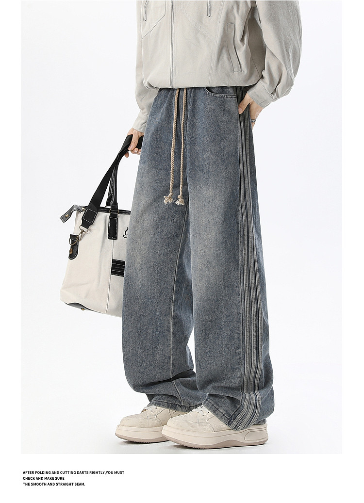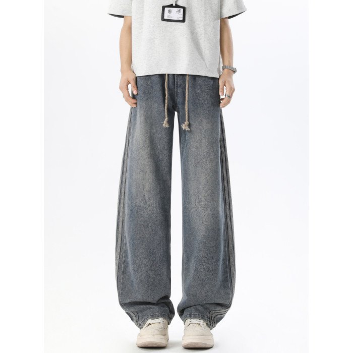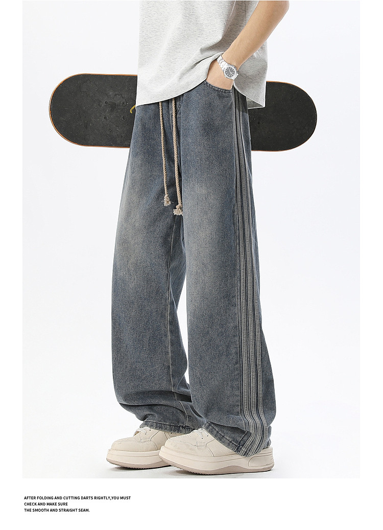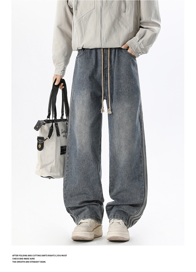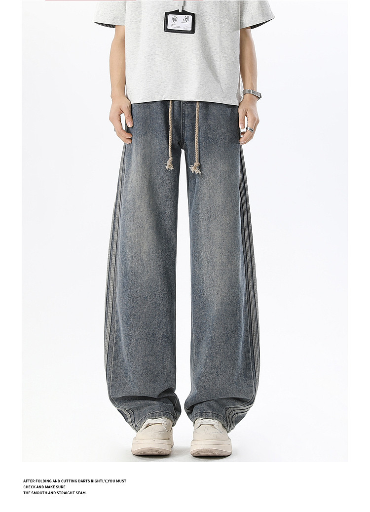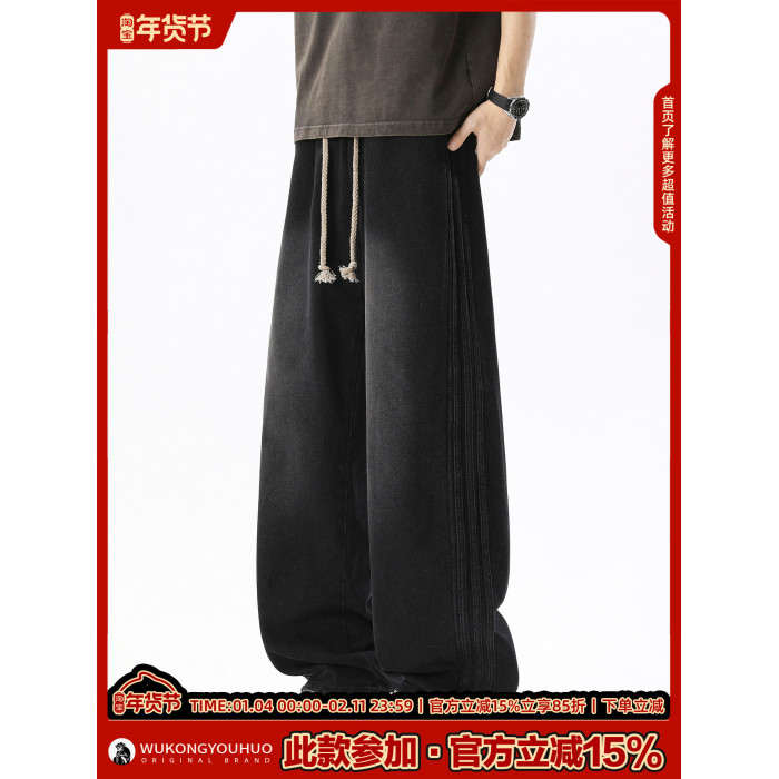 悟空有貨潮牌美式復古做舊直筒牛仔褲男寬鬆潮流百搭濶腿休閒長褲
