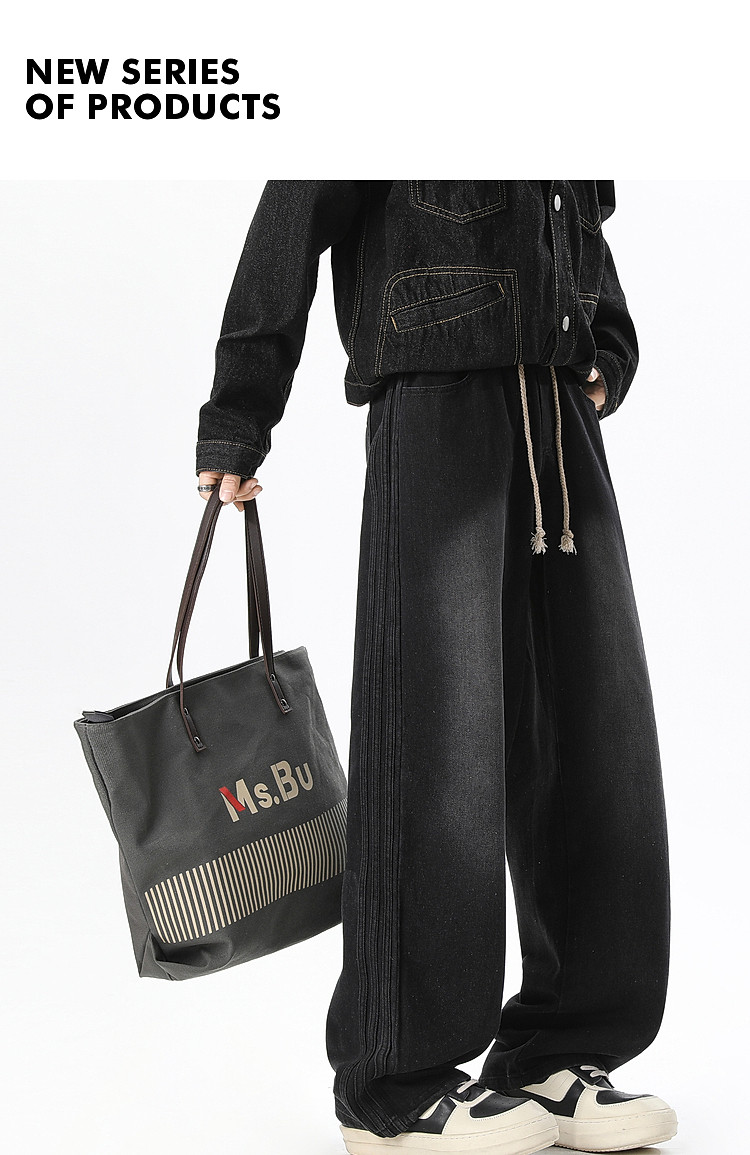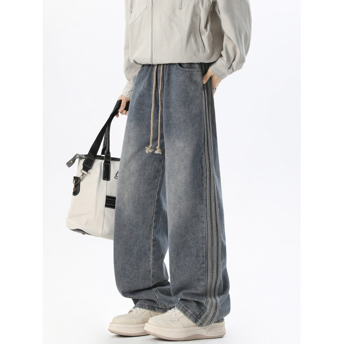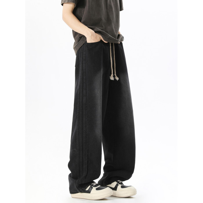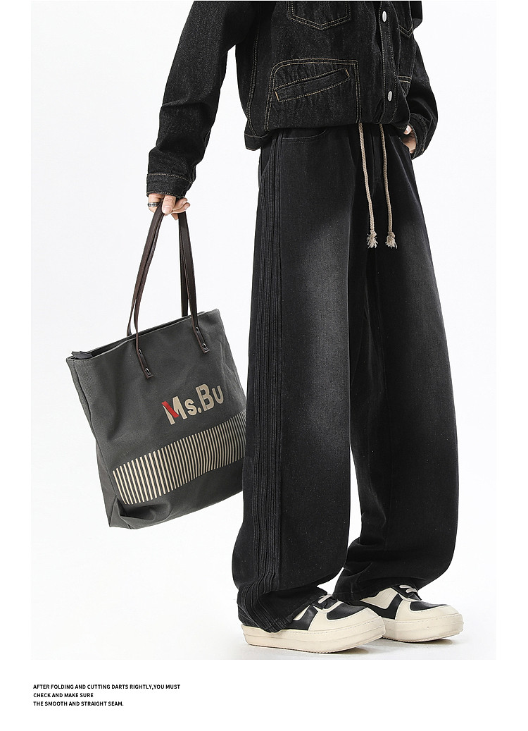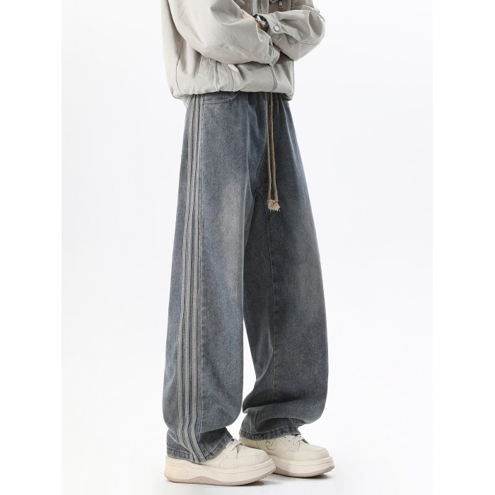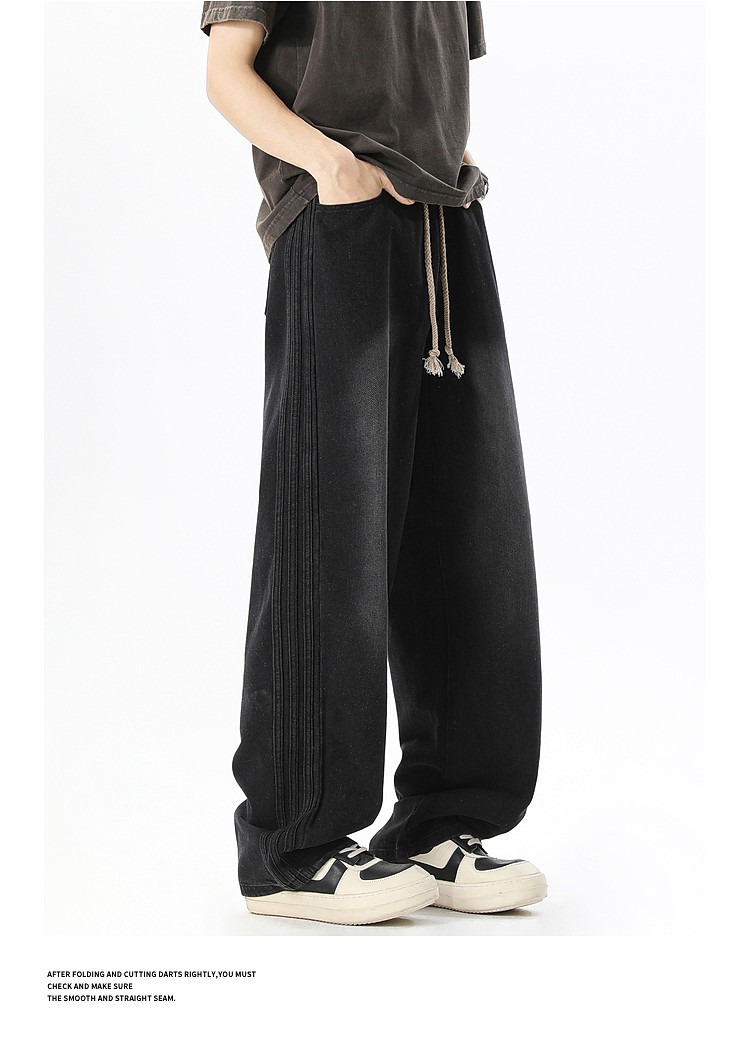 悟空有貨潮牌美式復古做舊直筒牛仔褲男寬鬆潮流百搭濶腿休閒長褲