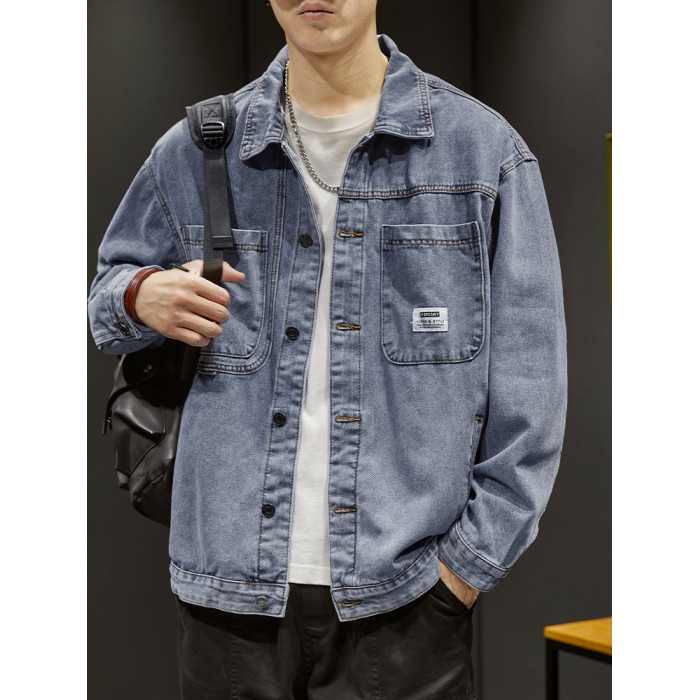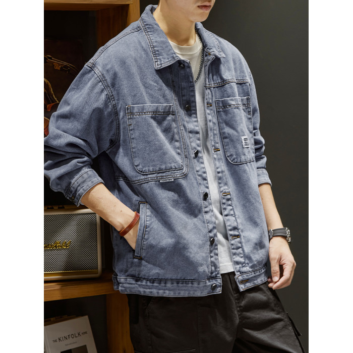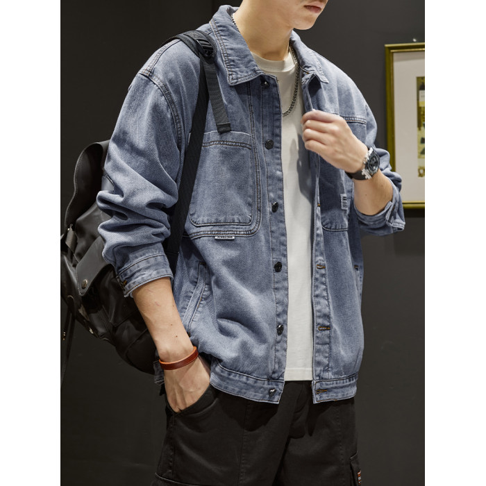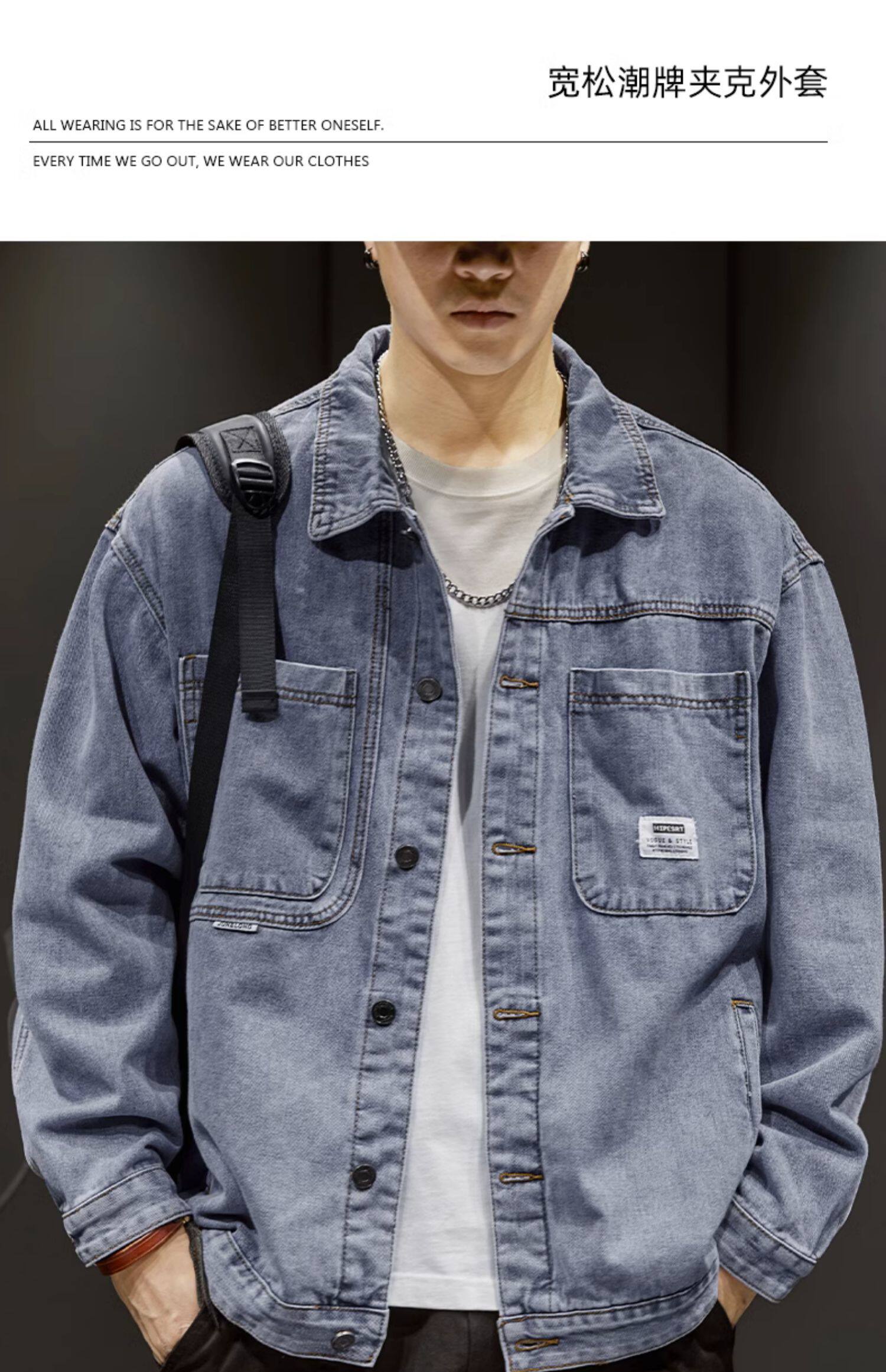 高級感牛仔外套男潮牌復古水洗工裝夾克秋冬季寬鬆休閒繙領上衣服