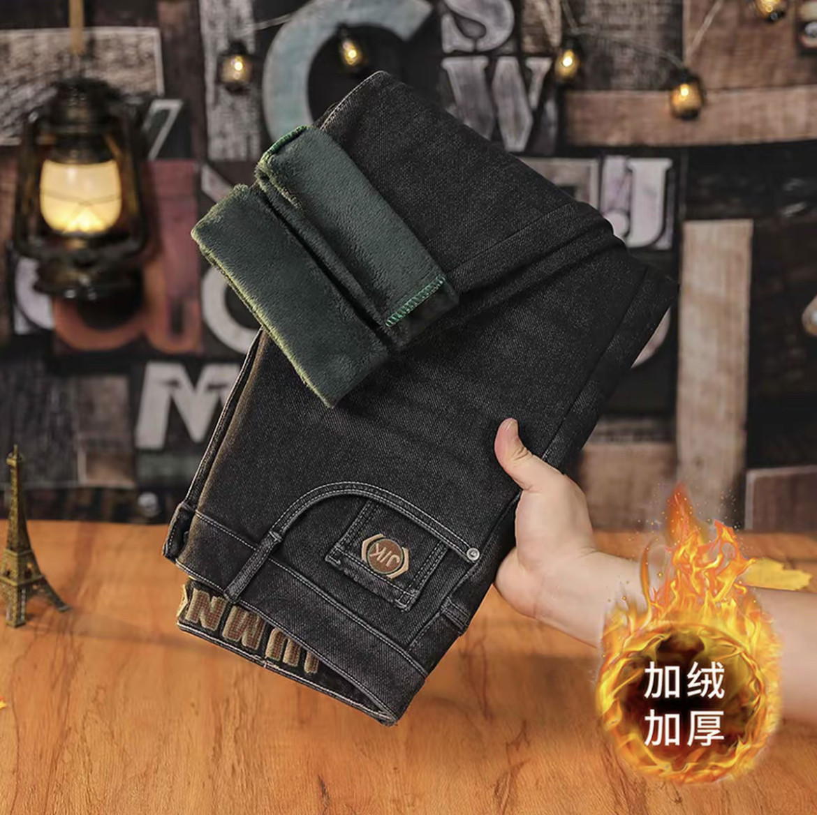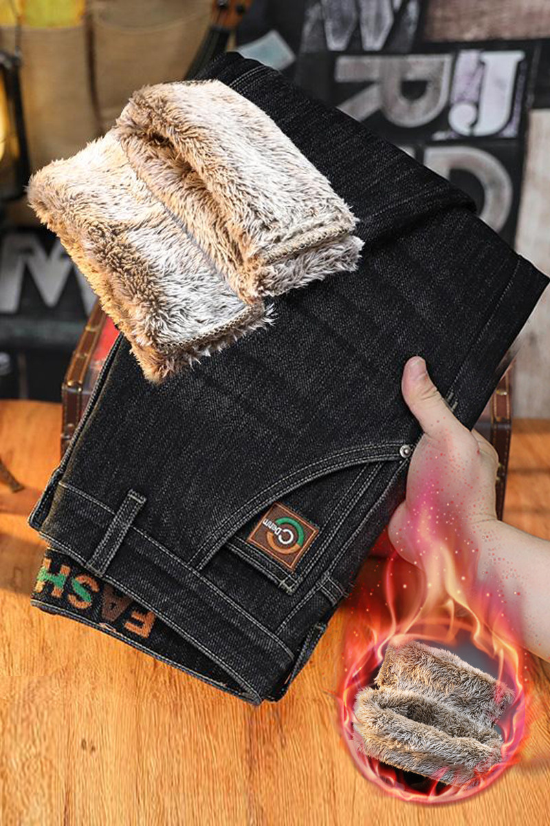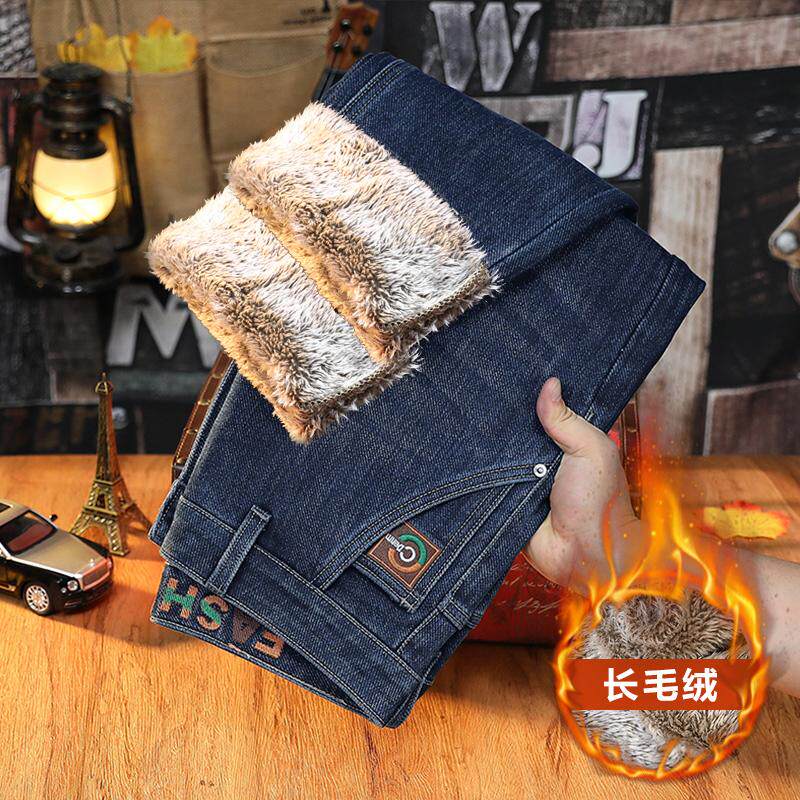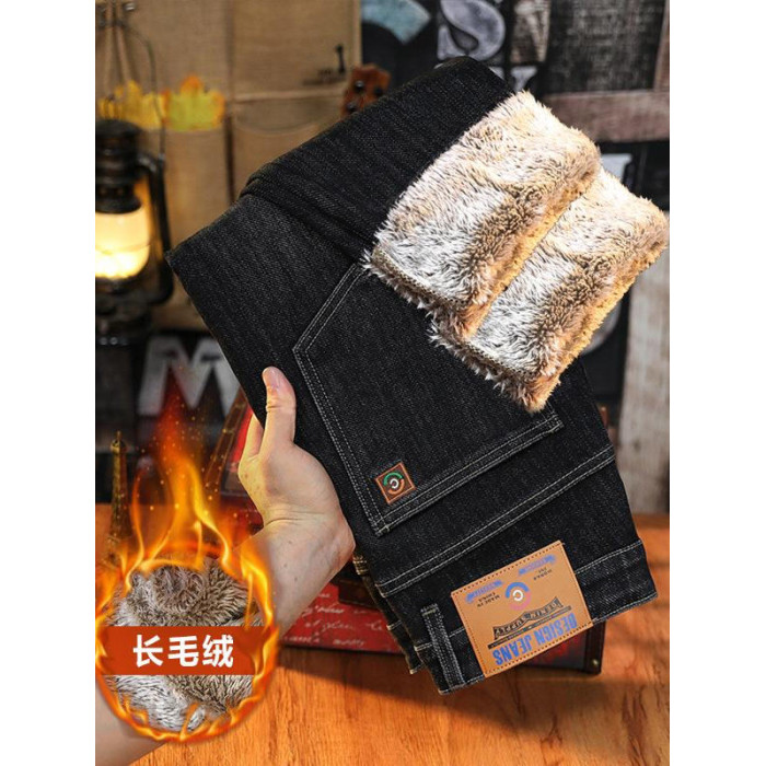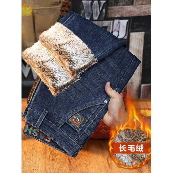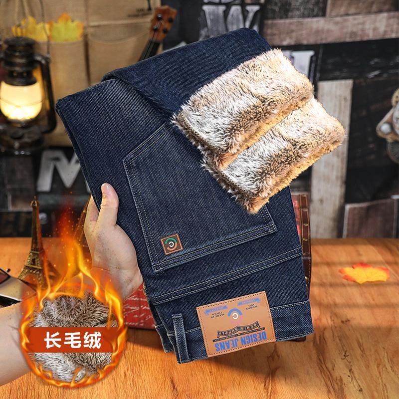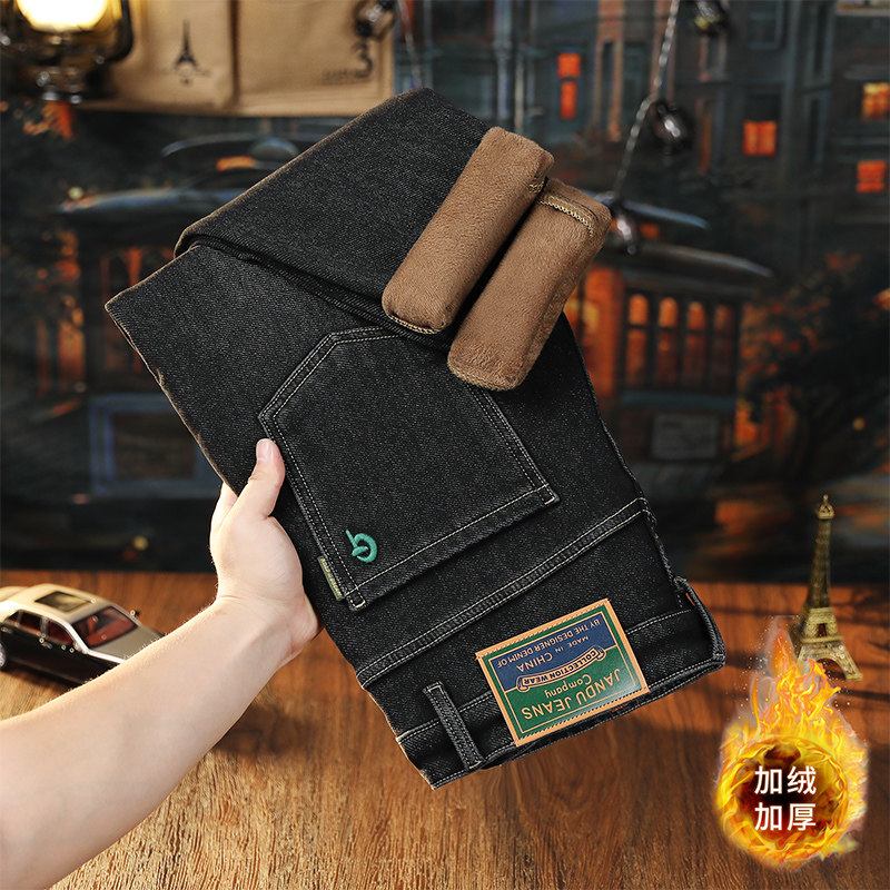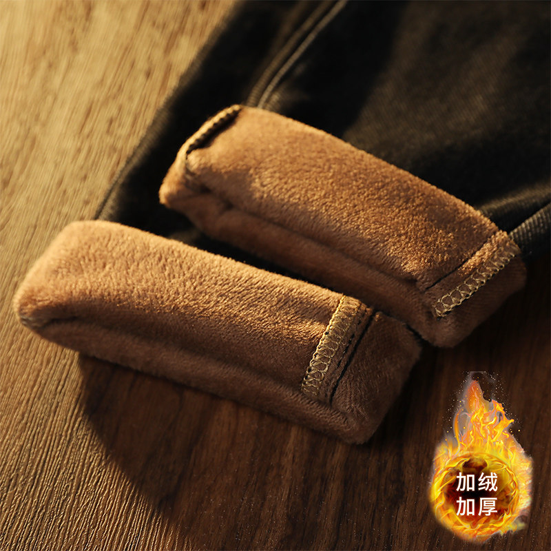 加絨加厚牛仔褲男士2025冬季保暖厚絨長褲彈力舒適歐版小直筒男褲