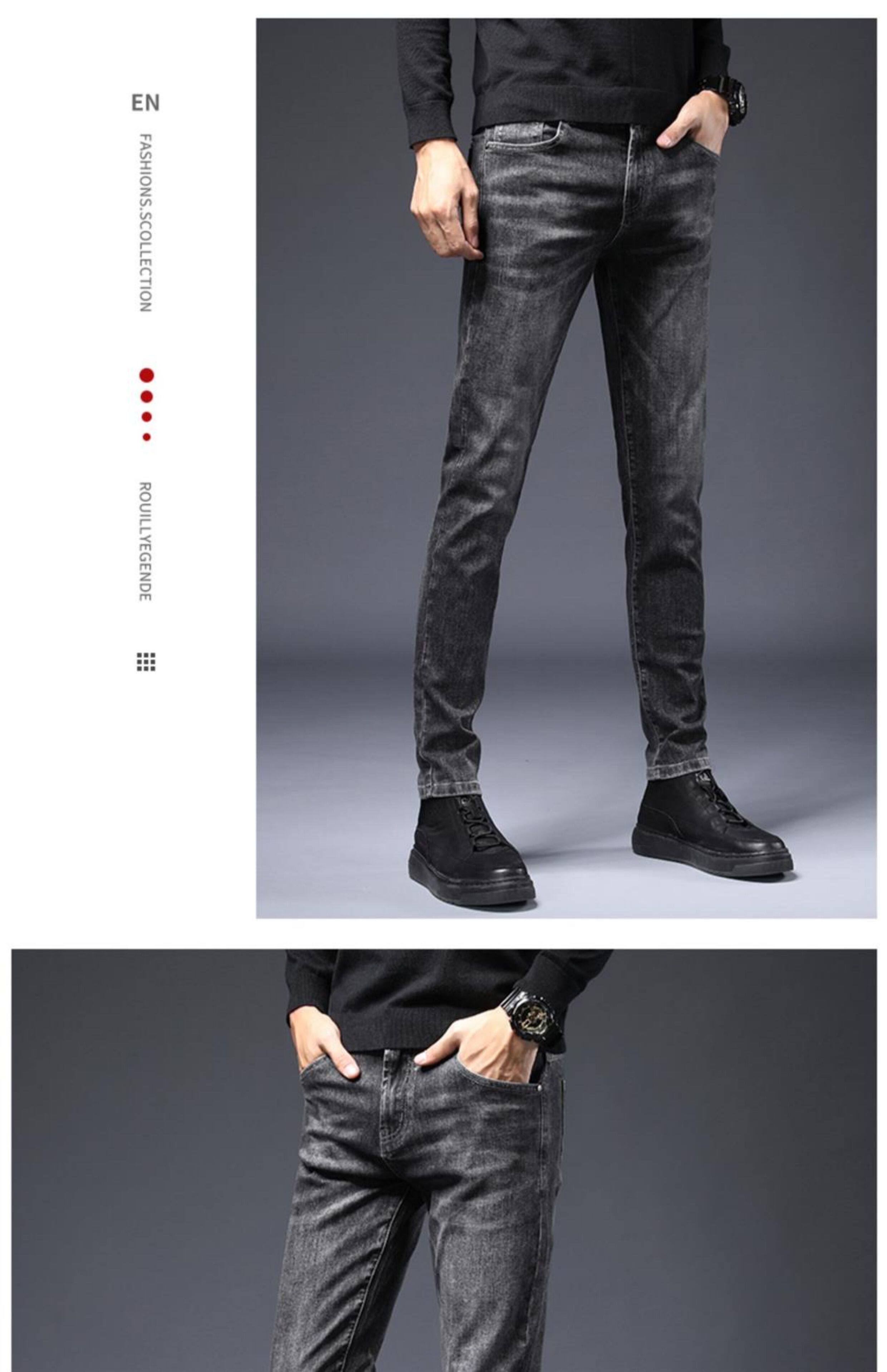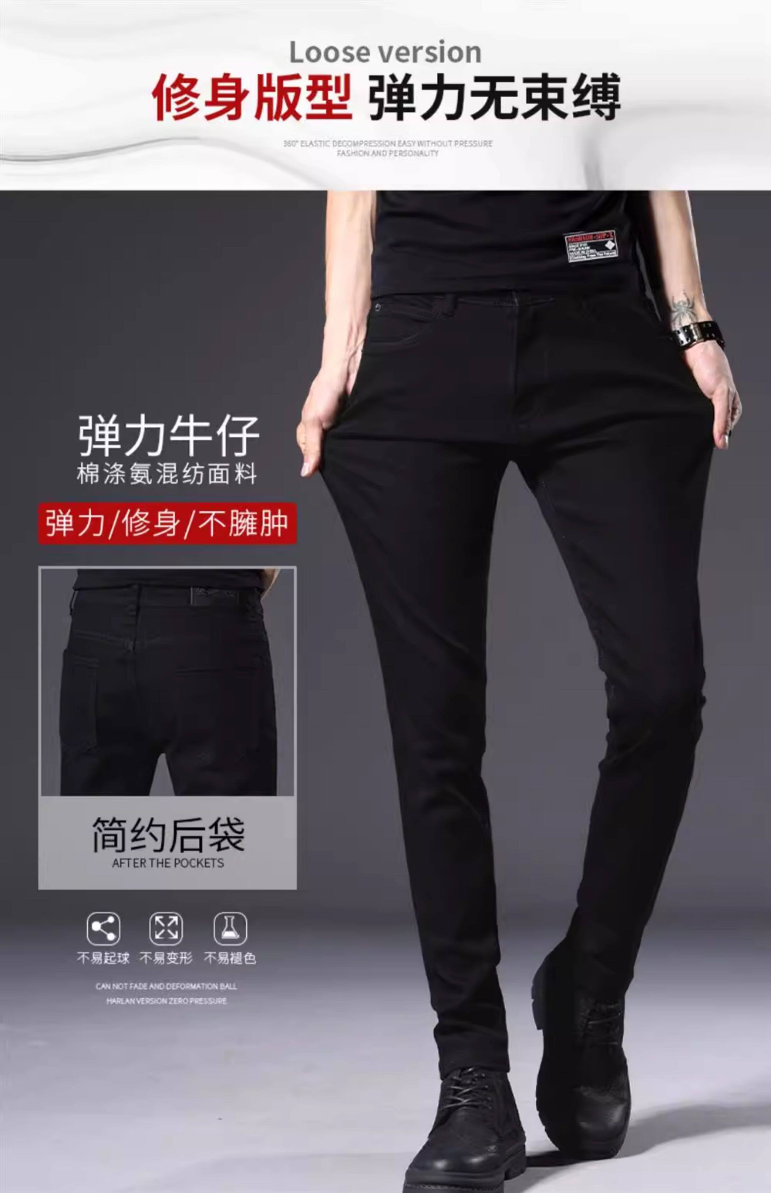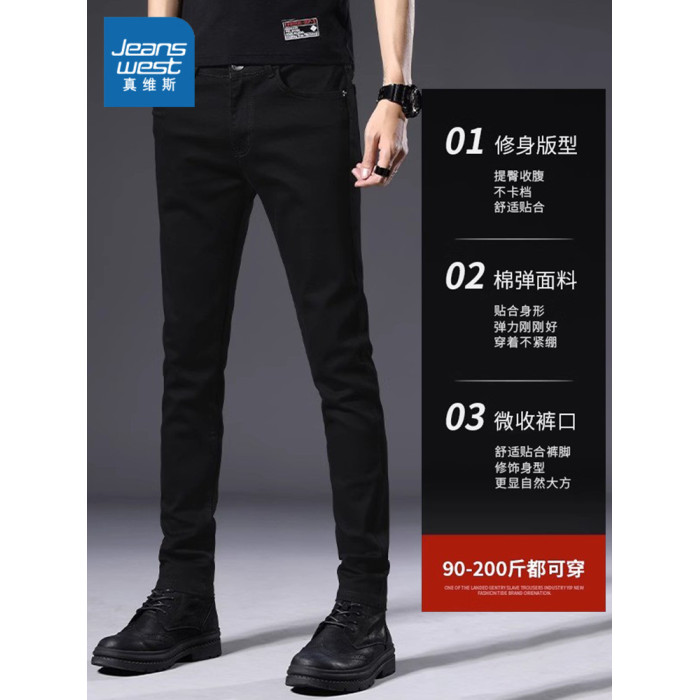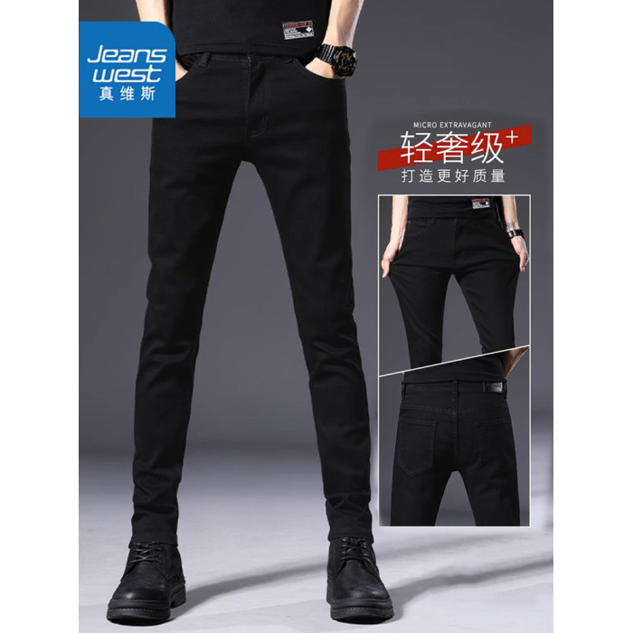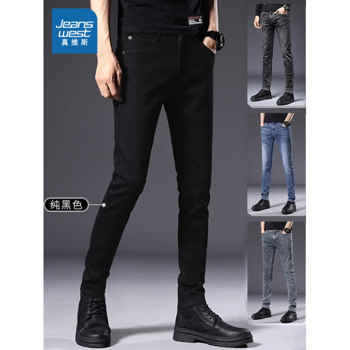 真維斯純黑色修身小腳牛仔褲男士2025秋冬新款新塘鎮休閒加絨褲子