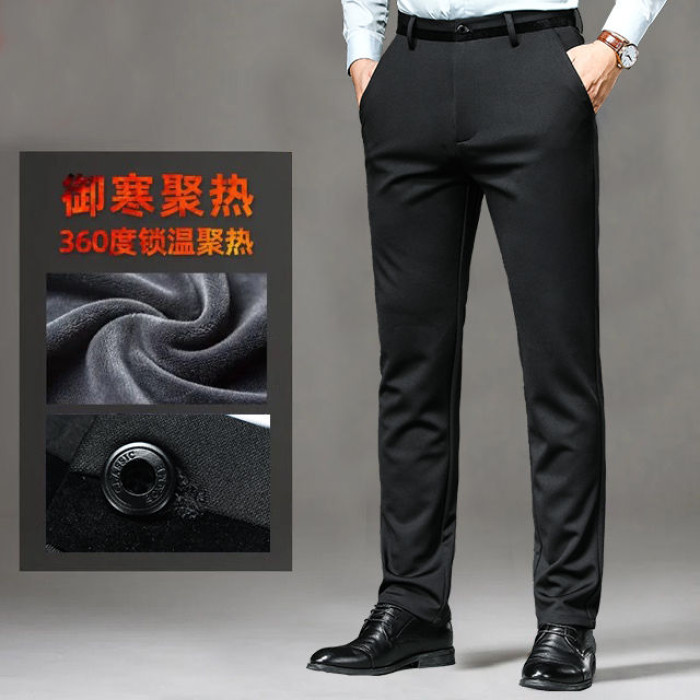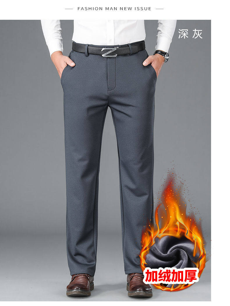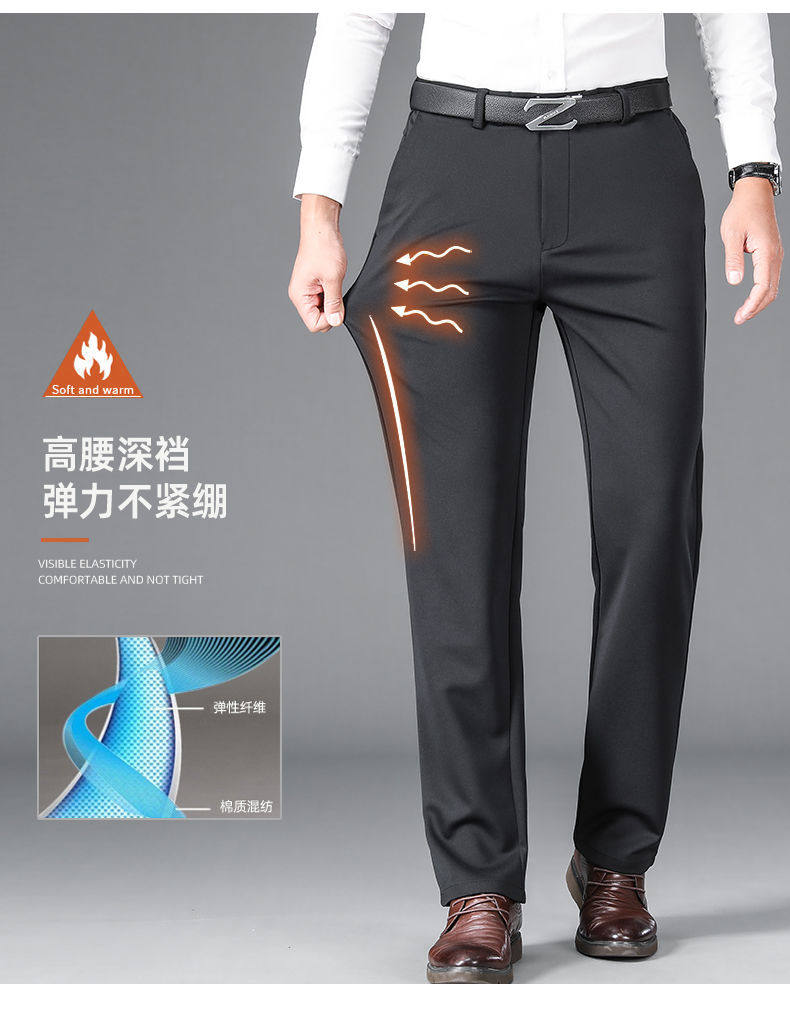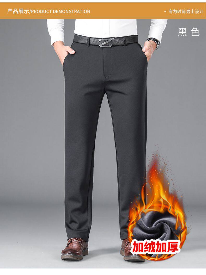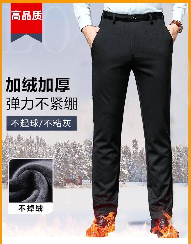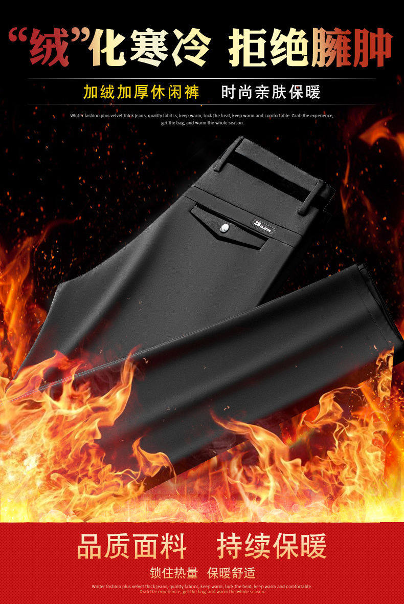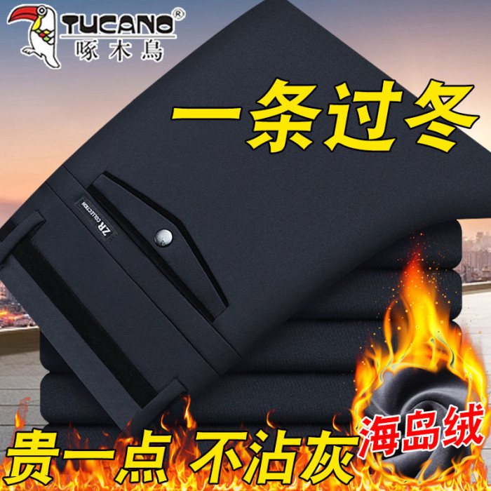 啄木鳥秋冬季加絨加厚休閒褲彈力直筒寬鬆運動衛褲免燙爸爸長褲男