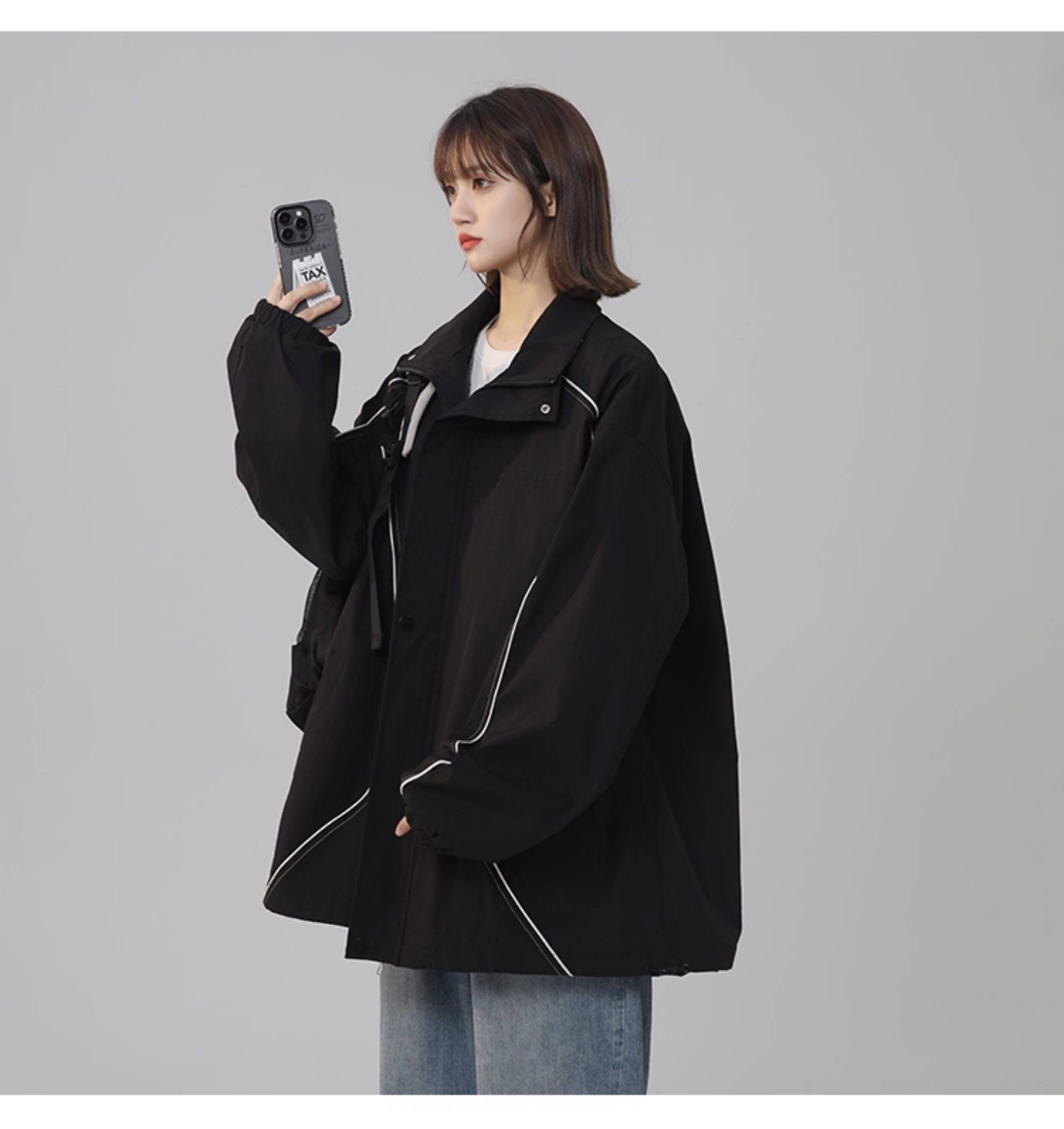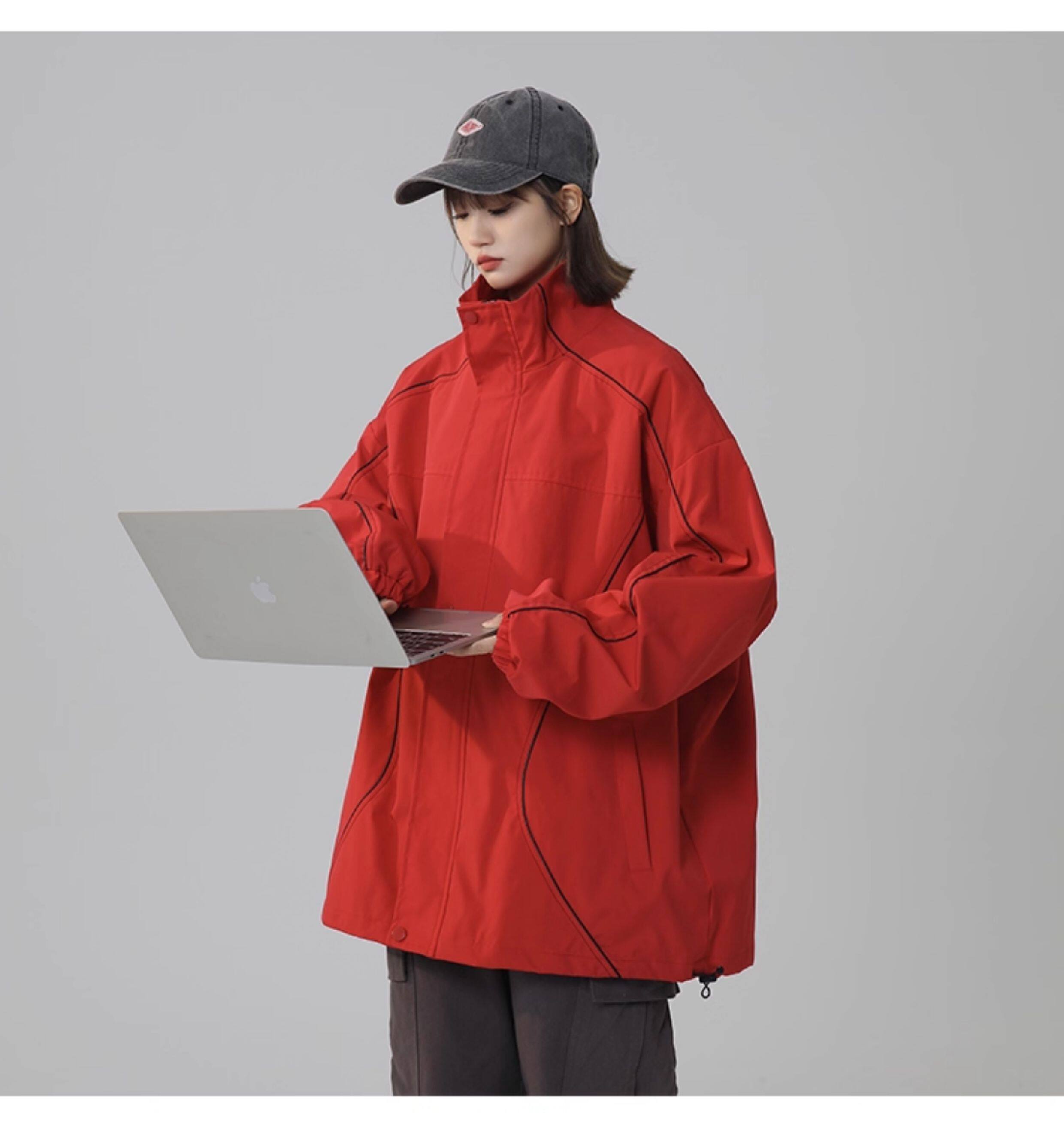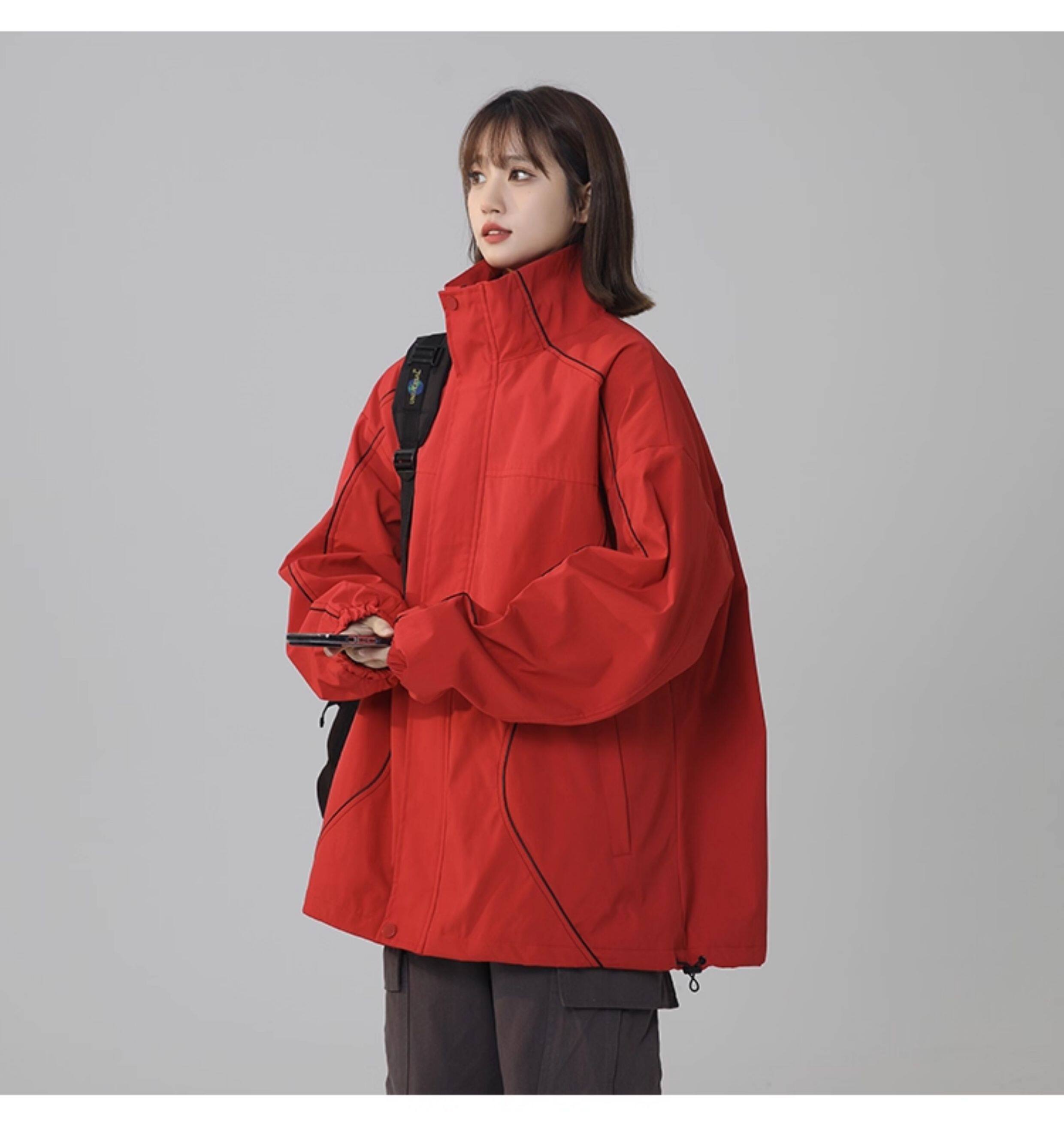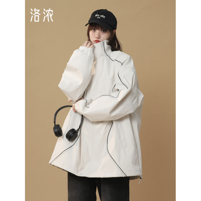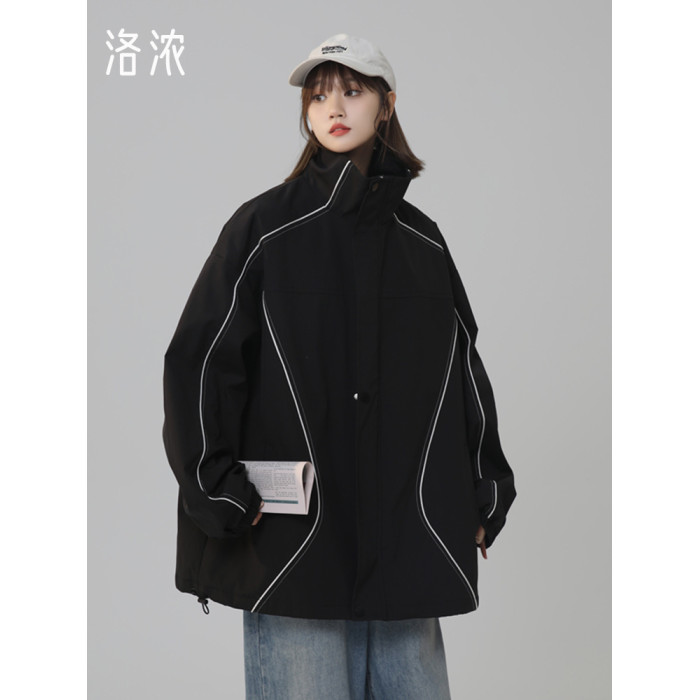 洛濃無性別秋季沖鋒夾克外套男女寬鬆大碼戶外防潑水立領青少年潮