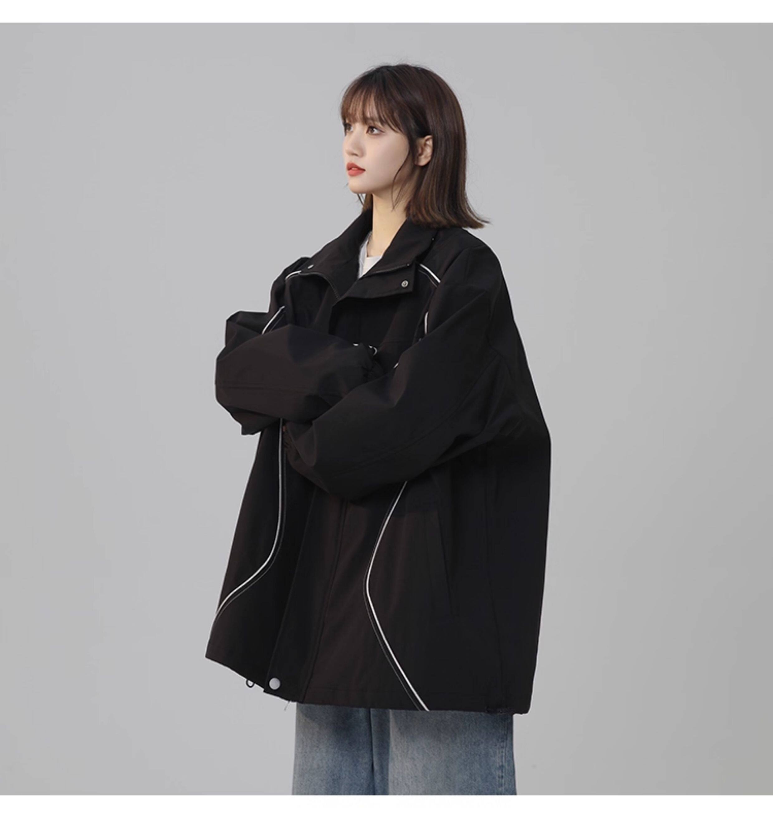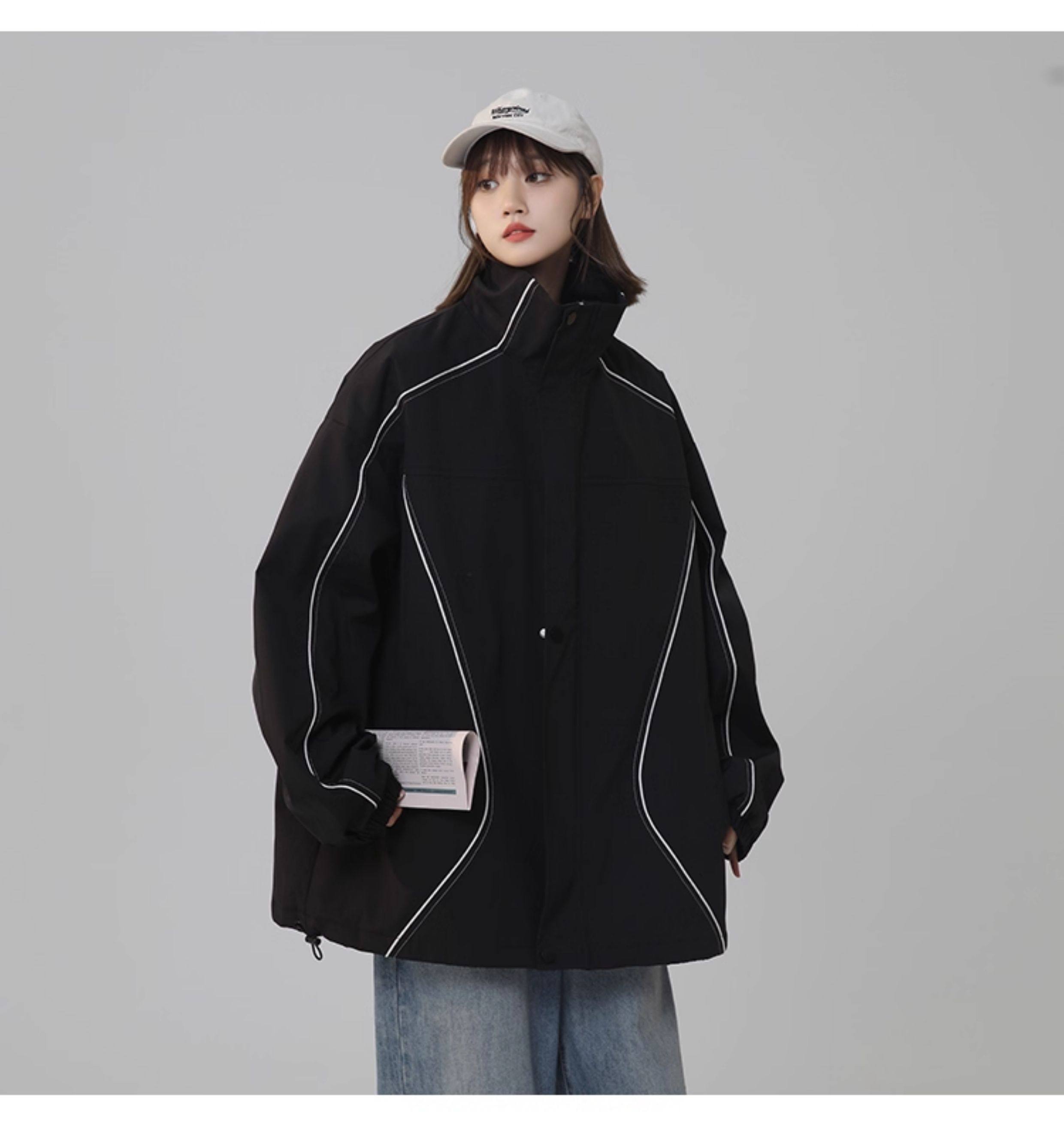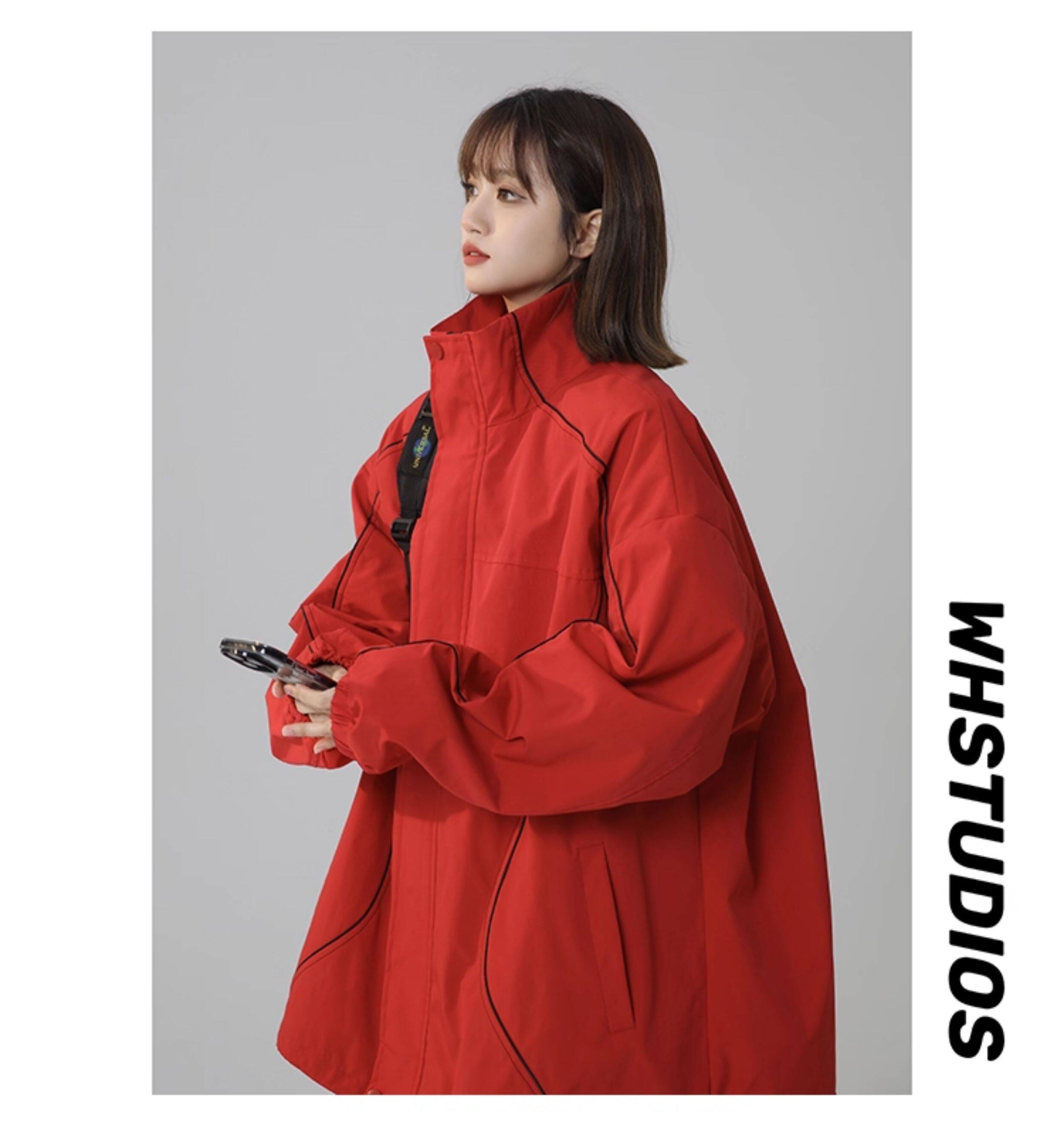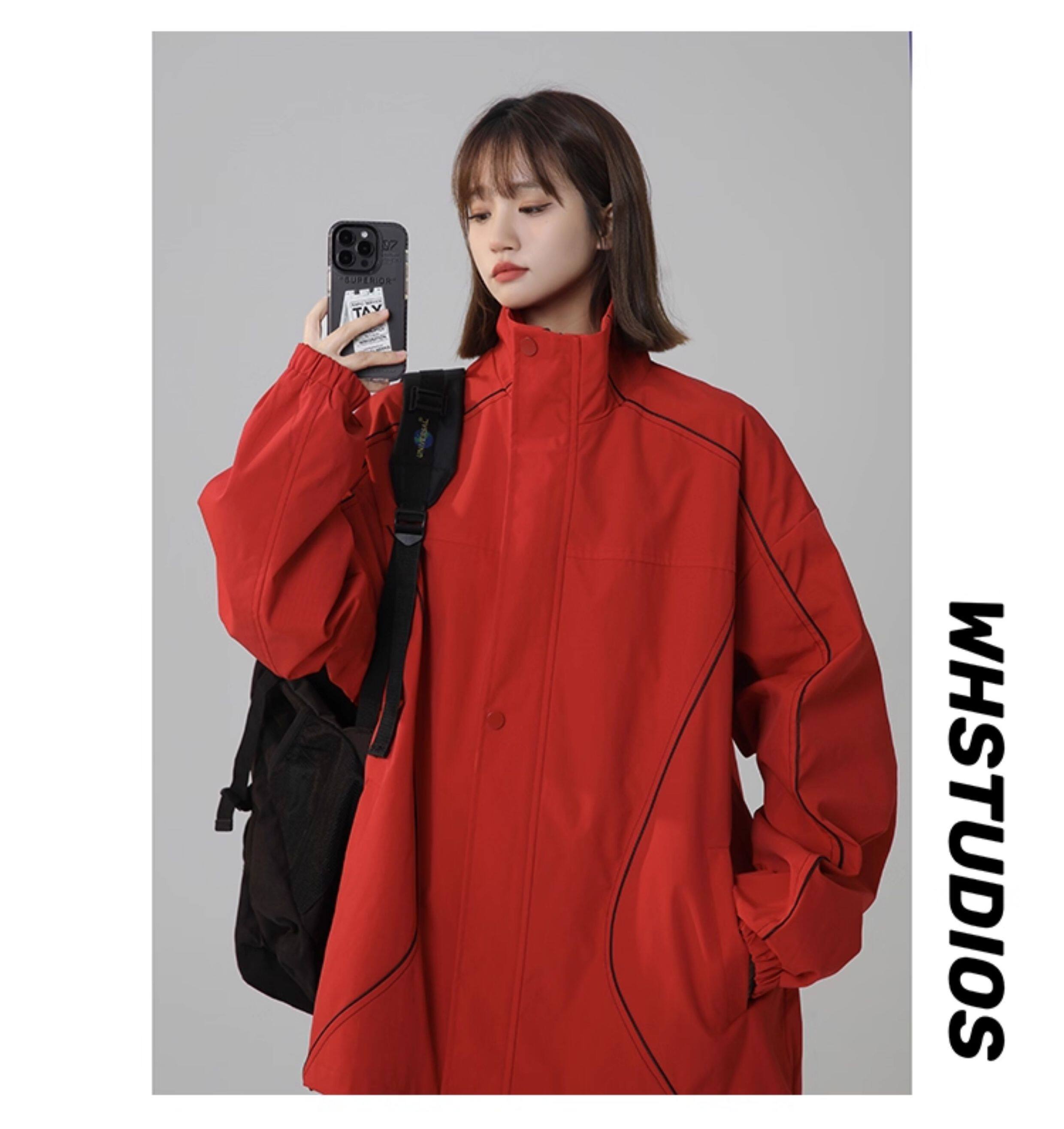 洛濃無性別秋季沖鋒夾克外套男女寬鬆大碼戶外防潑水立領青少年潮