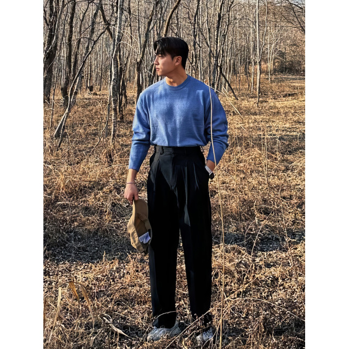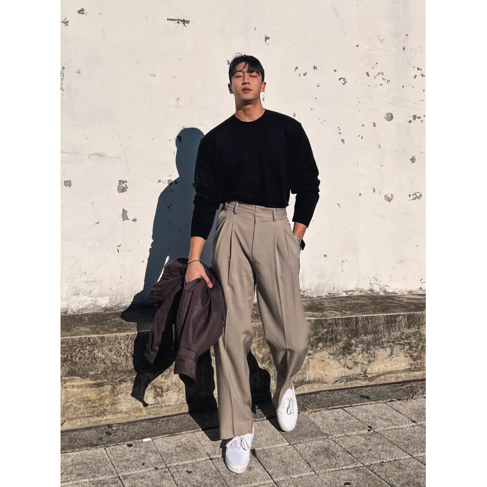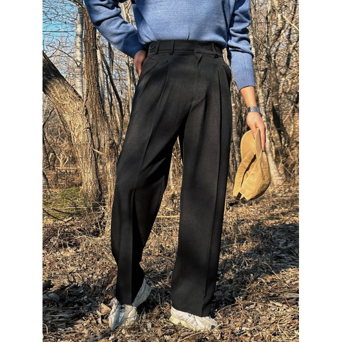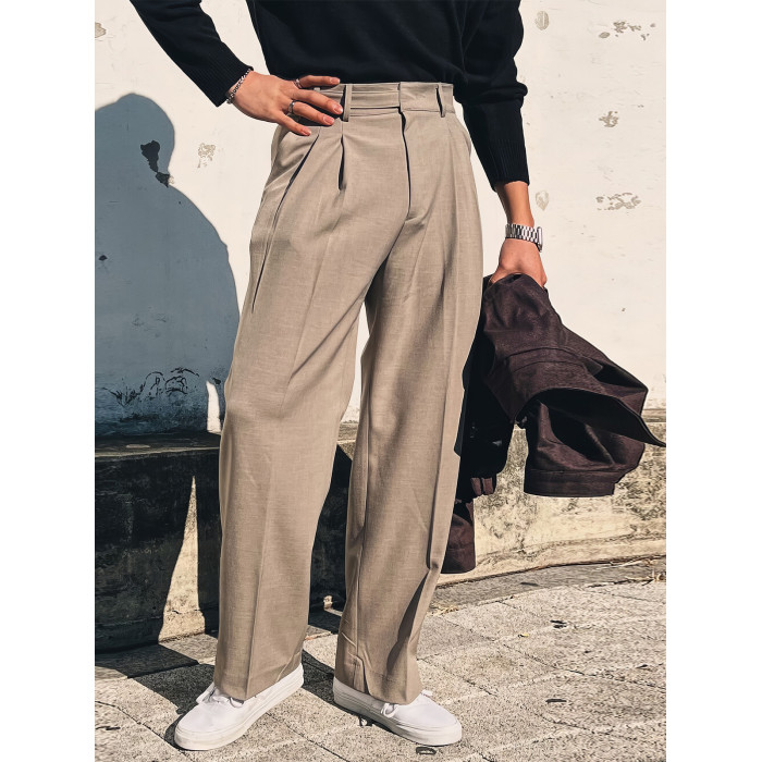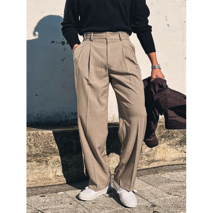 卡其色老錢風西褲男高腰休閒直筒寬鬆西裝褲商務韓系高級男士褲子