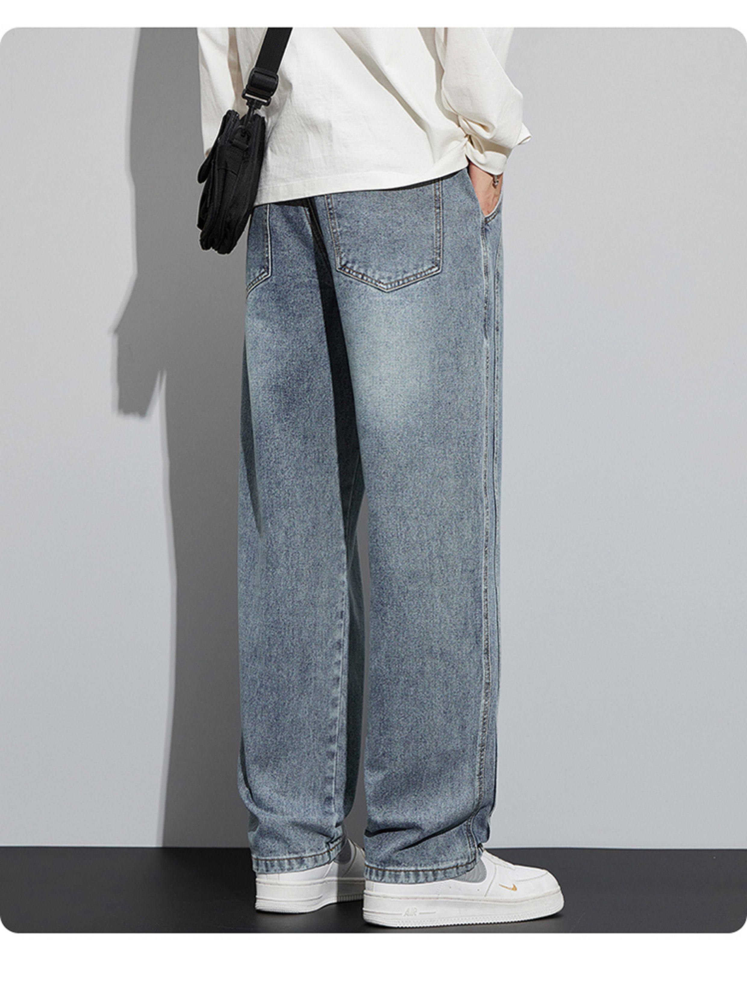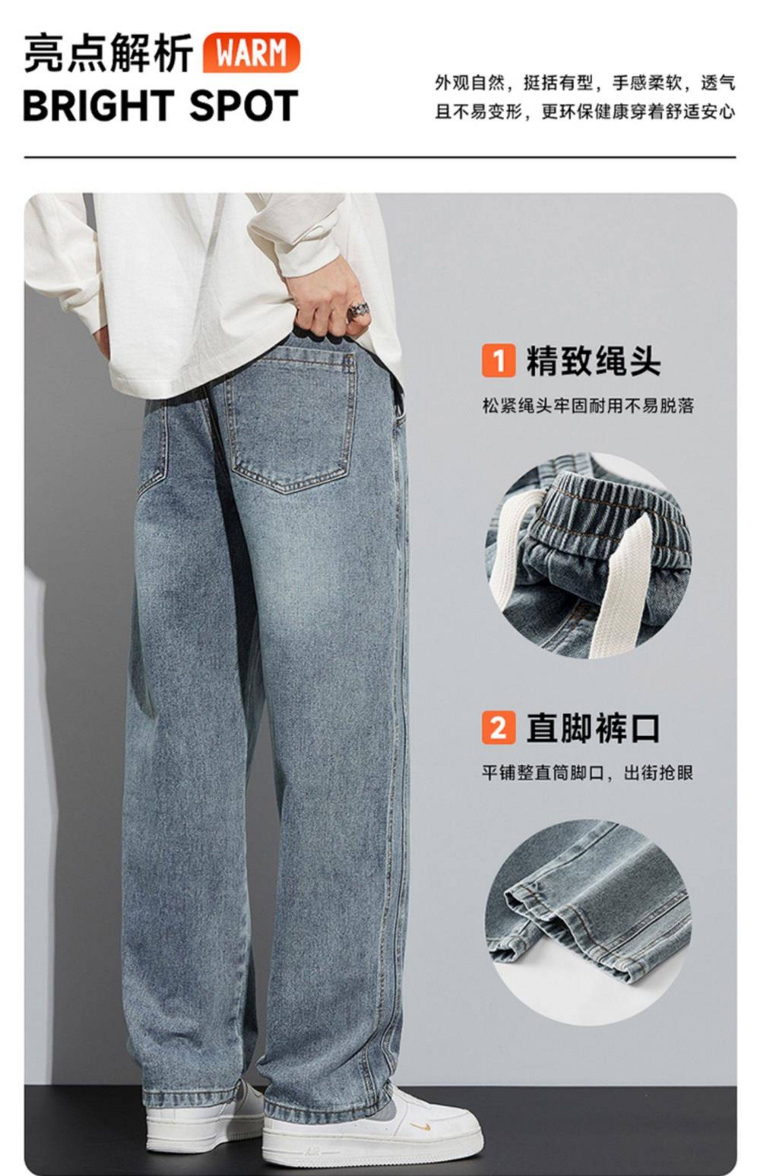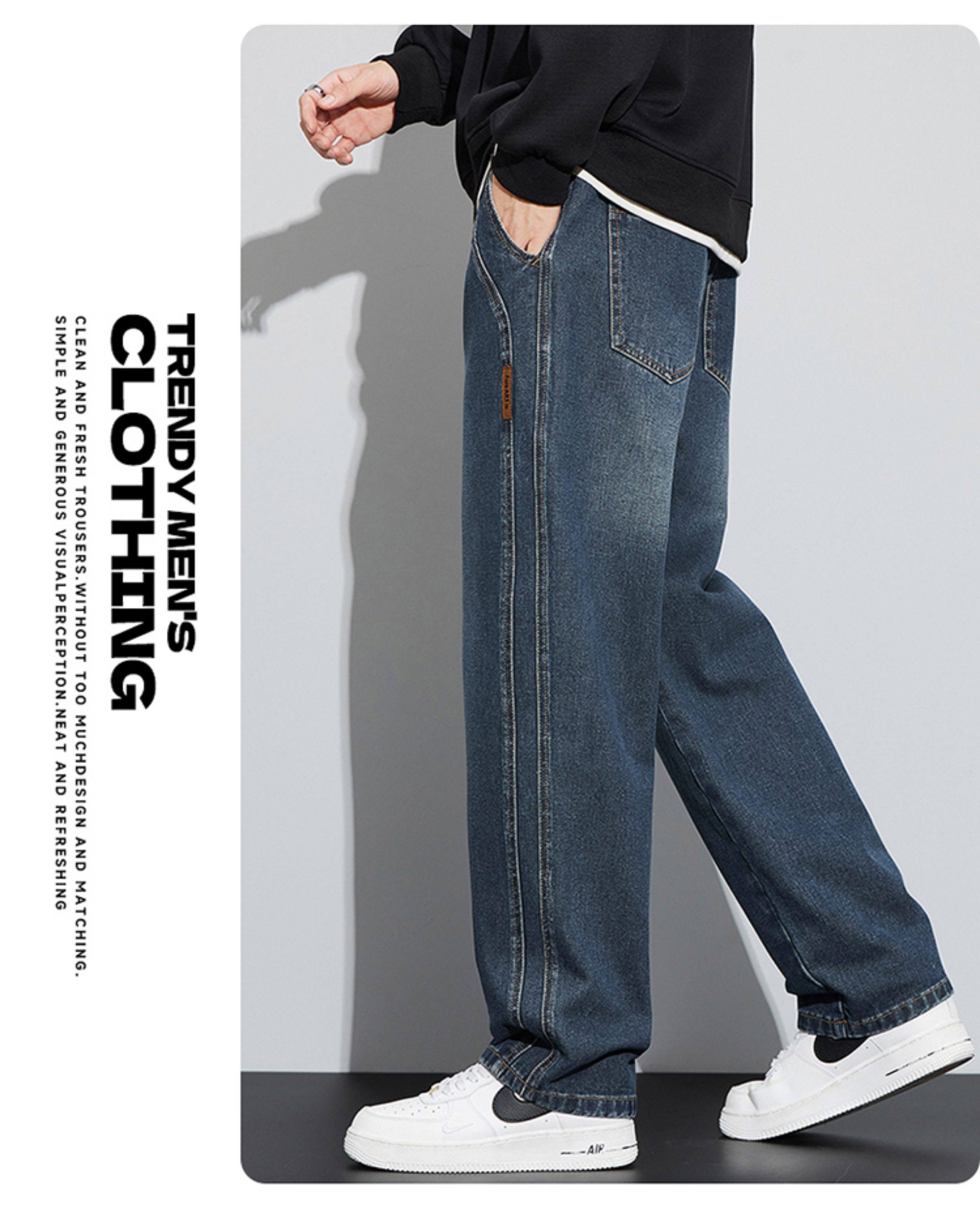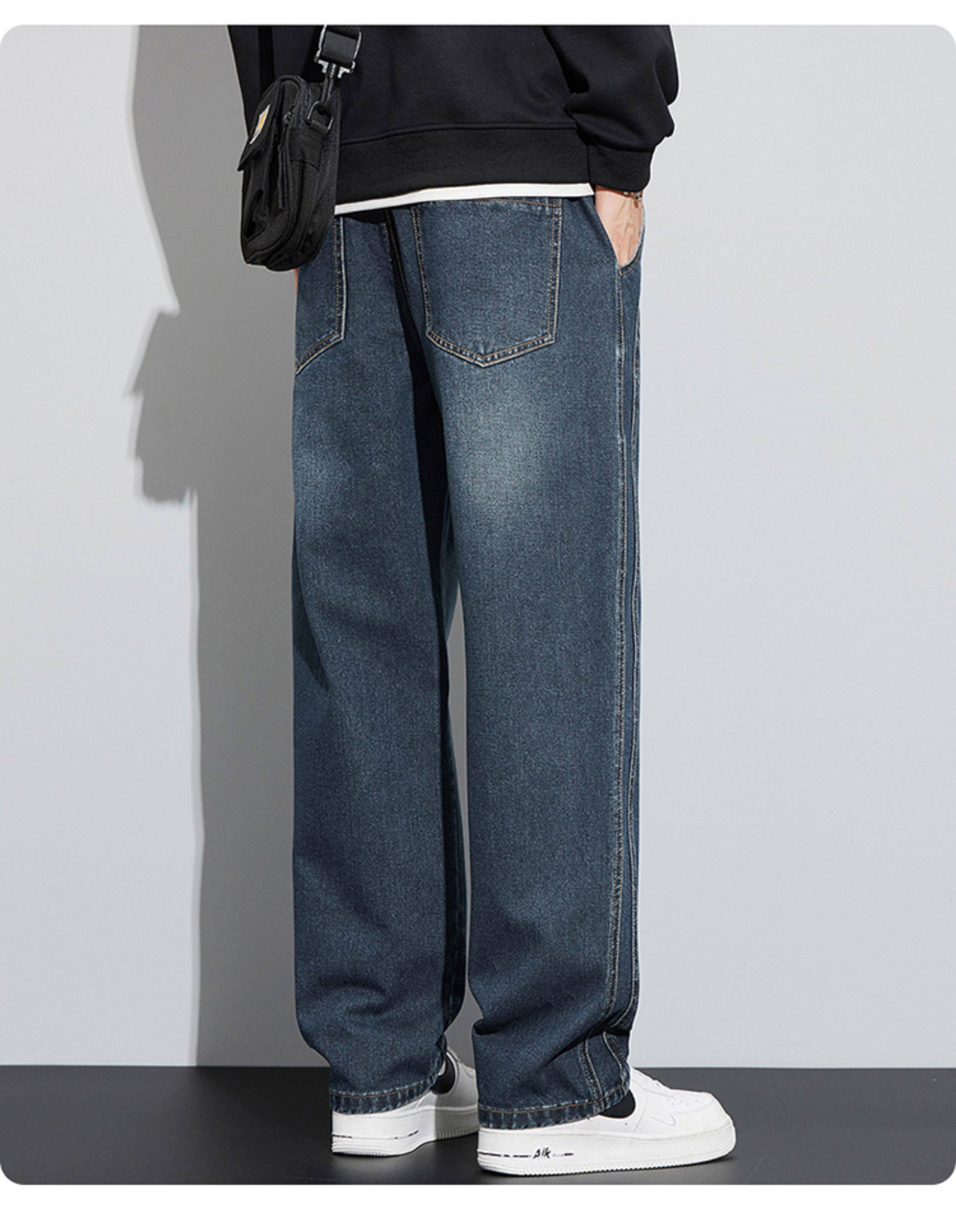 真維斯寬鬆直筒牛仔褲男秋冬季水洗復古美式潮牌黑色加絨休閒褲子