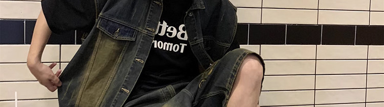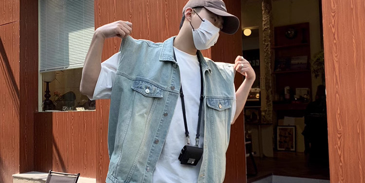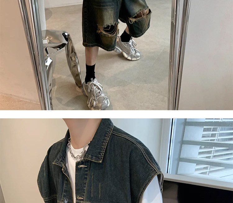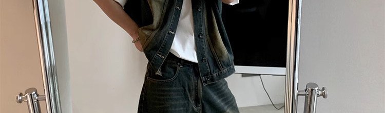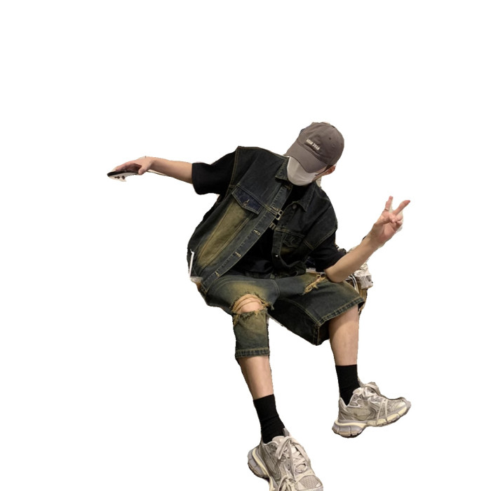 美式復古水洗做舊廢土風牛仔馬甲短褲套裝男夏季設計感搭配一整套