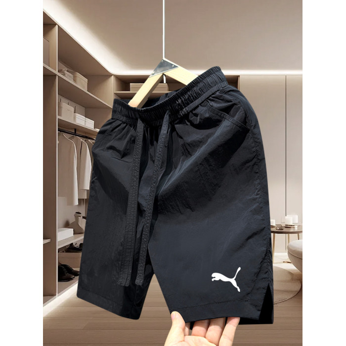 馬家夏季新款速乾男生短褲美式中褲刺綉男士五分褲寬鬆情侶沙灘褲