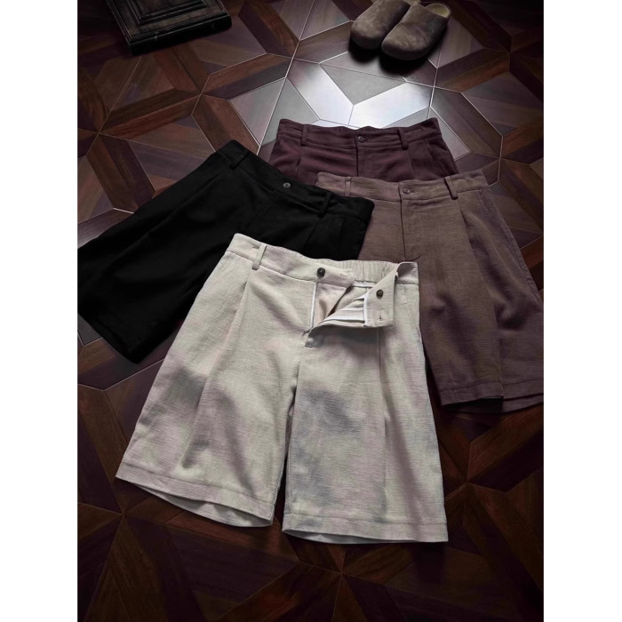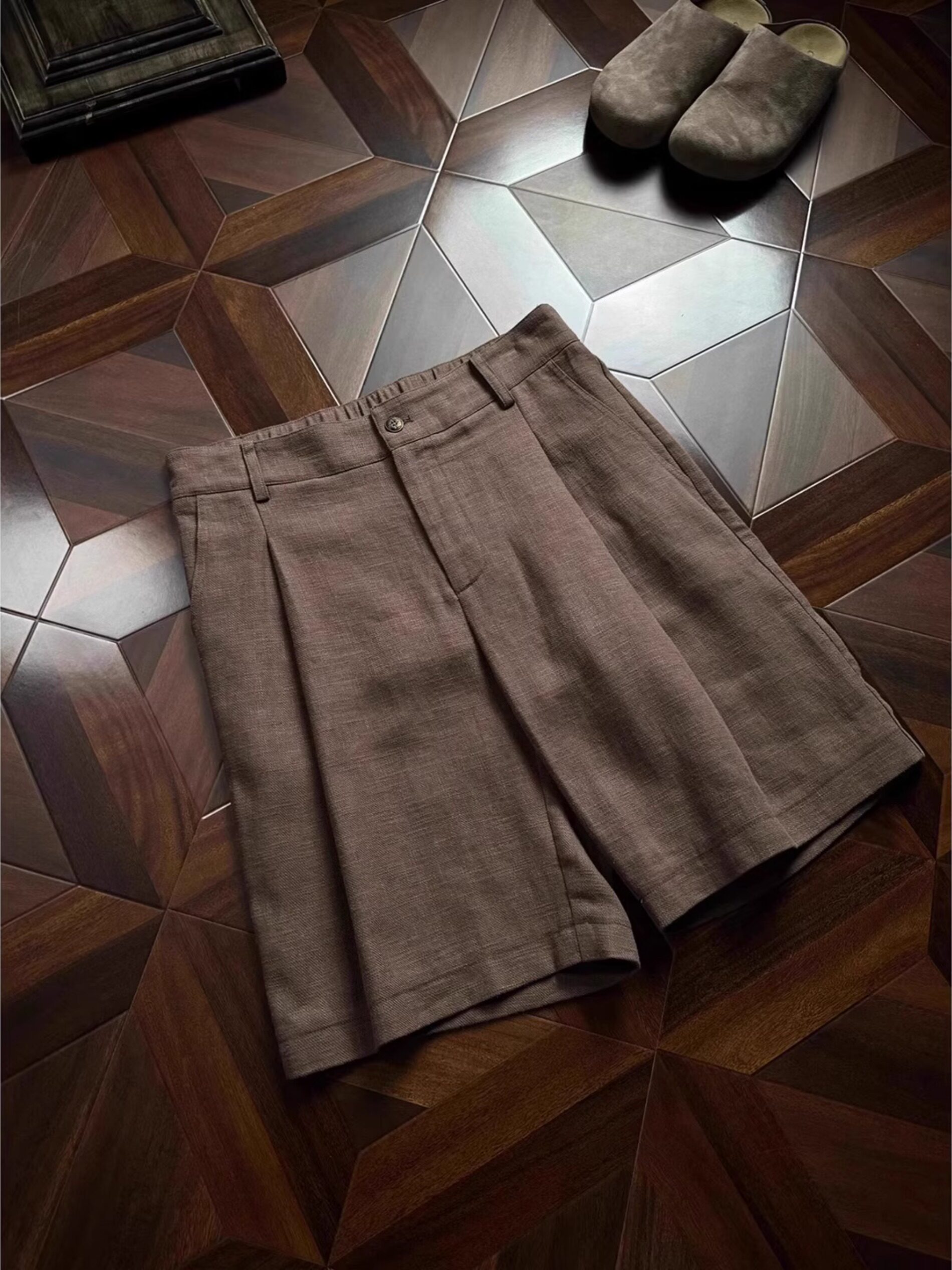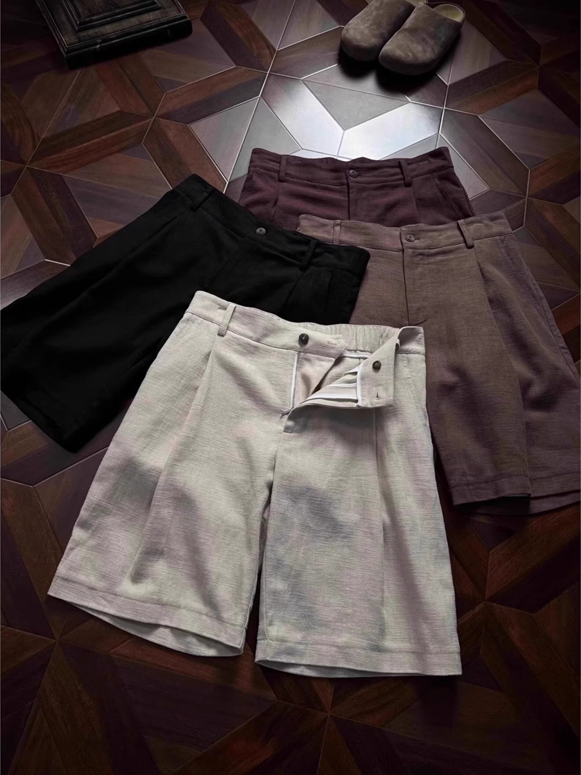 老錢風棉麻短褲男夏季薄款輕熟風高級感五分中褲寬鬆休閒西裝褲子