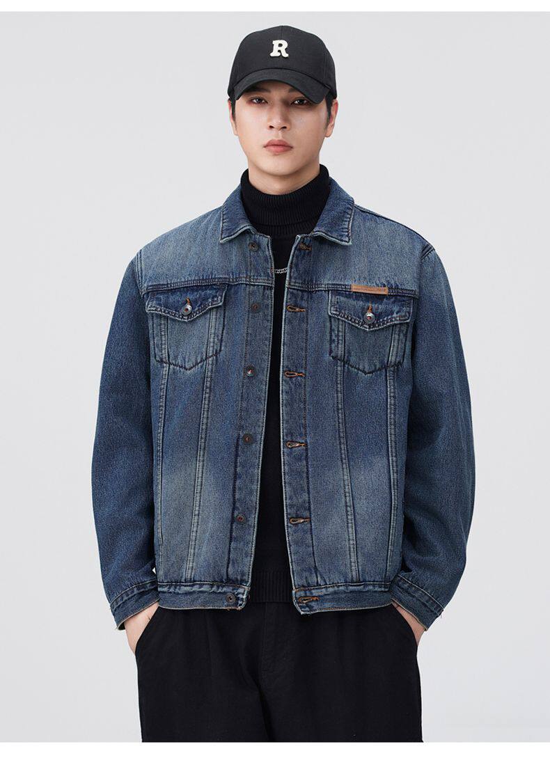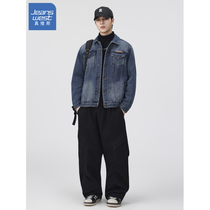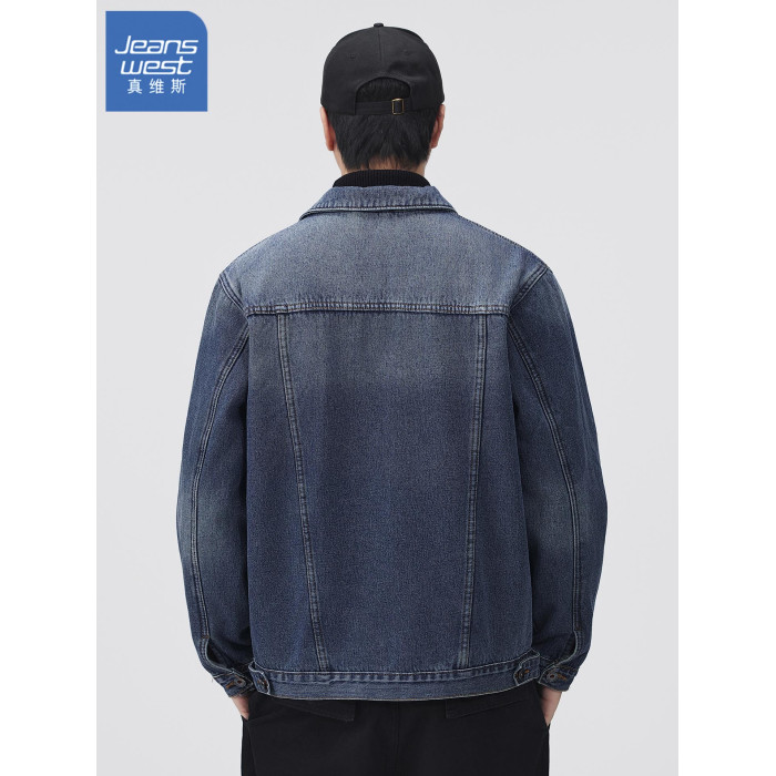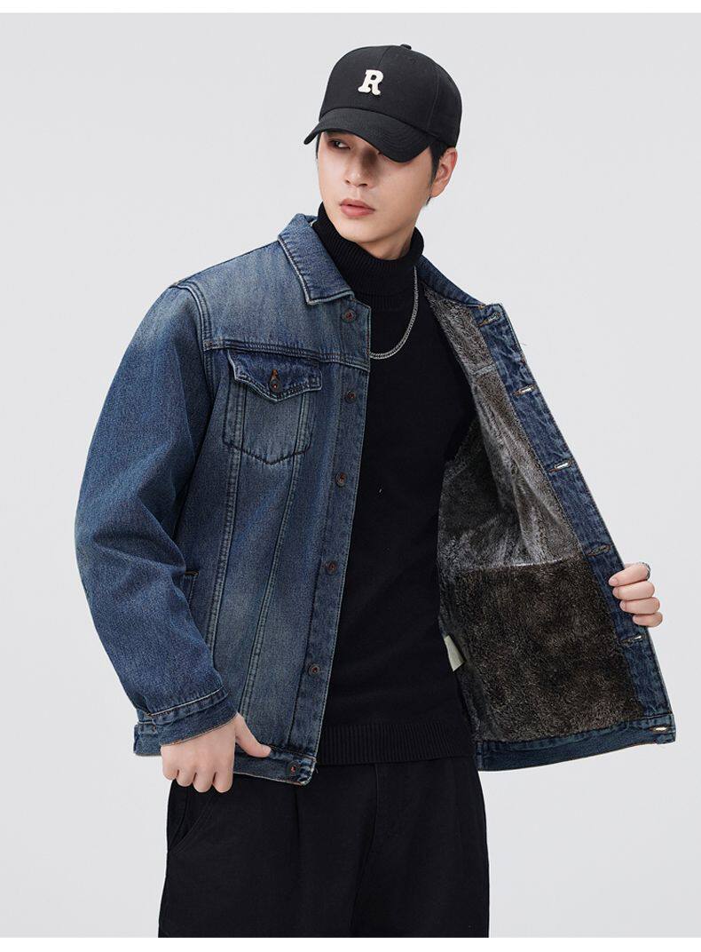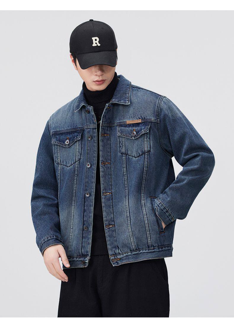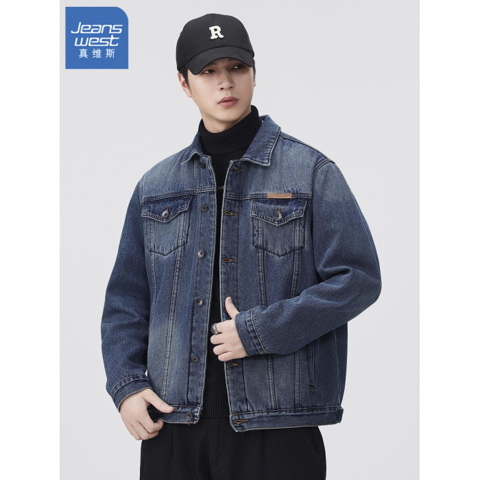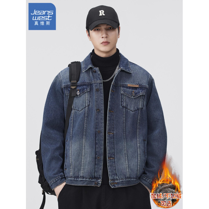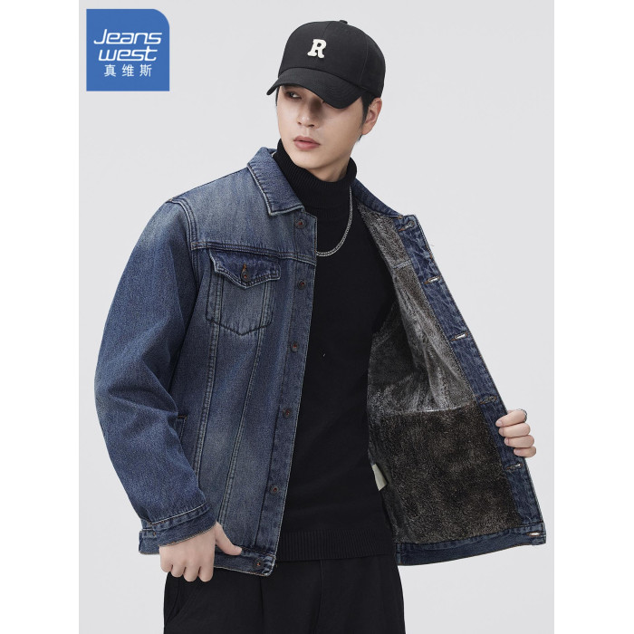 真維斯加絨牛仔外套男冬季加厚新款休閒上衣美式復古男士夾克秋冬