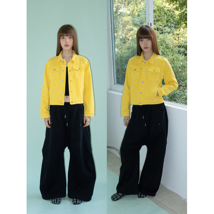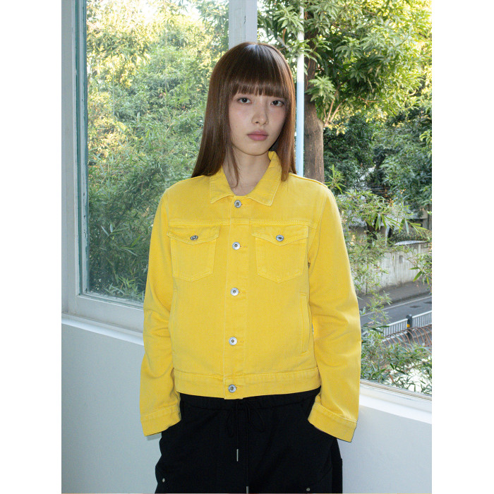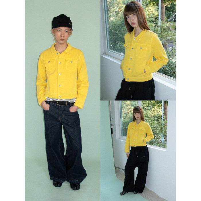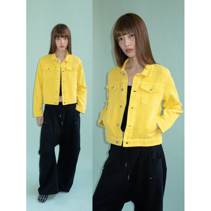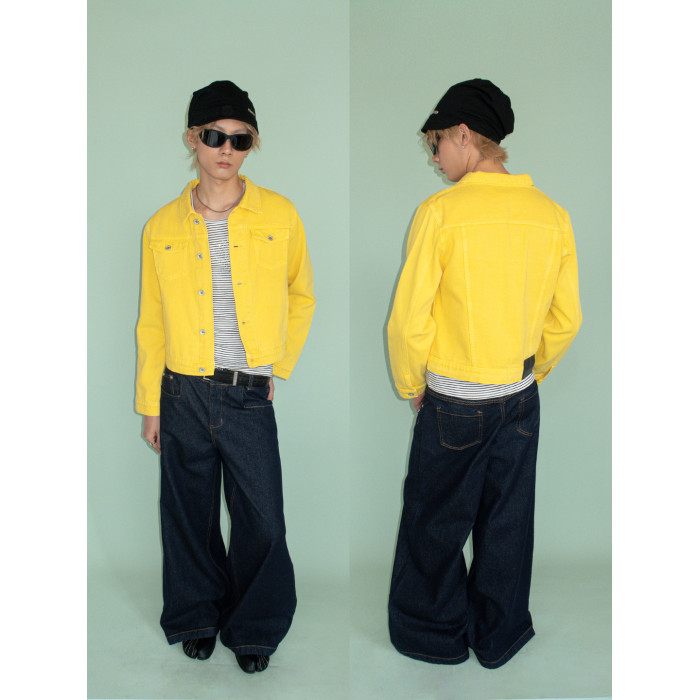FUNKYFUN 明黃色亮色 洗水做舊短款繙領夾克牛仔外套