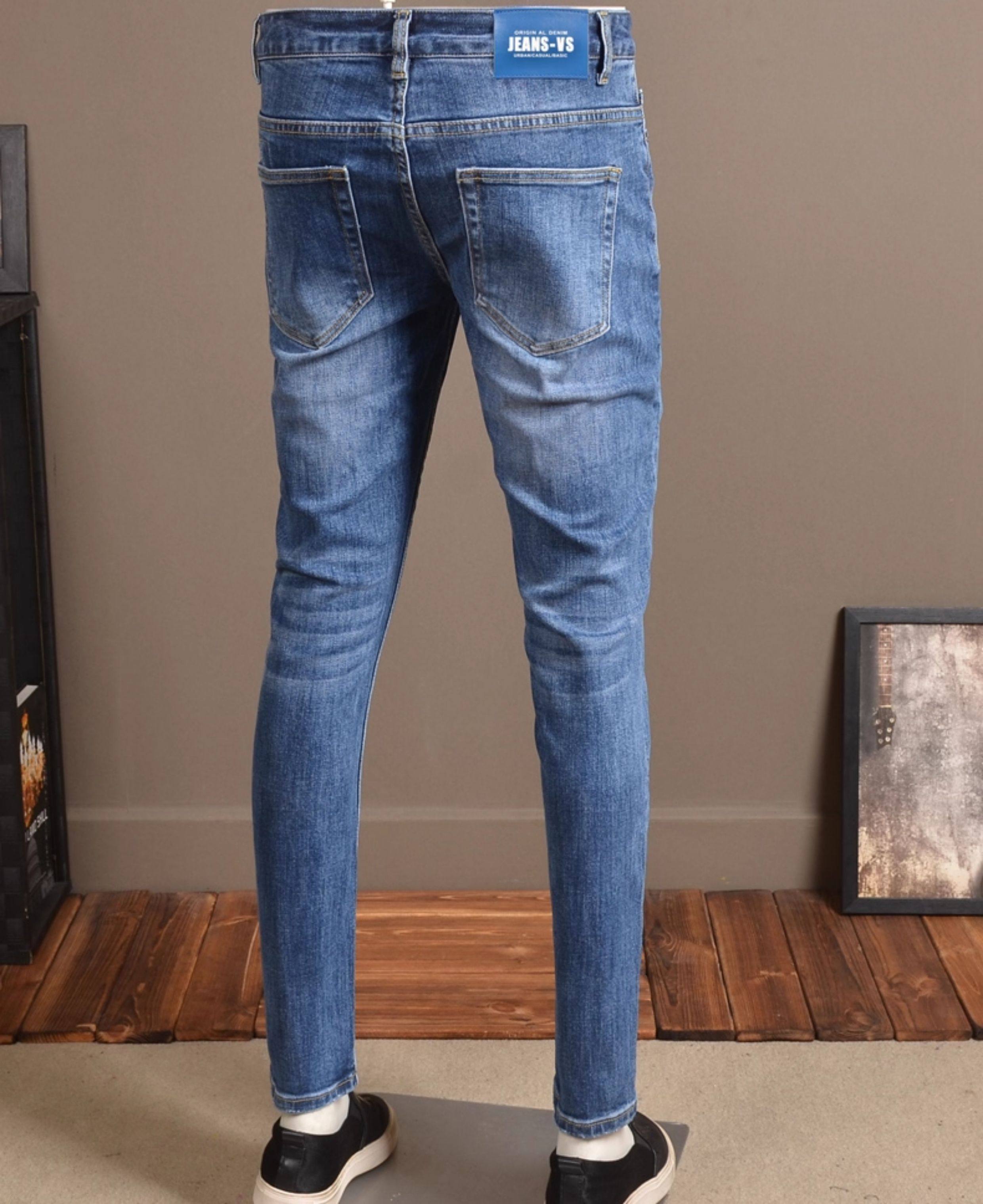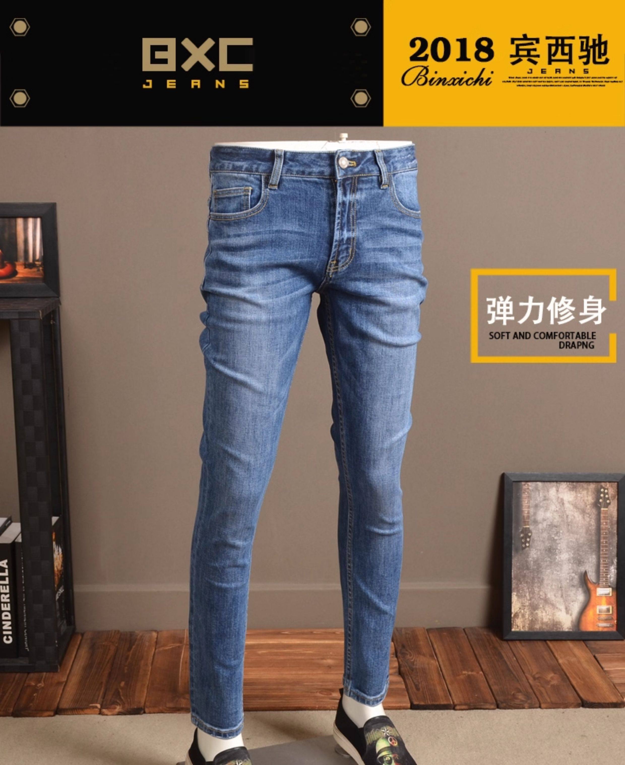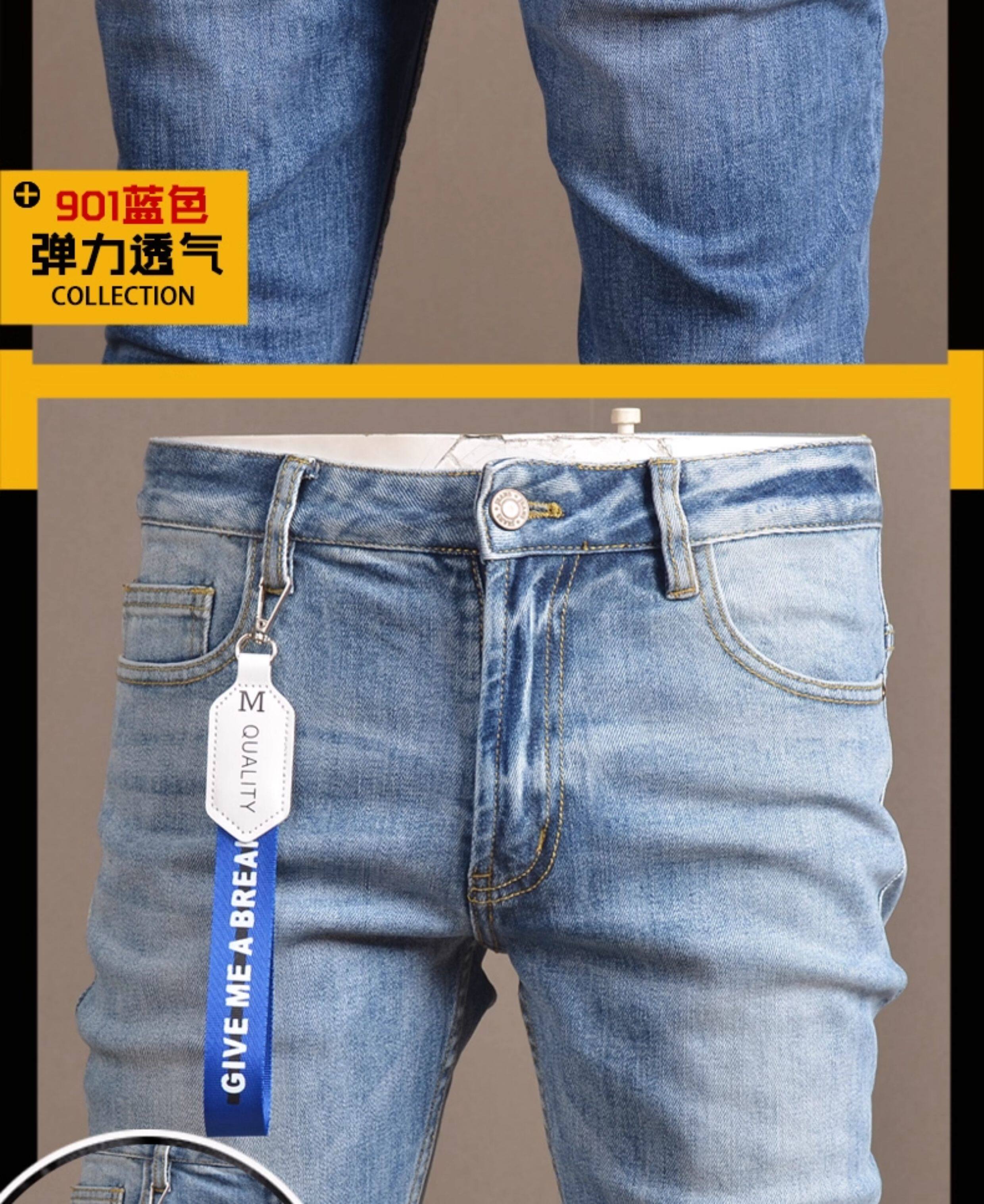 2025春秋淺色牛仔褲男修身小腳褲彈力潮流韓版高級秋冬休閒褲子男