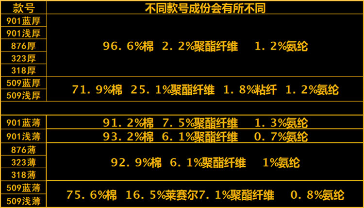 | 材質成分 | 棉96% 聚酯纖維3.1% 聚氨酯彈性纖維(氨綸)0.9% |